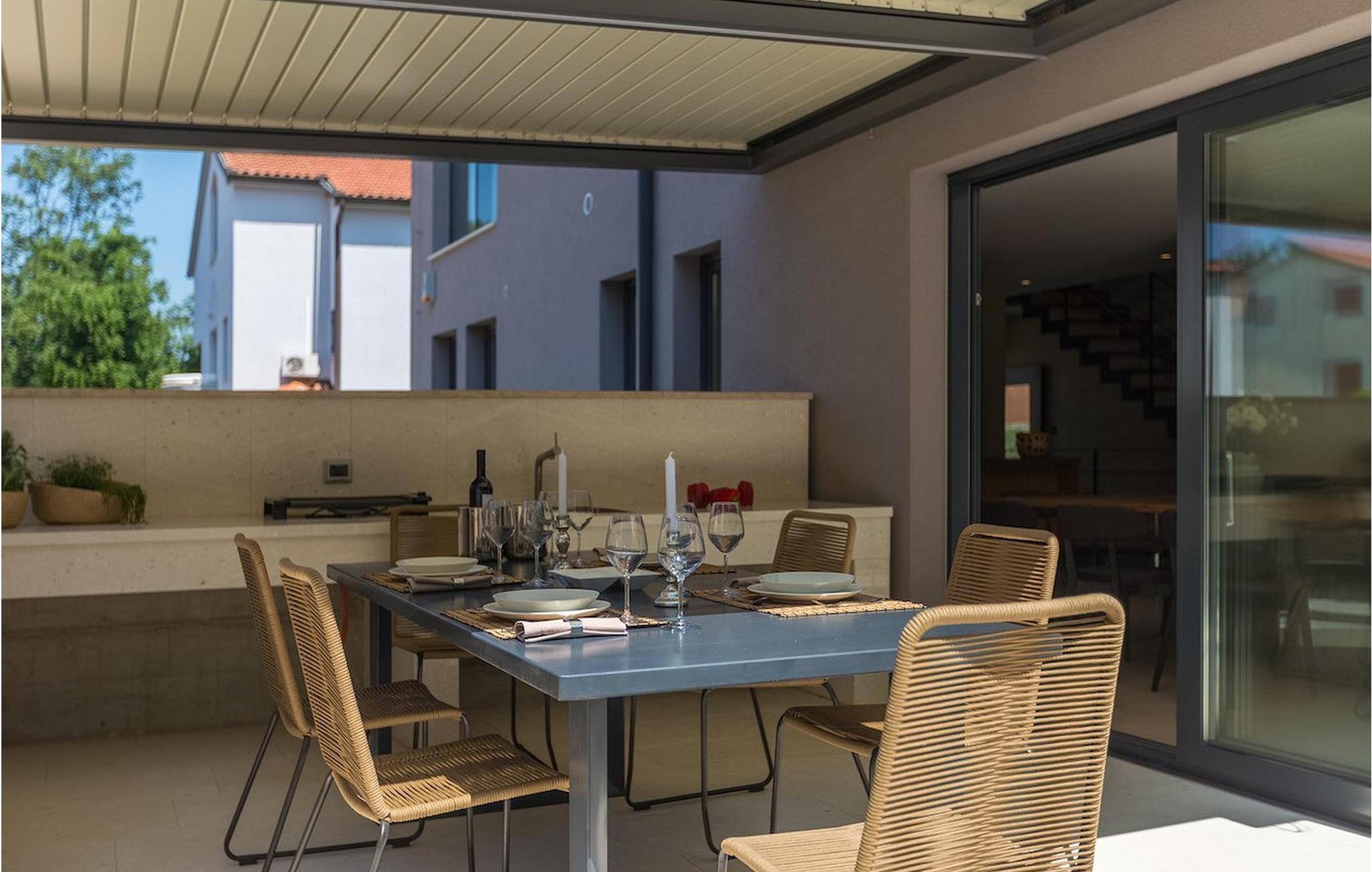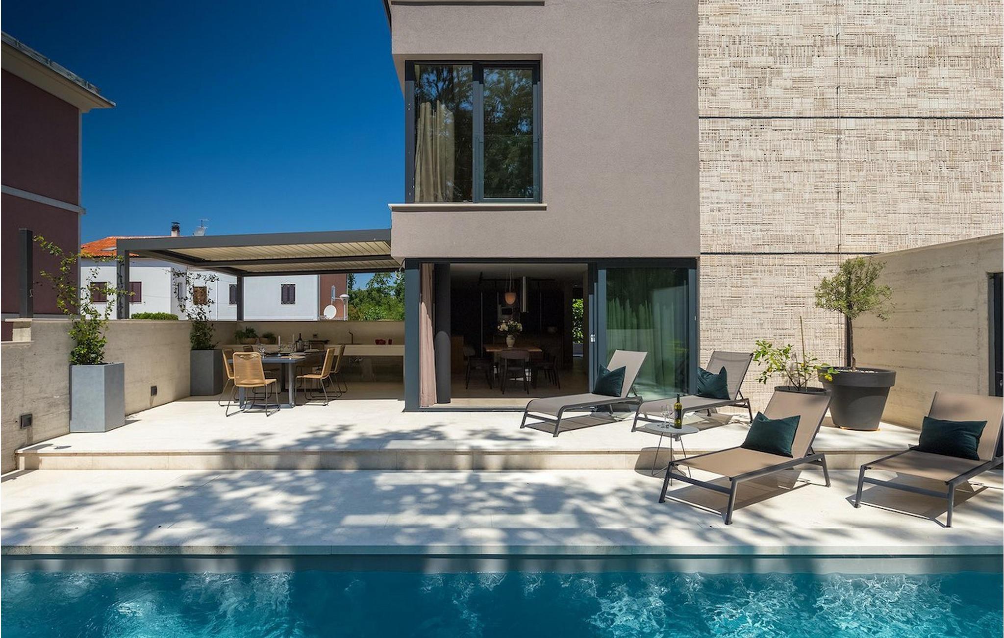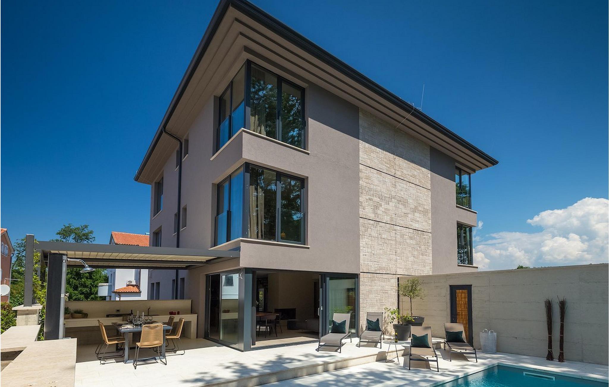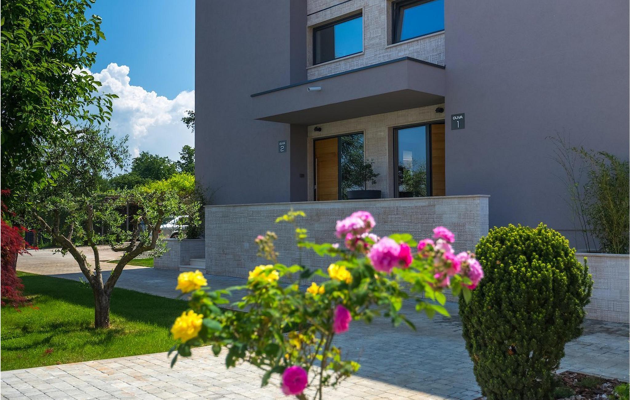 Villa Oliva 1 er beliggende i byen Umag, på den vestlige del af halvøen Istrien. Villaen har 4 soveværelser og kan rumme op til 8+2 gæster. Det luksuriøse moderne design og beliggenheden, som ligger kun 150 m fra havet, lader ikke meget tilbage at ønske. Villa Oliva 1 har fuldstændig aircondition og har en skøn privat pool, som på forespørgsel og mod et tillæg også kan opvarmes. I stueetagen i åben plan finder du en luksuriøs rummelig opholdsstue samt køkken med spiseplads, begge med store skyde altandøre, der fører til den private pool og udendørs spiseplads. De 4 soveværelser, alle med eget badeværelse, er jævnt fordelt over første og anden sal. Villaen byder også på masser af underholdning. I den nederste etage finder du et poolbord samt et bordfodbold og dart.