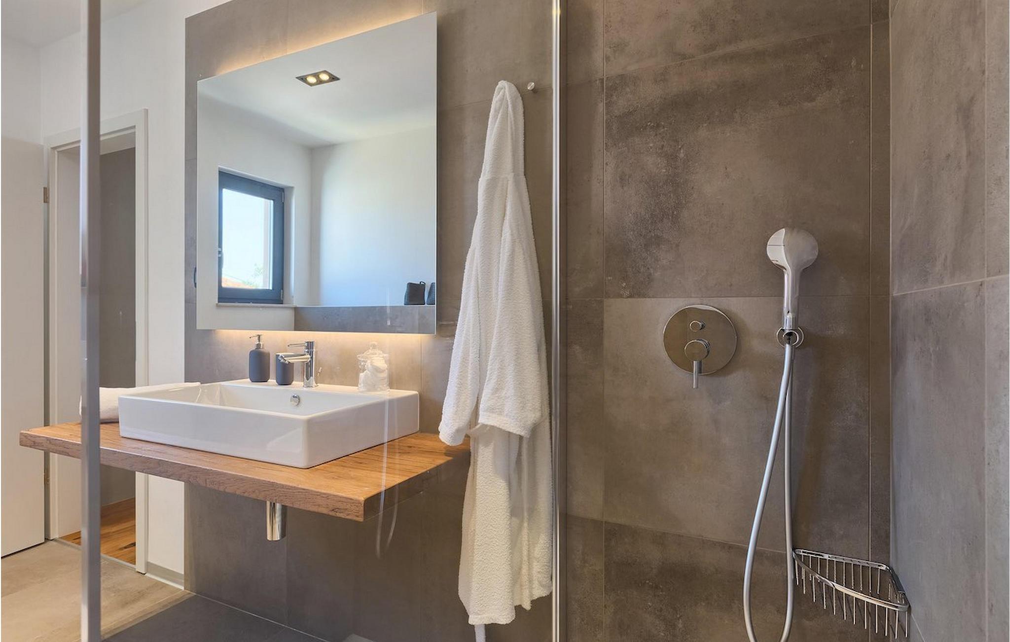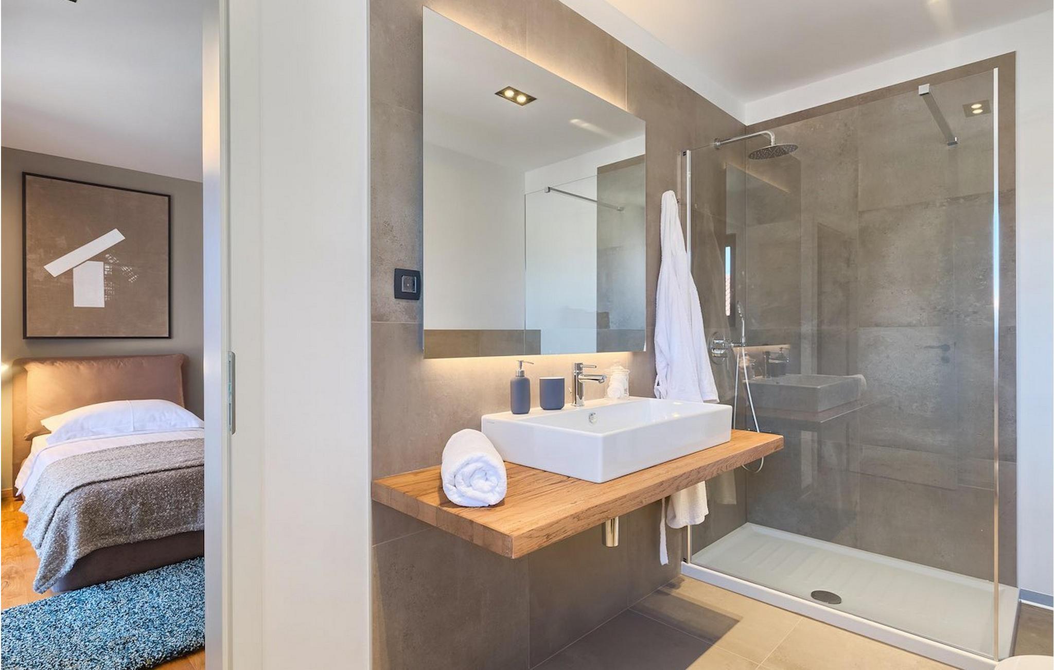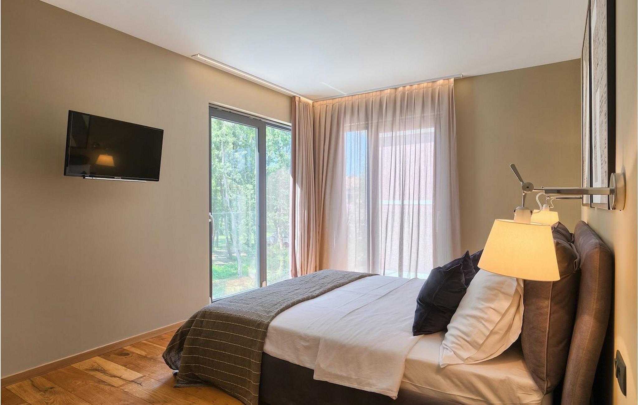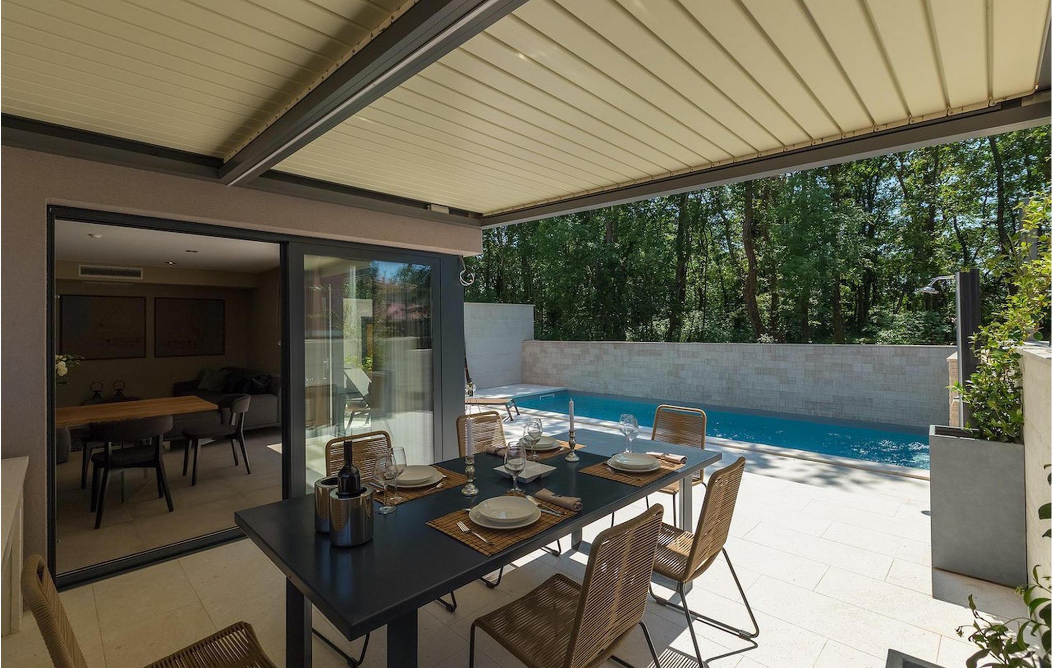 Villa Oliva 1 er beliggende i byen Umag, på den vestlige del af halvøen Istrien. Villaen har 4 soveværelser og kan rumme op til 8+2 gæster. Det luksuriøse moderne design og beliggenheden, som ligger kun 150 m fra havet, lader ikke meget tilbage at ønske. Villa Oliva 1 har fuldstændig aircondition og har en skøn privat pool, som på forespørgsel og mod et tillæg også kan opvarmes. I stueetagen i åben plan finder du en luksuriøs rummelig opholdsstue samt køkken med spiseplads, begge med store skyde altandøre, der fører til den private pool og udendørs spiseplads. De 4 soveværelser, alle med eget badeværelse, er jævnt fordelt over første og anden sal. Villaen byder også på masser af underholdning. I den nederste etage finder du et poolbord samt et bordfodbold og dart.