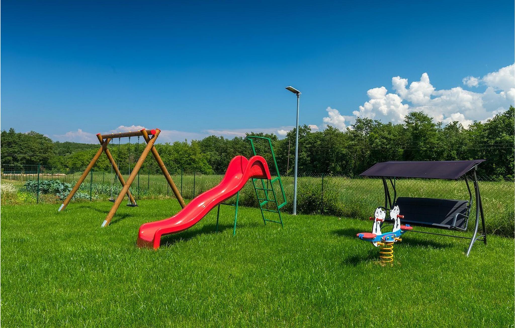 Villaen er et dobbelthus, men tilbyder fuldstændig privatliv takket være det høje hegn. De to genstande kan også lejes sammen. Ved siden af villaen finder du en eng med legeplads samt en stor privat parkeringsplads, som deles med Villa Oliva 2.