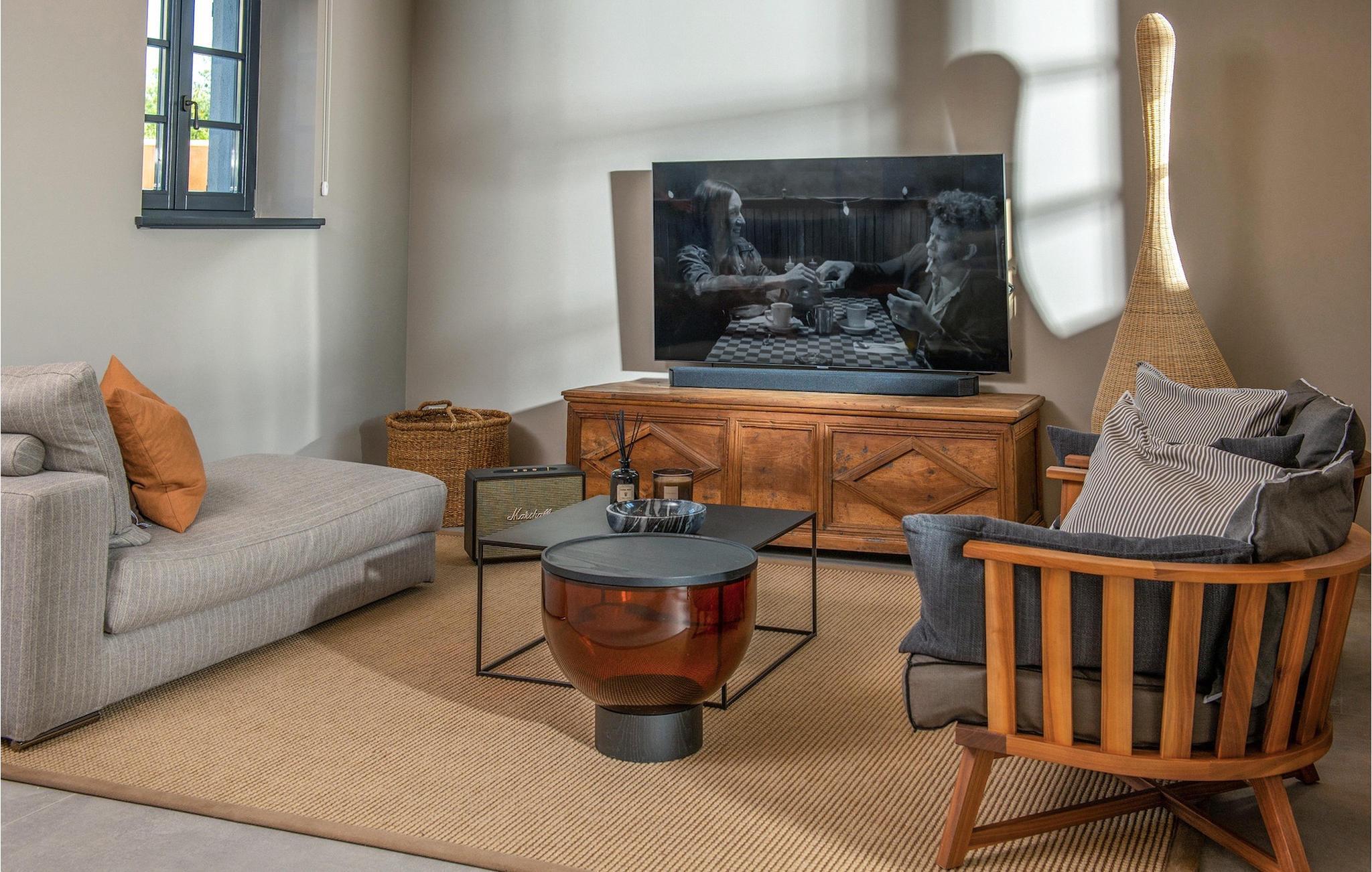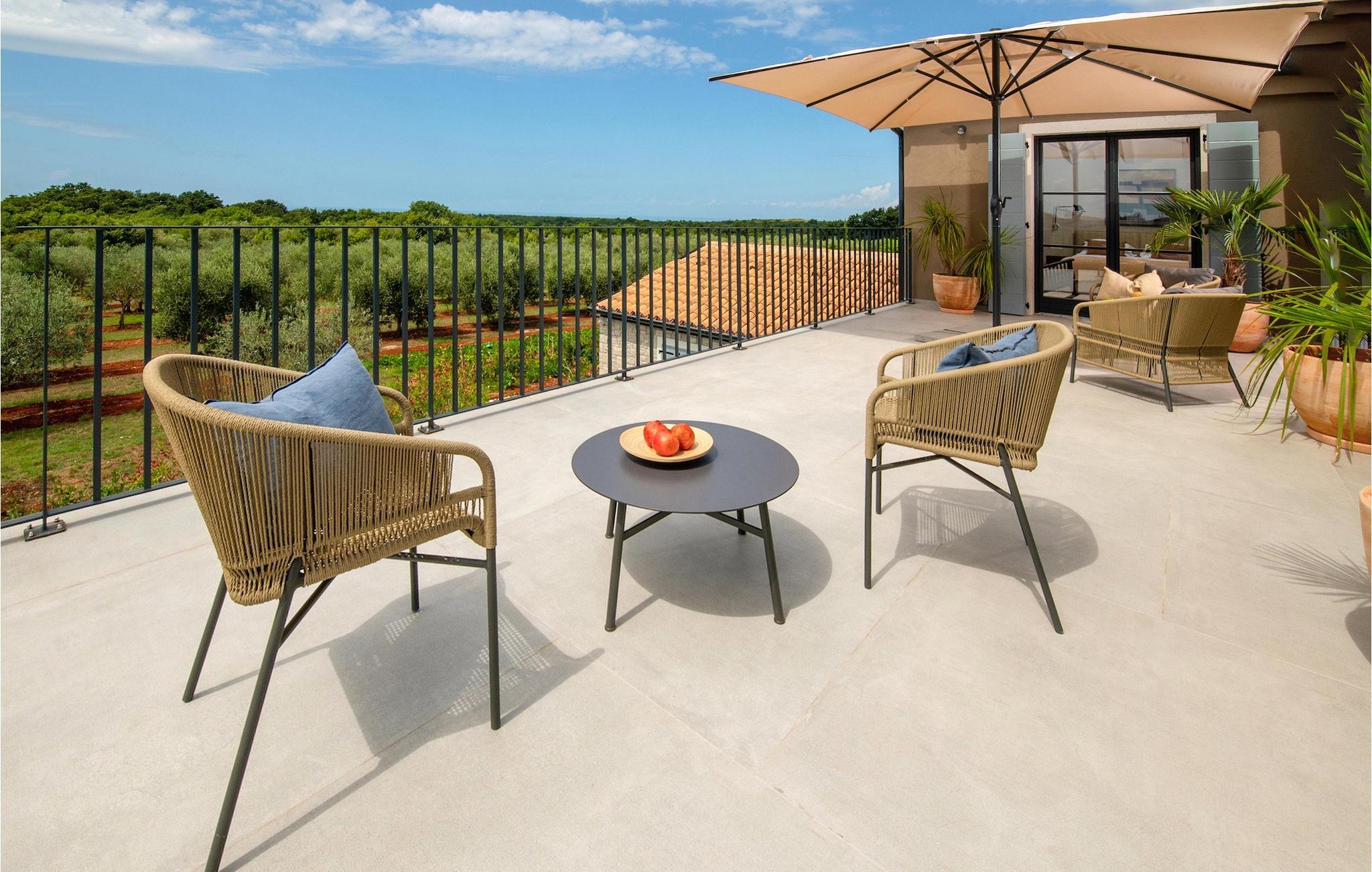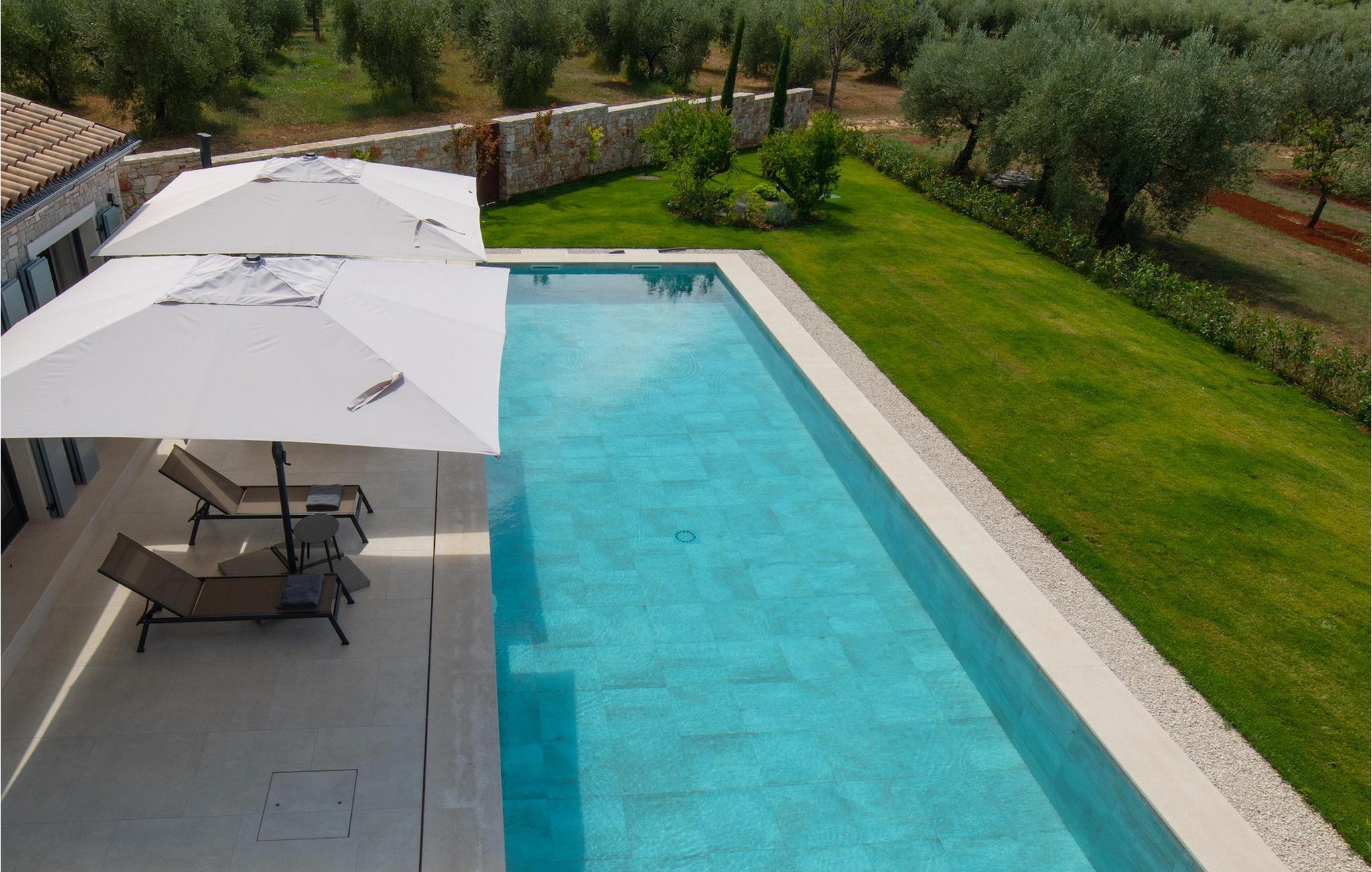 Villa Casa Cupra er en fantastisk familievilla, kun 3 km fra havet, nær Umag, i den nordlige del af Istriens vestkyst. Villaen er omgivet af gamle olivenlunde. En 80m2 pool er i hjertet af villaen, hvor du sandsynligvis vil tilbringe det meste af din ferie. Tag en dukkert i det turkisblå vand eller slap af på en af liggestolene, mens du læser en god bog. Den overdækkede terrasse byder på en hyggelig lounge og et spisebord med plads til 10 gæster og nyd lækre måltider, som du selv har tilberedt på kulgrillen. Hvis du kommer ind i villaens indre fra terrassen, vil du finde dig selv i den åbne opholdsstue med pejs, komfortable siddepladser, et spisebord og et fuldt udstyret moderne køkken samt et separat toilet. De 2 komfortable soveværelser på dette niveau har hver deres eget badeværelse. I det tilstødende hus er der sauna med bruser og desuden en hyggelig lounge, hvor du kan tilbringe hyggelige aftener med familie og venner. Første sal i hovedhuset har 3 skønne soveværelser med hver sit badeværelse. Det store soveværelse har endda et fritstående badekar på værelset. Det ideelle sted at tage en lille pause og stille og roligt nyde udsigten over landskabet med en kop te er den vidunderlige terrasse. Alt er smagfuldt indrettet med moderne og luksuriøse møbler og indrettet med stor sans for detaljer. Forkæl dig selv med noget helt særligt med et strejf af luksus og book den smukke Villa Casa Cupra!Villa Casa Cupra ligger i en stille landsby nord for Umag, kun 3 km væk fra den nærmeste strand og alle de faciliteter, som sådan en by byder på. Butikker, restauranter og caféer er alle inden for nem køreafstand. For alle sportselskere ligger en golfbane kun 2 km fra villaen. Kystbyen Umag, der ligger i det nordvestlige Istrien, er bedst kendt for sit Stella Maris Stadion, hvor den berømte ATP-tennisturnering finder sted. Denne smukke by har dog også meget at byde på i forhold til kultur, gastronomi og aktiviteter. Besøg Maria Himmelfartskirken eller bymuseet, nyd lokale specialiteter såsom fisk, vildt og trøfler, prøv den lækre olivenolie, besøg en af de smukke strande og skjulte bugter eller hav det sjovt med de sportsaktiviteter, du kan nyde her tilbydes. Nyd din ferie i Villa Casa Cupra og oplev regionens mangfoldighed.