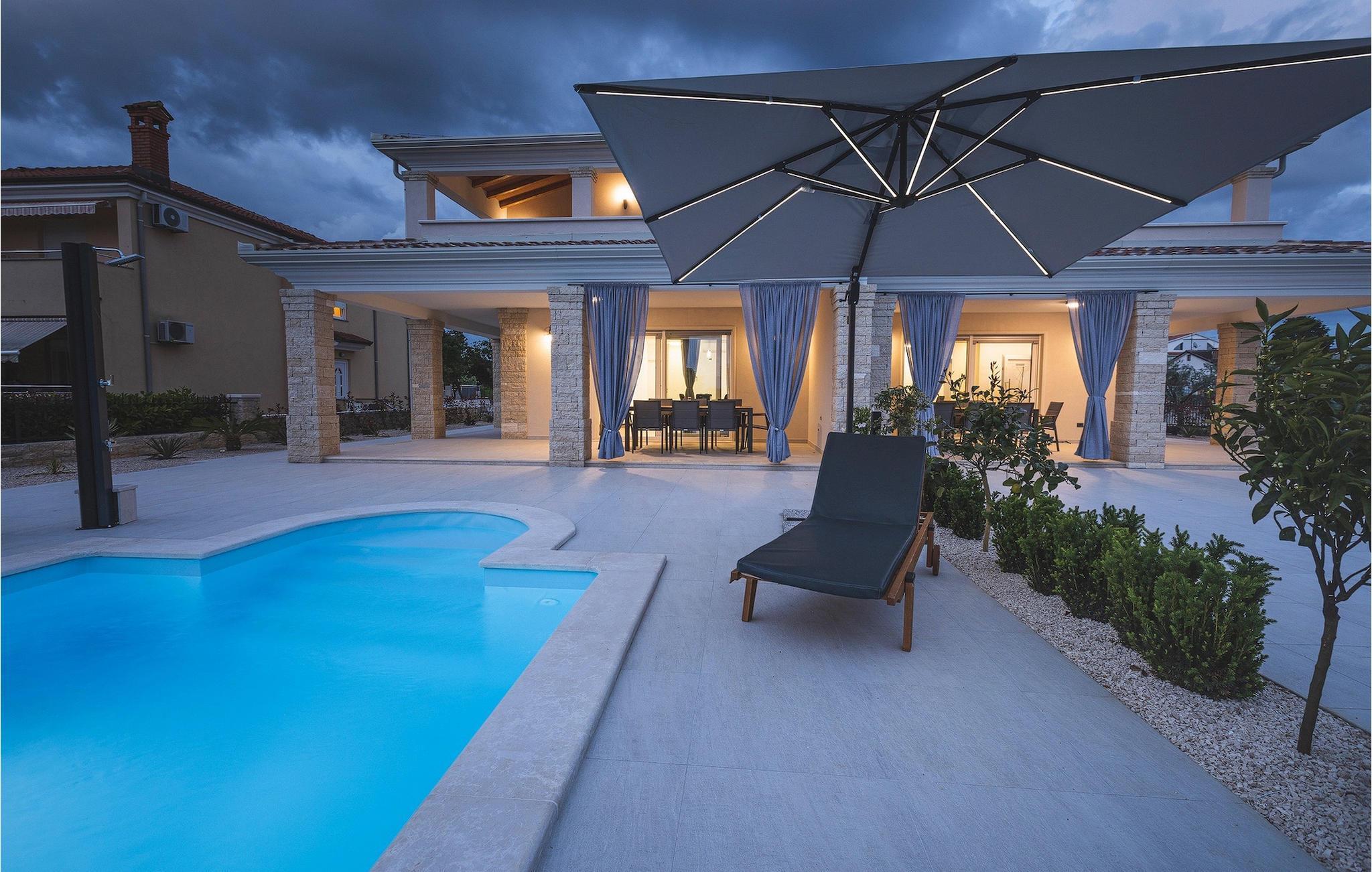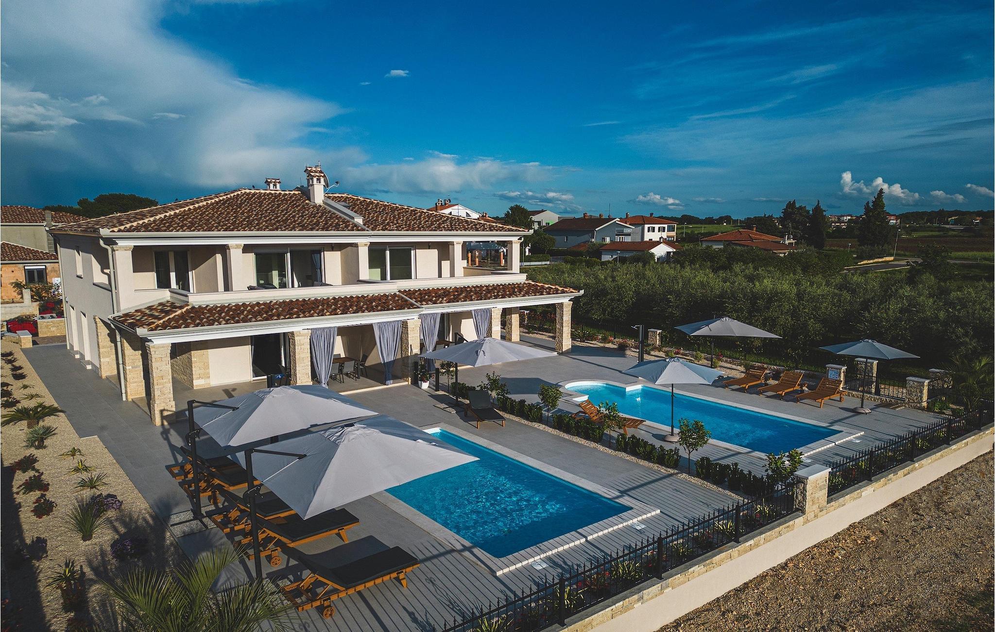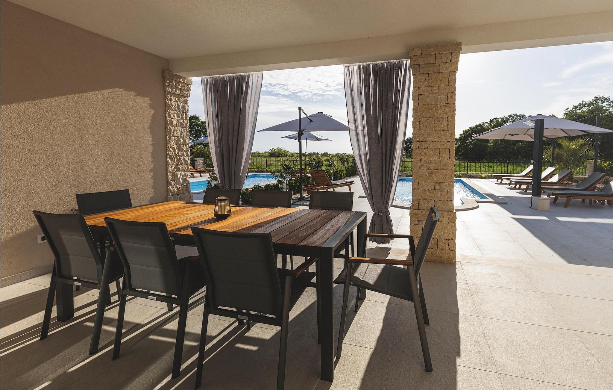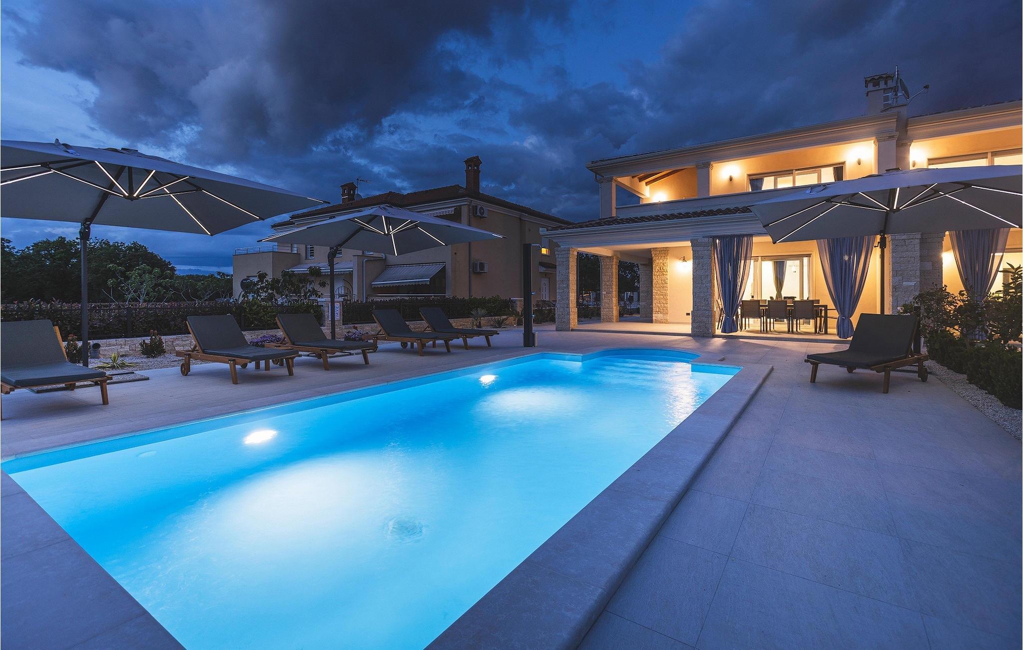 Den smukke Villa Goran i Umag inkluderer en fantastisk blå pool med 6 strandstole og 3 parasoller langs siden. Hele terrassen er omgivet af grøn natur og byder på udsigt til horisonten. Mellem to søjler under tag er der spiseplads til op til 8 personer og grill, til grillaften med udsigt til den glitrende pool. Terrassedøren i glas fører til en moderne stue med TV. Lige ved siden af er et fuldt udstyret køkken og et andet spisebord til op til 8 personer. Et komfortabelt dobbeltværelse med eget badeværelse og et separat værelse med en ekstra dobbeltseng tilbyder afslappende søvn. På anden sal finder du yderligere 3 dobbeltværelser med eget badeværelse og døre, der fører til den solbeskinnede balkon. Fra de 4 stole på balkonen kan du nyde den fantastiske udsigt over havet. Villa Goran er perfekt til en fredelig familieferie tæt på stranden og væk fra storbyen. Villa Goran ligger i Umag, kun 500 m fra havet, som er synligt fra ejendommen. Faciliteter såsom den nærmeste butik, café, restaurant og supermarked ligger inden for 1 km væk. Umag er fuld af historiske levn, såsom resterne af bymurene fra det 10. århundrede, som omfatter en port og en rigtig vindebro. Selv Umag Bymuseum er i et tidligere forsvarstårn og viser genstande fra romertiden som amforaer og lamper samt moderne lokal kunst. For en mere moderne aktivitet kan du og din familie køre racerløb med hinanden i go carts. Kun 30 minutter væk kan du nyde flere vandrutsjebaner i en Aquapark, for en dag med sjov med hele familien.