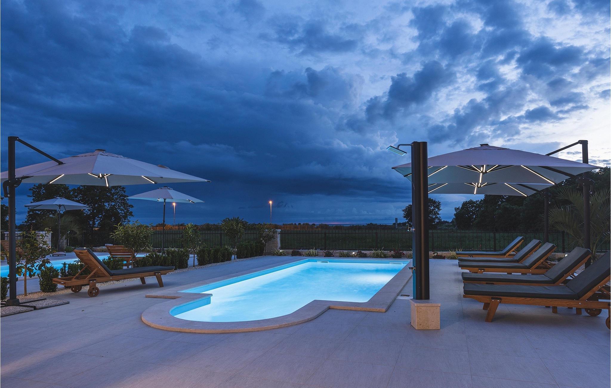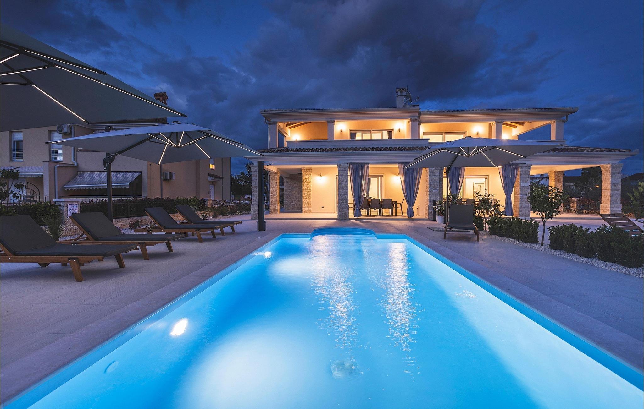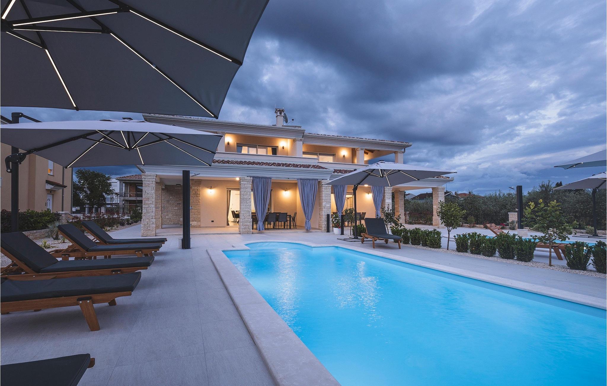 Den smukke Villa Goran i Umag inkluderer en fantastisk blå pool med 6 strandstole og 3 parasoller langs siden. Hele terrassen er omgivet af grøn natur og byder på udsigt til horisonten. Mellem to søjler under tag er der spiseplads til op til 8 personer og grill, til grillaften med udsigt til den glitrende pool. Terrassedøren i glas fører til en moderne stue med TV. Lige ved siden af er et fuldt udstyret køkken og et andet spisebord til op til 8 personer. Et komfortabelt dobbeltværelse med eget badeværelse og et separat værelse med en ekstra dobbeltseng tilbyder afslappende søvn. På anden sal finder du yderligere 3 dobbeltværelser med eget badeværelse og døre, der fører til den solbeskinnede balkon. Fra de 4 stole på balkonen kan du nyde den fantastiske udsigt over havet. Villa Goran er perfekt til en fredelig familieferie tæt på stranden og væk fra storbyen. Villa Goran ligger i Umag, kun 500 m fra havet, som er synligt fra ejendommen. Faciliteter såsom den nærmeste butik, café, restaurant og supermarked ligger inden for 1 km væk. Umag er fuld af historiske levn, såsom resterne af bymurene fra det 10. århundrede, som omfatter en port og en rigtig vindebro. Selv Umag Bymuseum er i et tidligere forsvarstårn og viser genstande fra romertiden som amforaer og lamper samt moderne lokal kunst. For en mere moderne aktivitet kan du og din familie køre racerløb med hinanden i go carts. Kun 30 minutter væk kan du nyde flere vandrutsjebaner i en Aquapark, for en dag med sjov med hele familien.