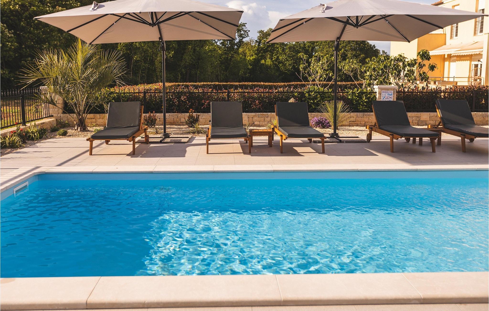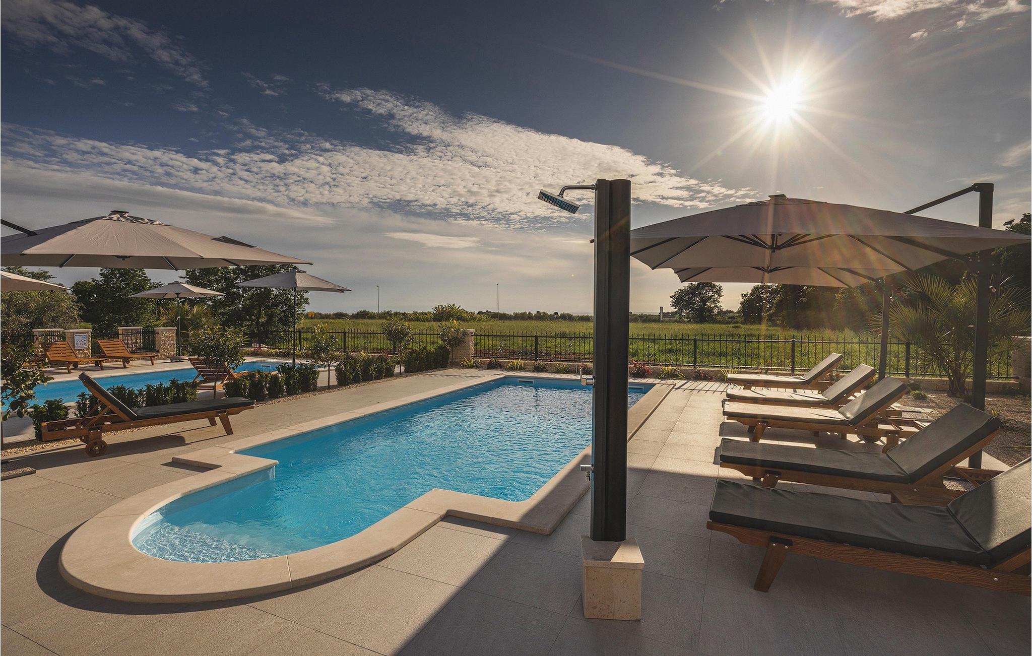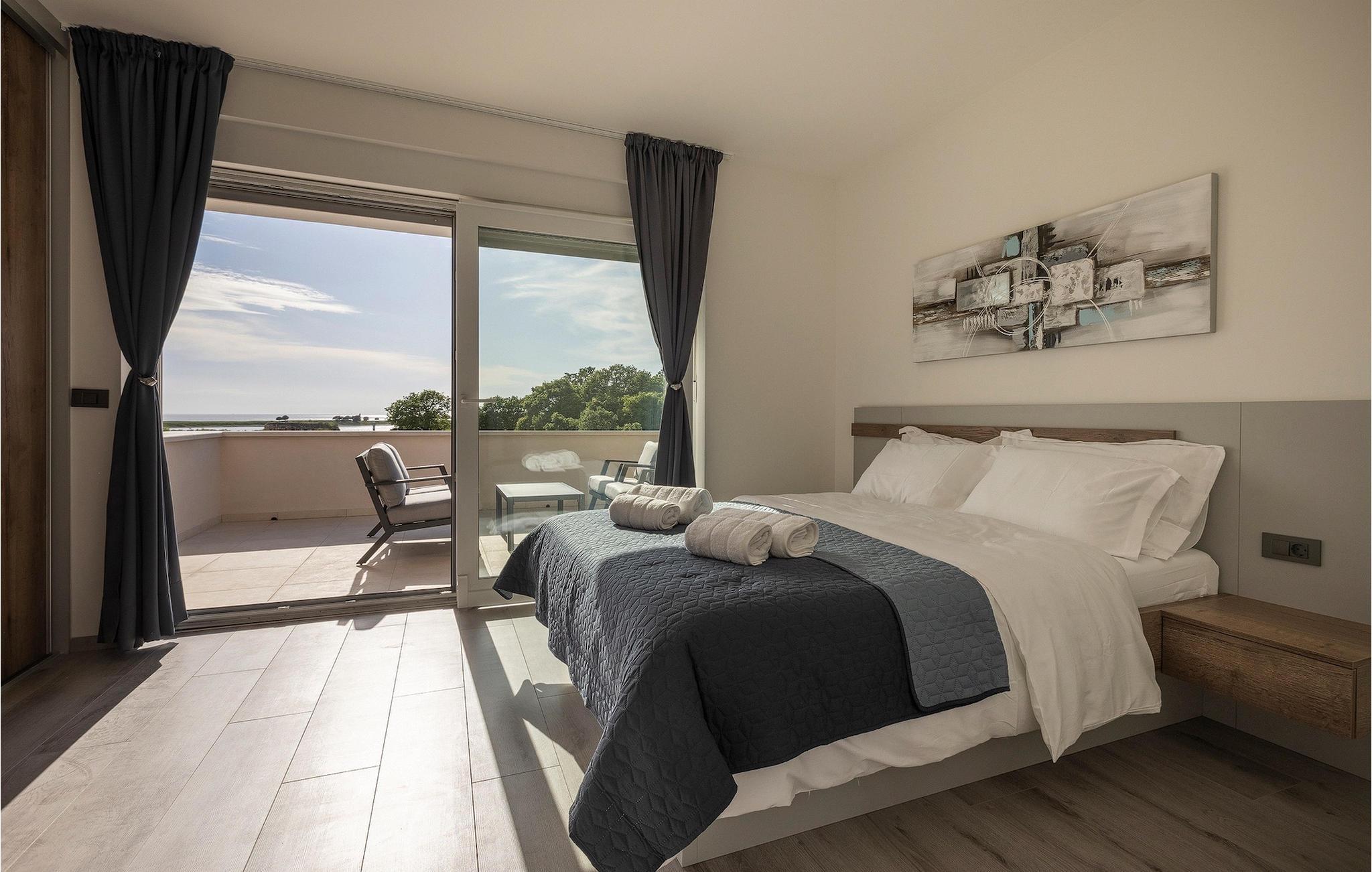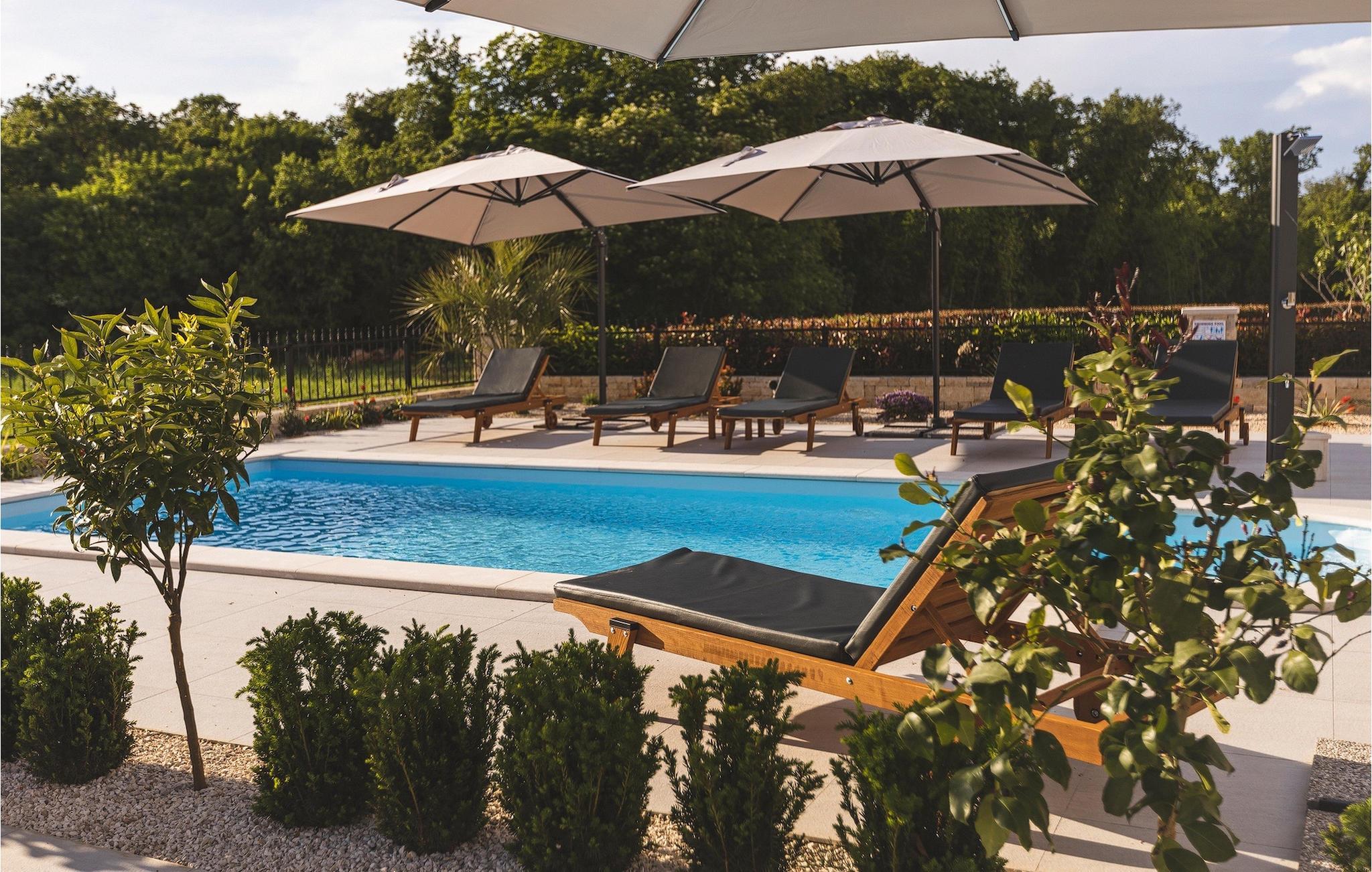 Den smukke Villa Goran i Umag inkluderer en fantastisk blå pool med 6 strandstole og 3 parasoller langs siden. Hele terrassen er omgivet af grøn natur og byder på udsigt til horisonten. Mellem to søjler under tag er der spiseplads til op til 8 personer og grill, til grillaften med udsigt til den glitrende pool. Terrassedøren i glas fører til en moderne stue med TV. Lige ved siden af er et fuldt udstyret køkken og et andet spisebord til op til 8 personer. Et komfortabelt dobbeltværelse med eget badeværelse og et separat værelse med en ekstra dobbeltseng tilbyder afslappende søvn. På anden sal finder du yderligere 3 dobbeltværelser med eget badeværelse og døre, der fører til den solbeskinnede balkon. Fra de 4 stole på balkonen kan du nyde den fantastiske udsigt over havet. Villa Goran er perfekt til en fredelig familieferie tæt på stranden og væk fra storbyen. Villa Goran ligger i Umag, kun 500 m fra havet, som er synligt fra ejendommen. Faciliteter såsom den nærmeste butik, café, restaurant og supermarked ligger inden for 1 km væk. Umag er fuld af historiske levn, såsom resterne af bymurene fra det 10. århundrede, som omfatter en port og en rigtig vindebro. Selv Umag Bymuseum er i et tidligere forsvarstårn og viser genstande fra romertiden som amforaer og lamper samt moderne lokal kunst. For en mere moderne aktivitet kan du og din familie køre racerløb med hinanden i go carts. Kun 30 minutter væk kan du nyde flere vandrutsjebaner i en Aquapark, for en dag med sjov med hele familien.