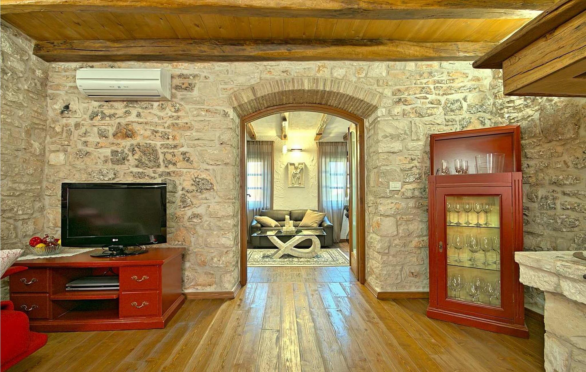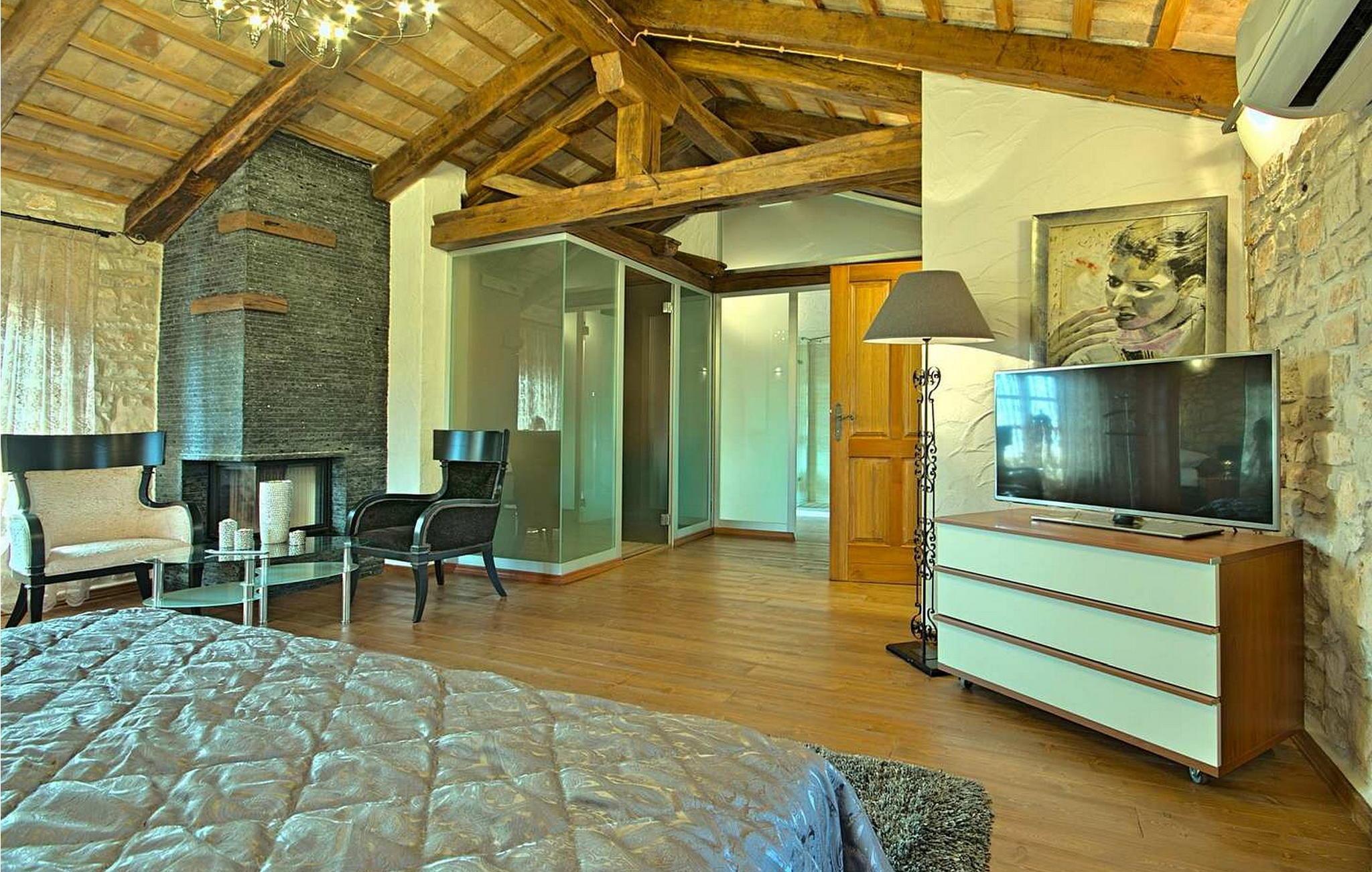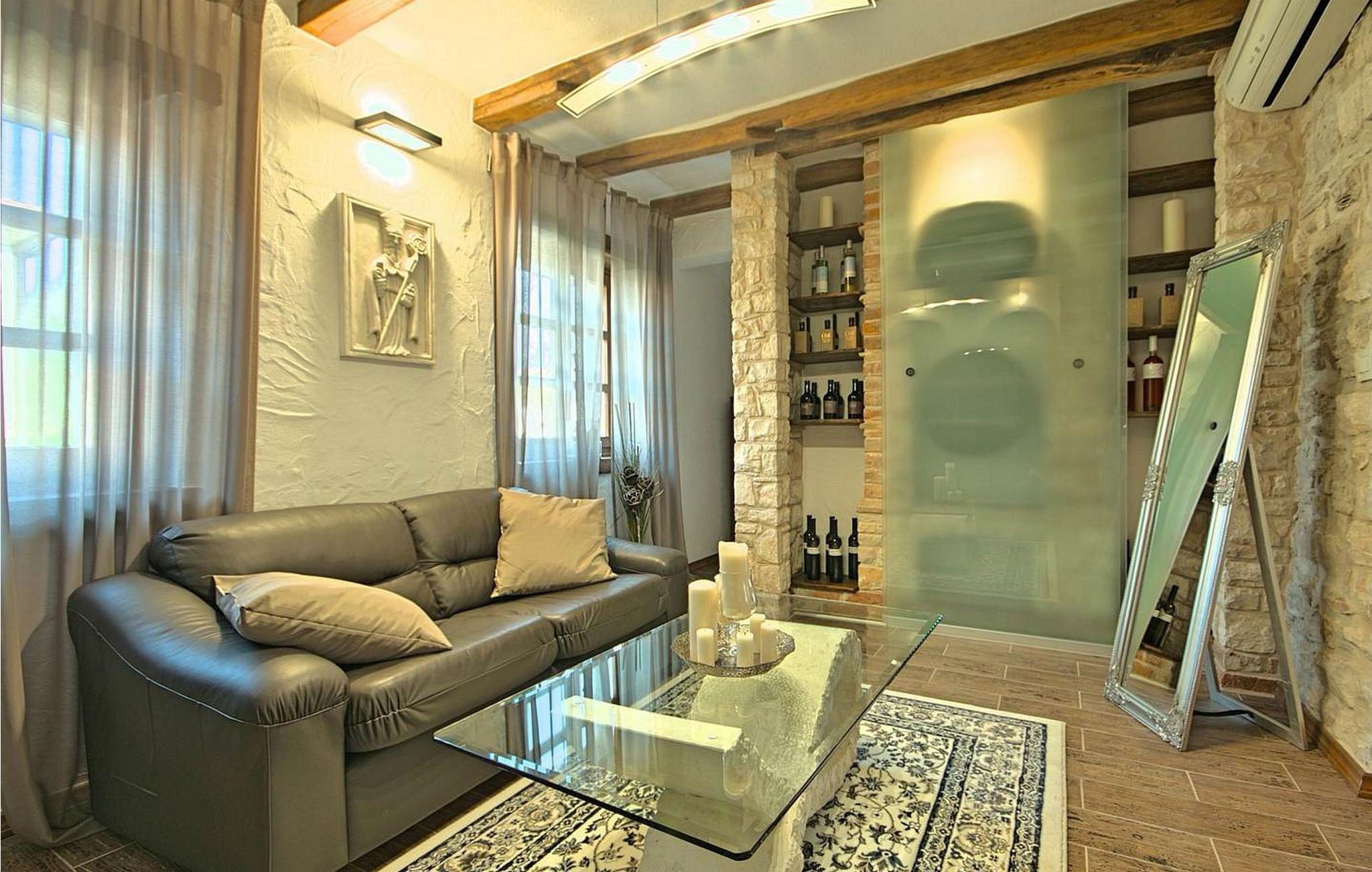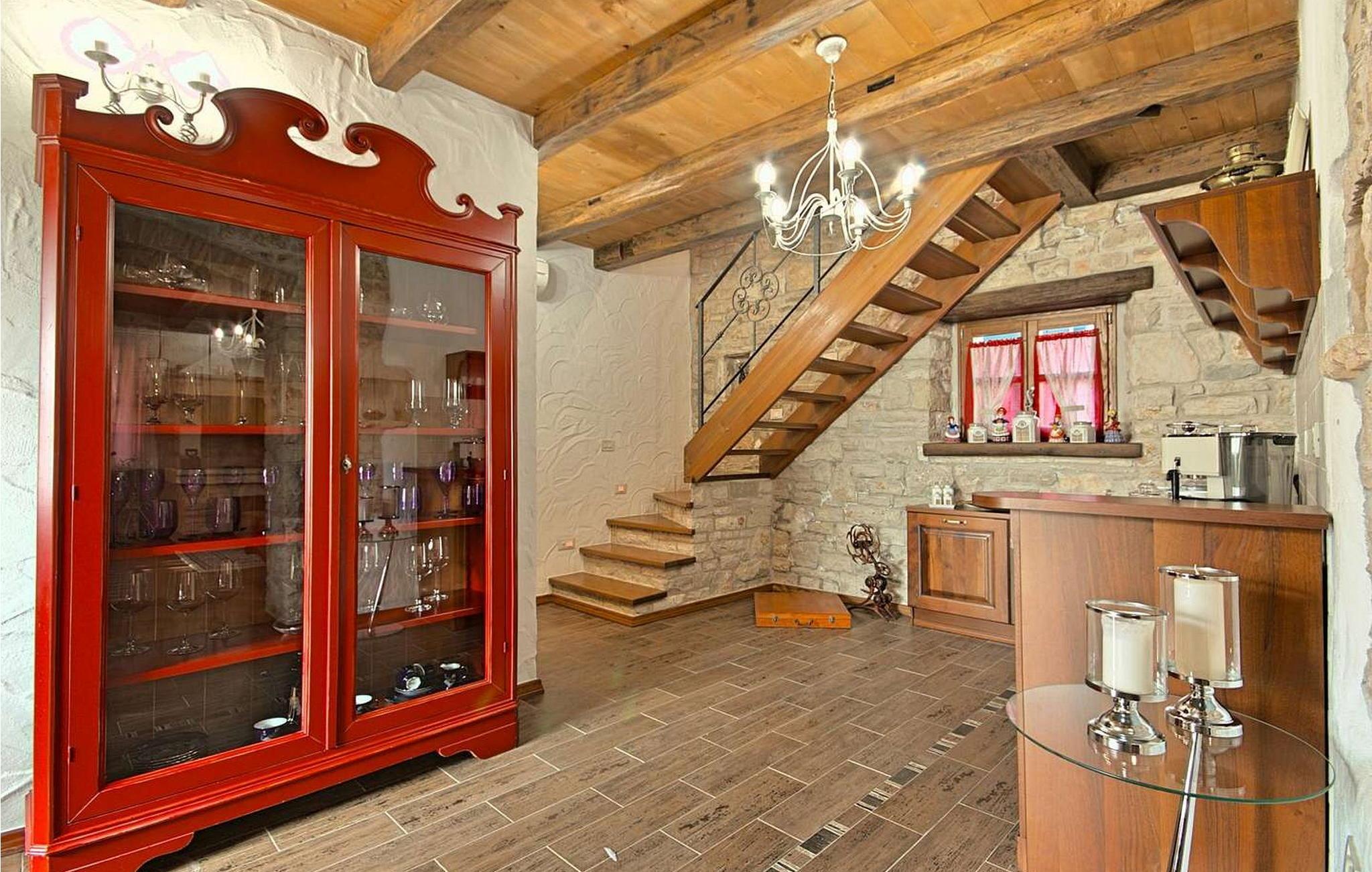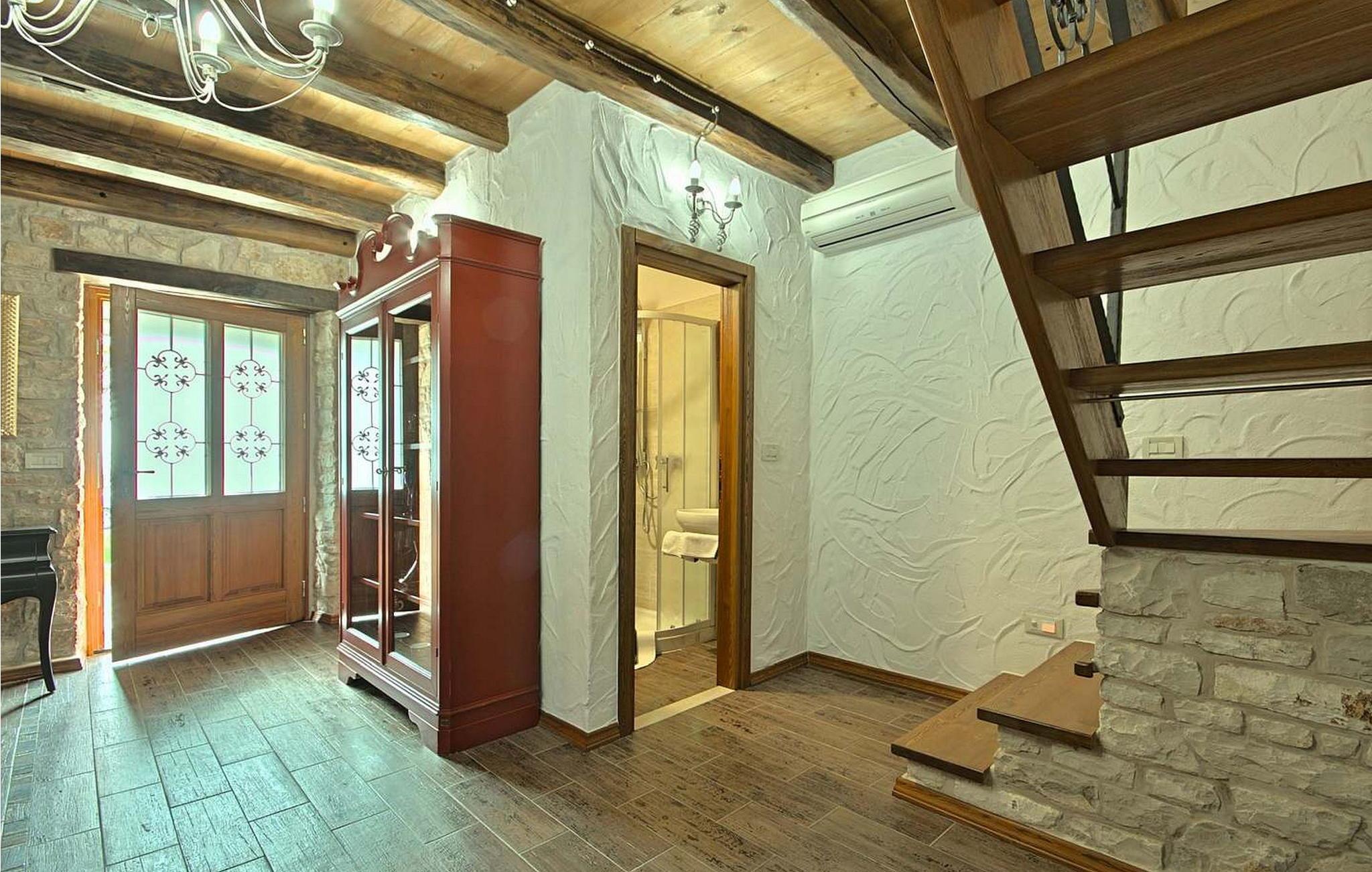 Villa San Niccolò er et charmerende istrisk stenhus i den maleriske landsby St. Nikola, kun 6 km fra de smukke strande i Umag. Bygget i 1910 og omhyggeligt renoveret i 2010, denne villa har masser af karakter og ligger på privat grund, der deles med to andre huse, hvoraf det ene er beboet af ejerne. Gæsterne har eksklusiv adgang til en velholdt have med swimmingpool, en grøn overdækket terrasse med et behageligt opholdsområde og rigelig parkering. Den komfortable villa strækker sig over tre etager. I stueetagen er der en indbydende stue, et vinrum perfekt til sammenkomster, et tekøkken, et lille vaskerum og et brusebad. Første sal indeholder et soveværelse med dobbeltseng med to enkeltsenge, satellit-tv, en pejs og et separat toilet. Det har også et fuldt udstyret køkken med spisebord og adgang til en overdækket balkon med grill og spiseplads. Loftet byder på et rummeligt oase med satellit-tv, en pejs, en sauna og eget bad og toilet. Denne villa er det perfekte sted for en afslappende ferie, der kombinerer historisk charme med moderne komfort. Bemærk venligst, at denne ejendom ikke accepterer ungdomsgrupper eller polterabender. En ungdomsgruppe på denne ejendom består af personer på 26 år eller derunder.