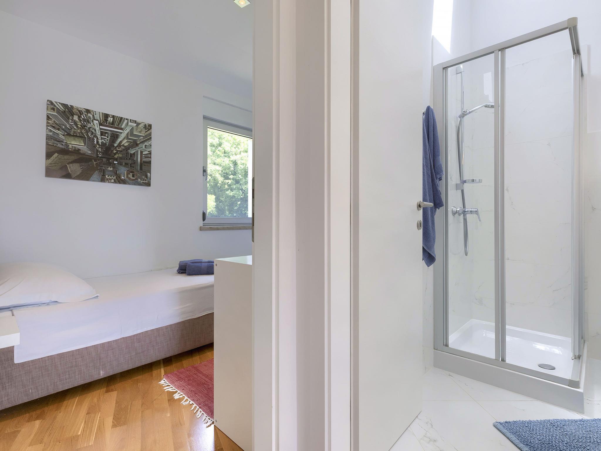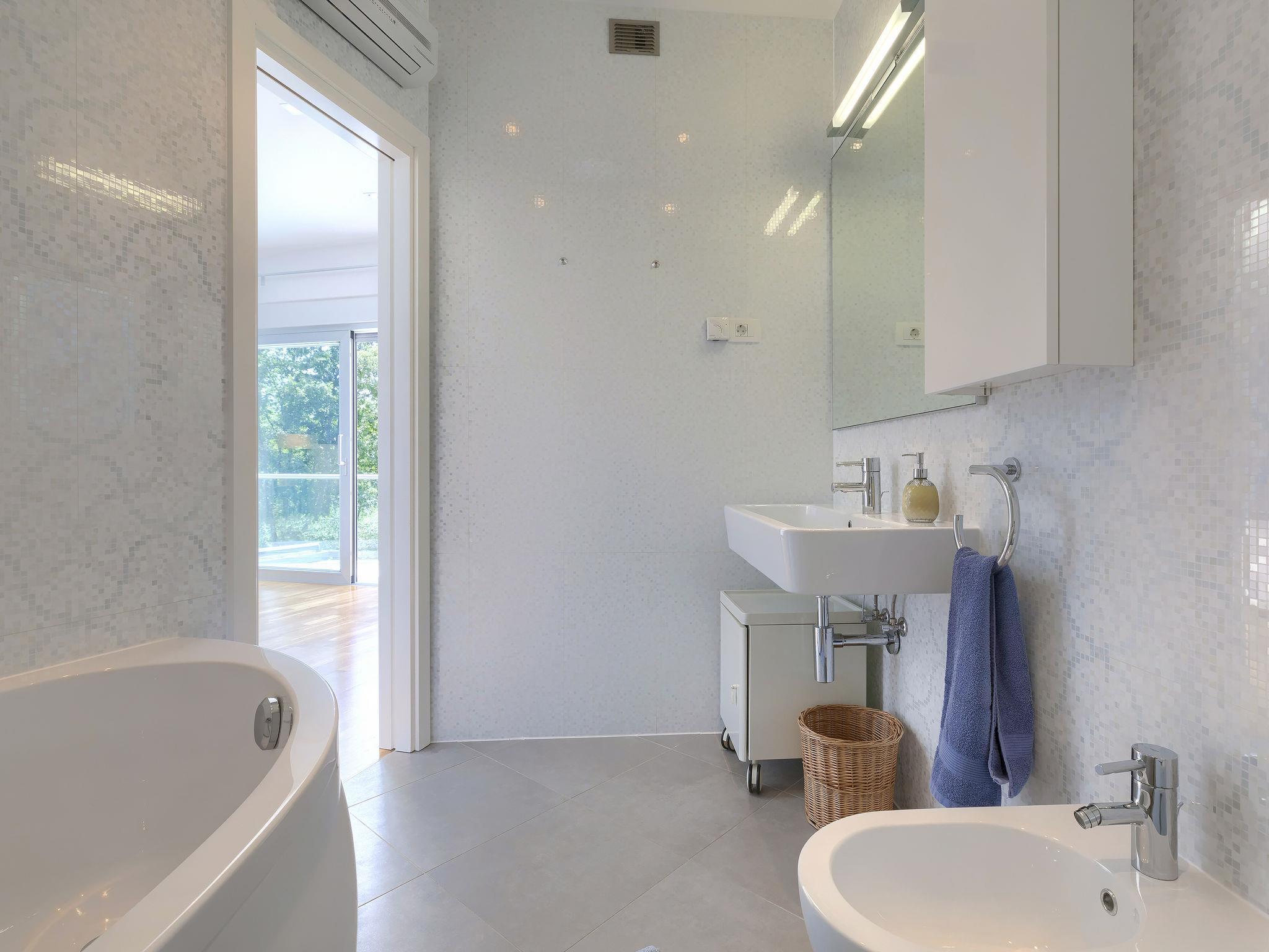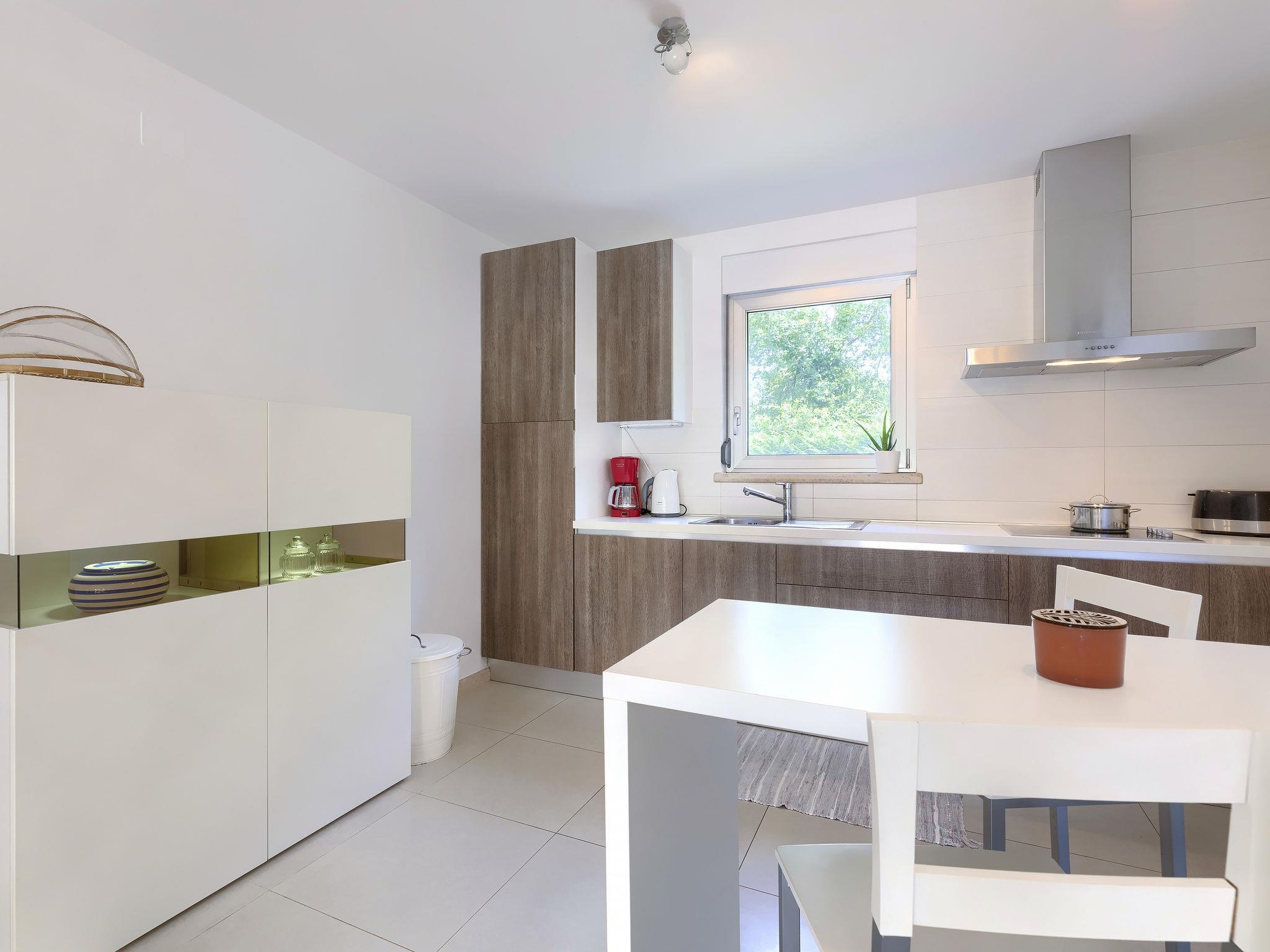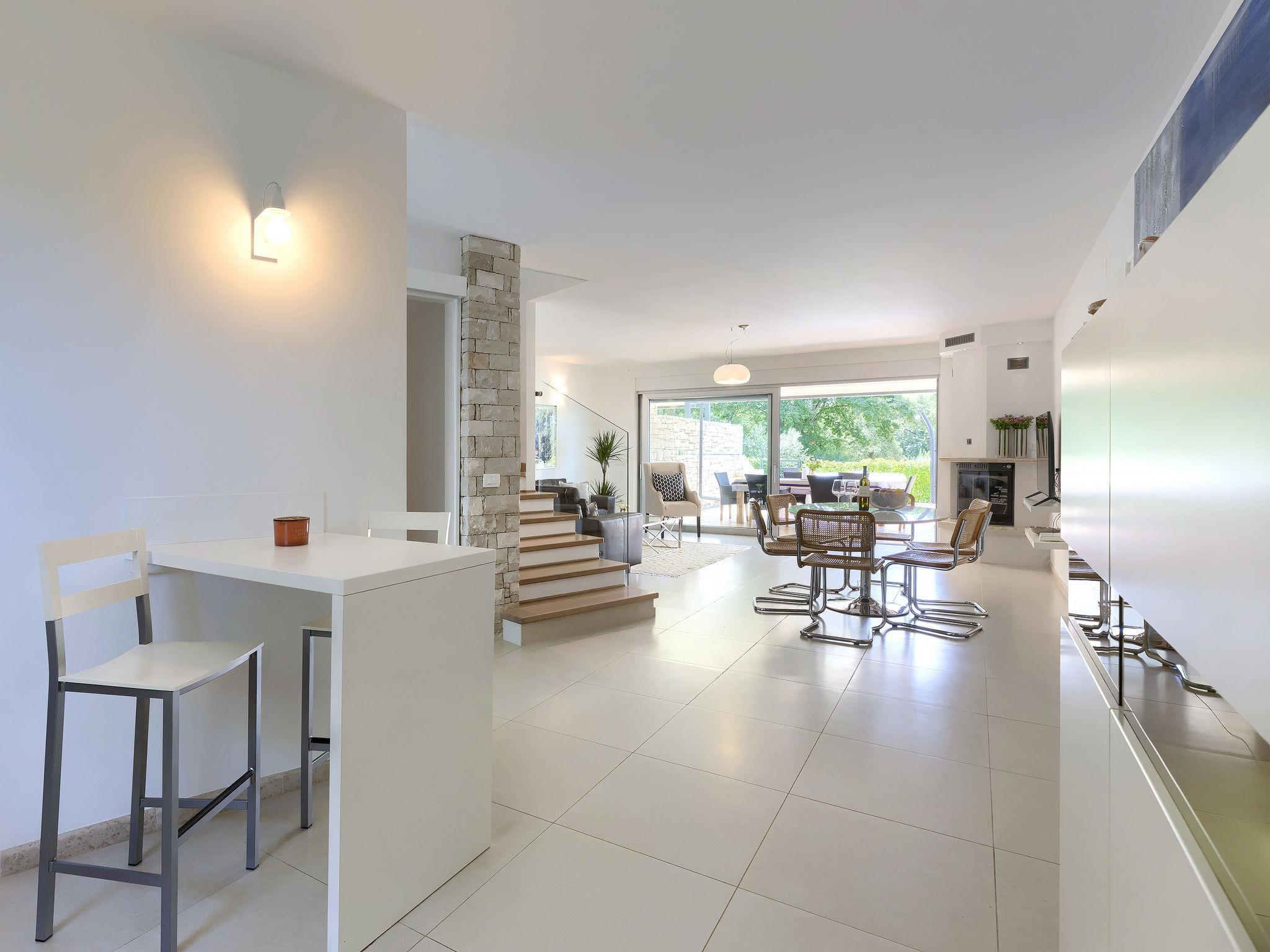 Modern, beautiful terraced house "Sv. Ivan 2", 2 storeys. In the hamlet Sv. Ivan 4 km from the centre of Umag, in a quiet, sunny position, from the sea, 100 m from the beach. For shared use: property 500 m2 (fenced) with lawn. Private: swimming pool (above ground) heated (2 x 2 m, depth 50 cm, seasonal availability: 13.Apr. - 12.Oct.). Barbecue. In the house: internet access. Parking. Shop 200 m, restaurant 100 m, bus stop 4 km, railway station 35 km, rocky beach 100 m. Golf course (18 hole) 15 km, tennis, cycle lane 100 m. Groups of teenagers on request only. Swimming pool for private use is a hot tub for 4 persons. Additional change of water in the hot tub (extra). In the same terraced house there is house ref. HR2200.450.1 for rent.