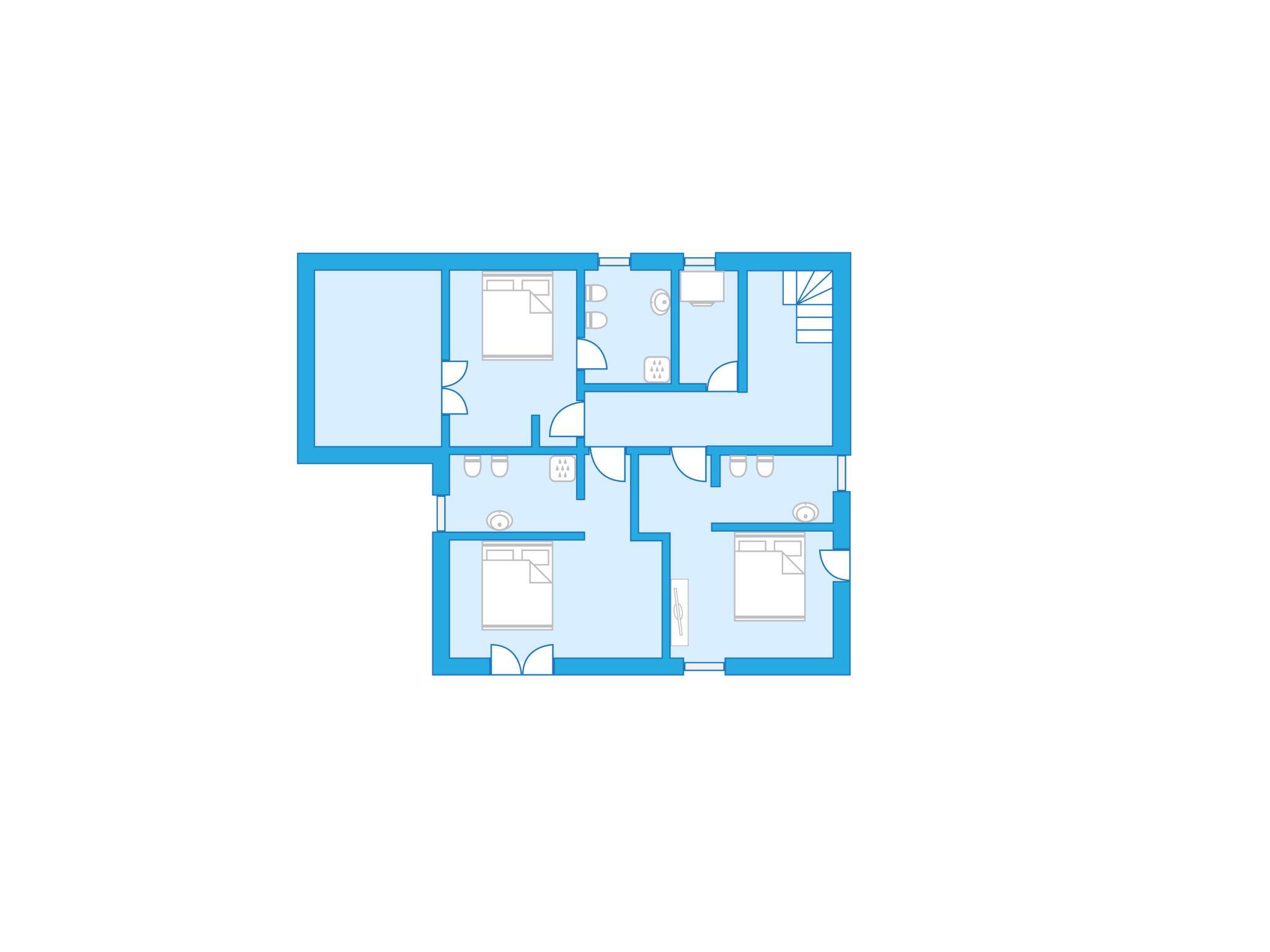 6-room house 220 m2 on 2 levels. Living/dining room with satellite TV and air conditioning. Exit to the garden, to the terrace, to the swimming pool. 1 room with 2 beds (90 cm, length 200 cm). 1 room with 2 beds (90 cm, length 200 cm). Exit to the swimming pool. Open kitchen (1 hot plate, oven, dishwasher, 3 gas rings, toaster, kettle, microwave, freezer). Shower/bidet/WC, double hand-basin. Upper floor: 3 rooms, each room with 1 double bed (2 x 90 cm, length 200 cm), shower/bidet/WC, satellite TV and air conditioning. Exit to the terrace. No heating option. 3 terraces 10 m2, covered. Terrace furniture, deck chairs. View of the countryside. Facilities: hair dryer. Internet (WiFi, free). Please note: non-smoking house. Fire extinguisher.