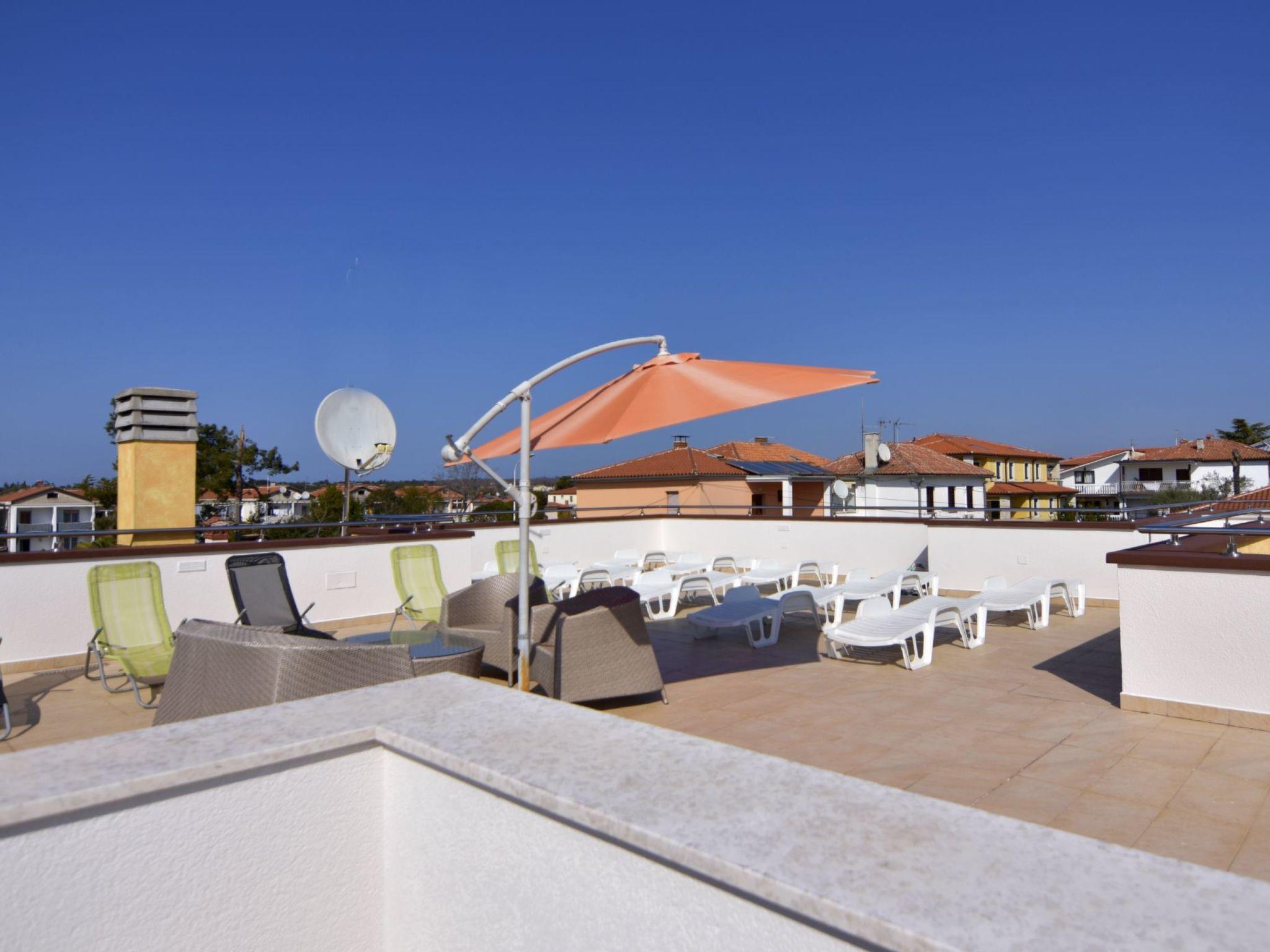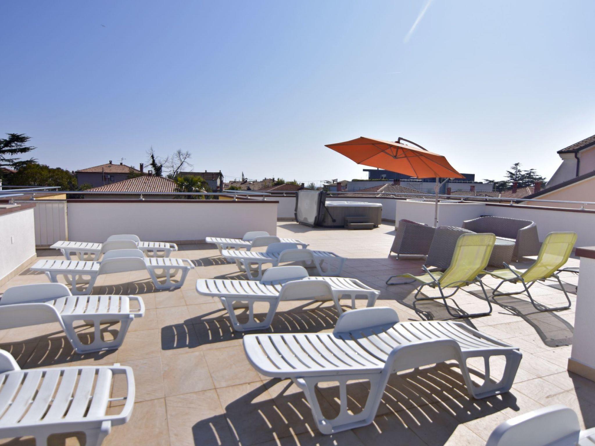 Outside, you will find a 730 m2 property with a small garden with play facilities for children, free private parking and a spacious roof terrace. The terrace is equipped with sun loungers, parasols and a hot tub for relaxing moments. Use of the whirlpool follows a set schedule, which is displayed in each flat.