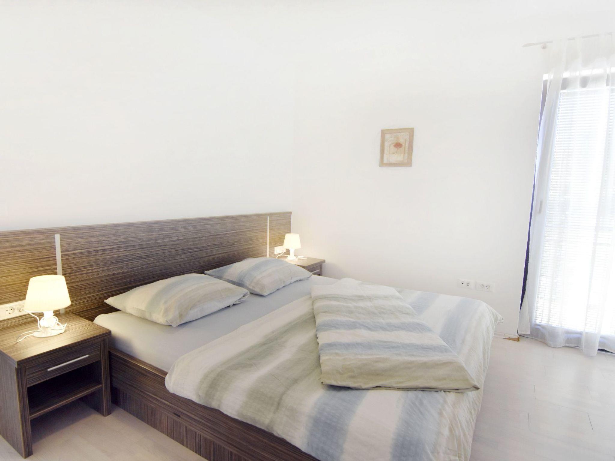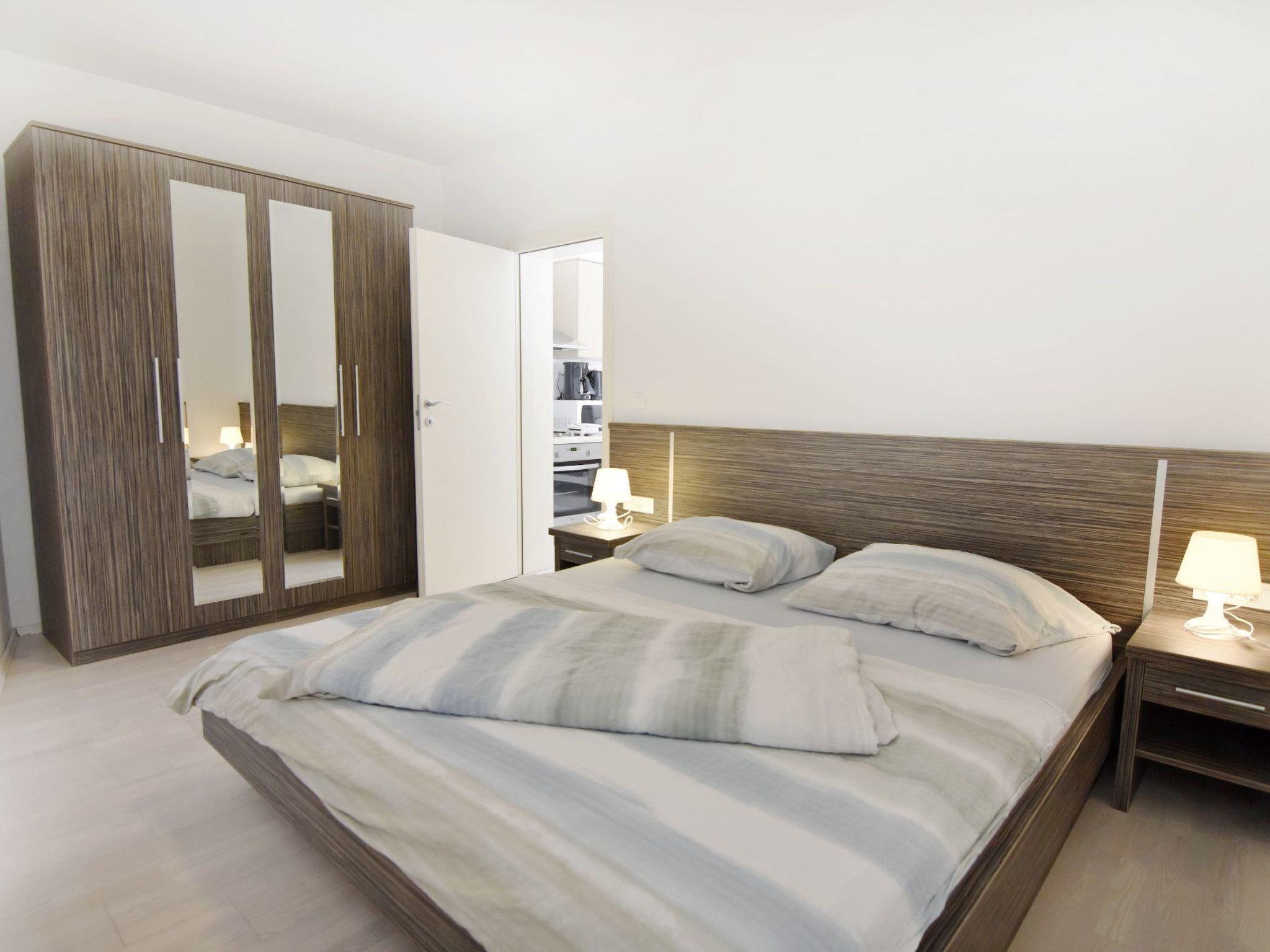The 42 m² flat 5 awaits you on the first floor of Villa Alpa, furnished with care and love in a modern style. You will immediately feel at home. The flat has a cosy bedroom with a comfortable double bed, a spacious wardrobe and an elegant chest of drawers. In the fully equipped bathroom you will find a shower cubicle, a hairdryer and fresh towels. The living area is equipped with a kitchenette that leaves nothing to be desired, a dining table, a comfortable sofa bed and a flat-screen satellite TV. In addition, air conditioning ensures pleasant temperatures and free Wi-Fi provides entertainment and comfort.