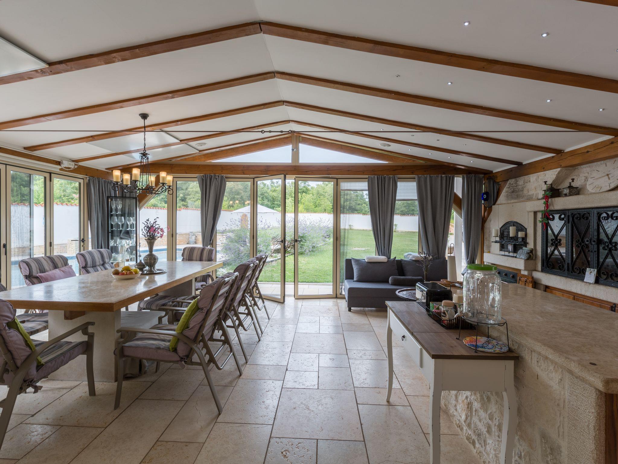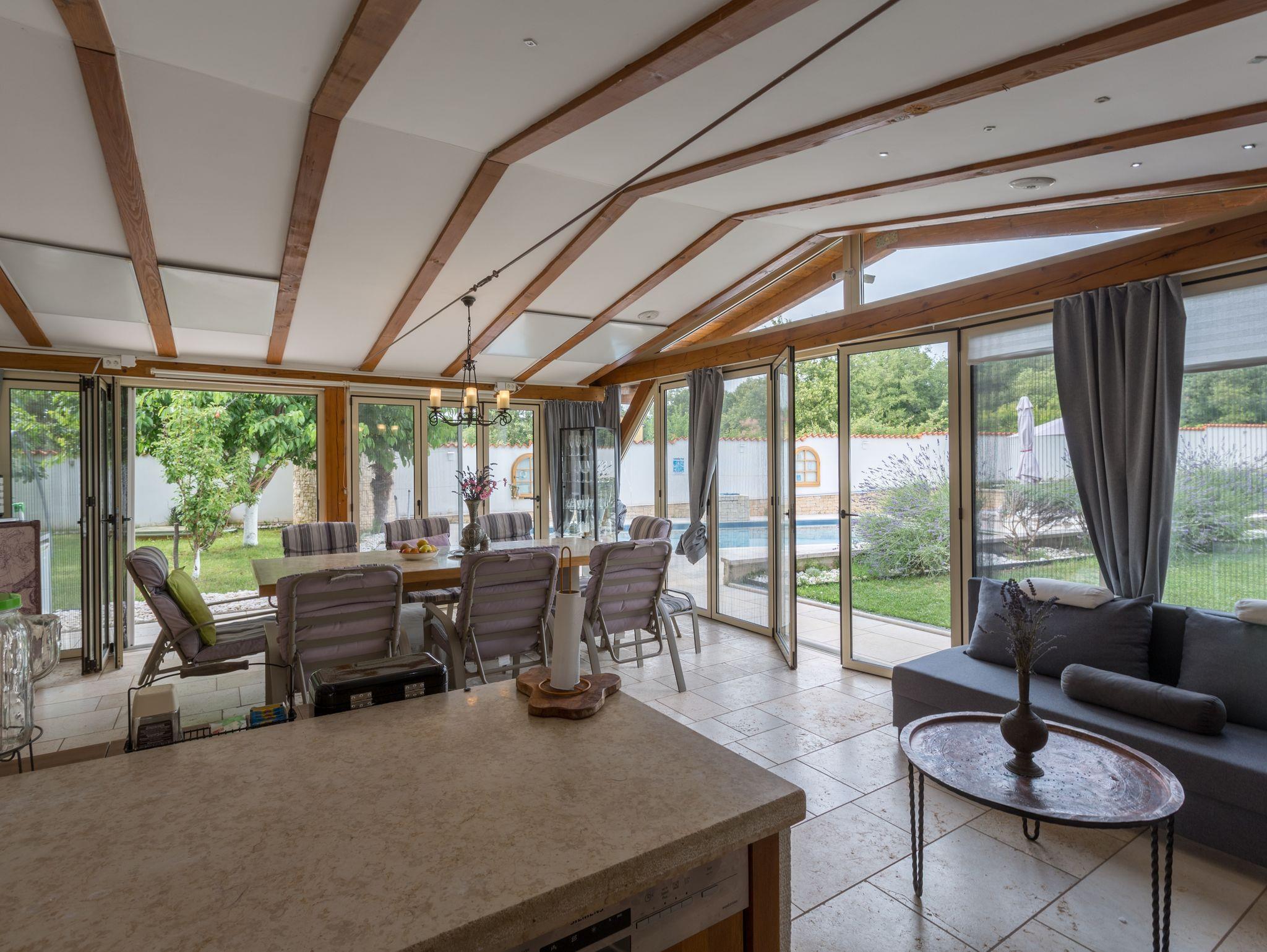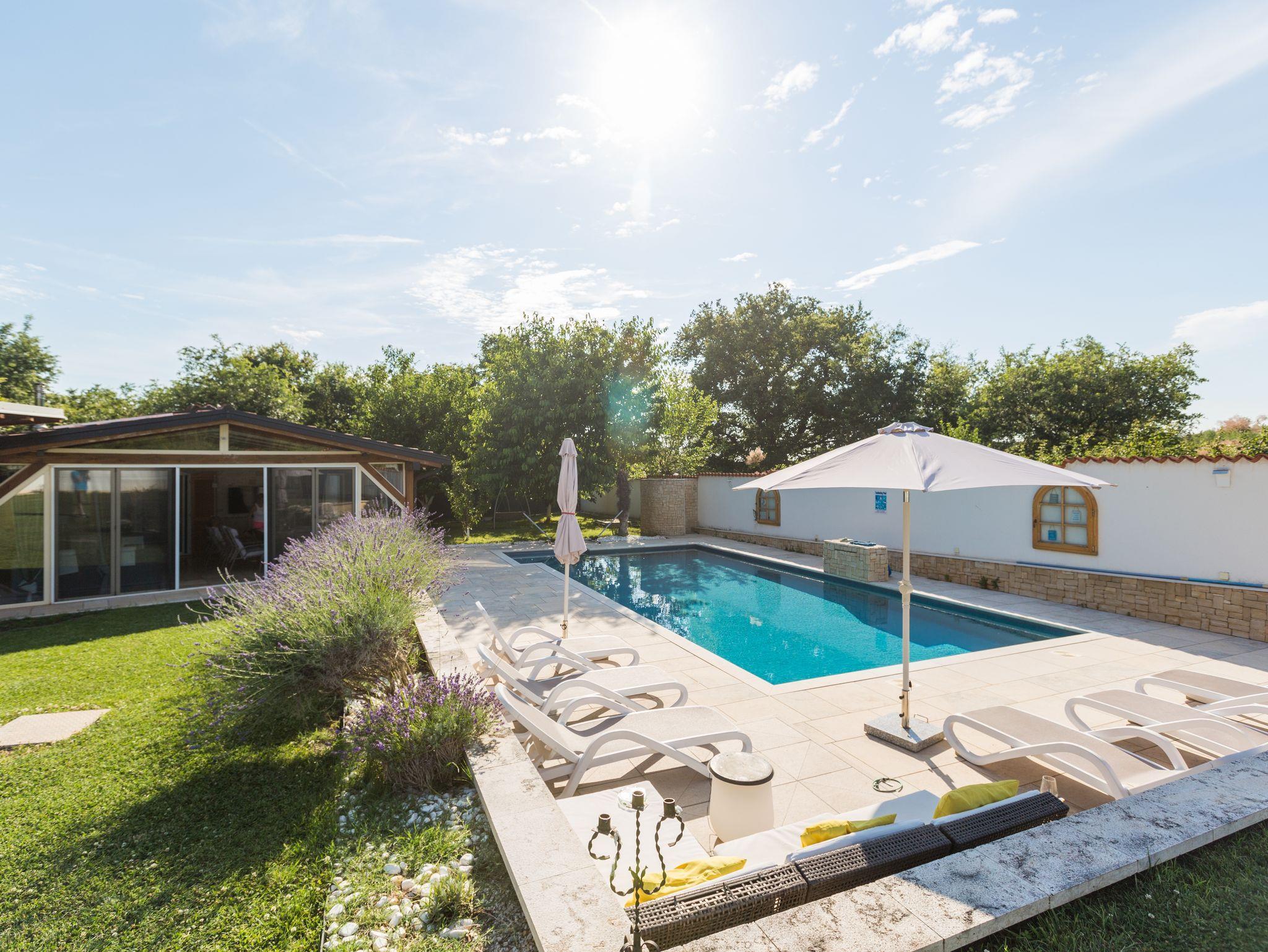 Hof (1000m2, Kinderbereich, Sitzbereich), Parkplatz (Anzahl der Parkplätze: 3, Entfernung vom Objekt: im Hof), Pool: privat, Dimensionen: 10m x 5m x 2m, Wassertyp: Süßwasser, Heizung: Ja, WiFi Internet, Föhn, Bügeleisen, Bügelbrett, Sonnenschirm, Liegestühle, Kinderbett
