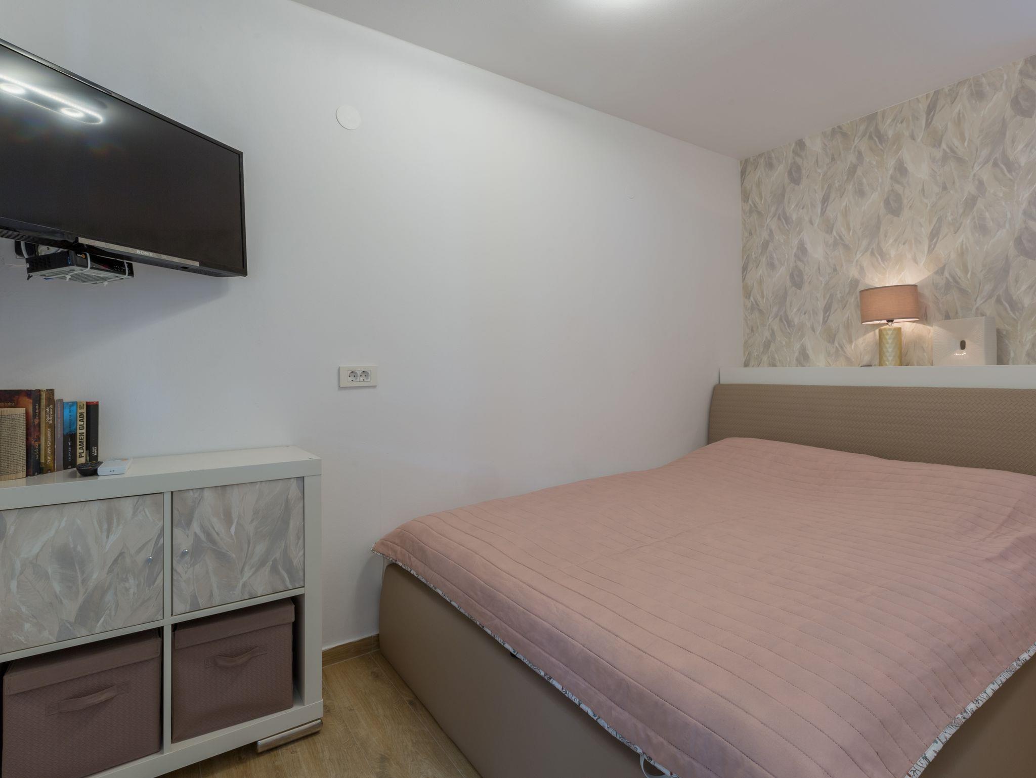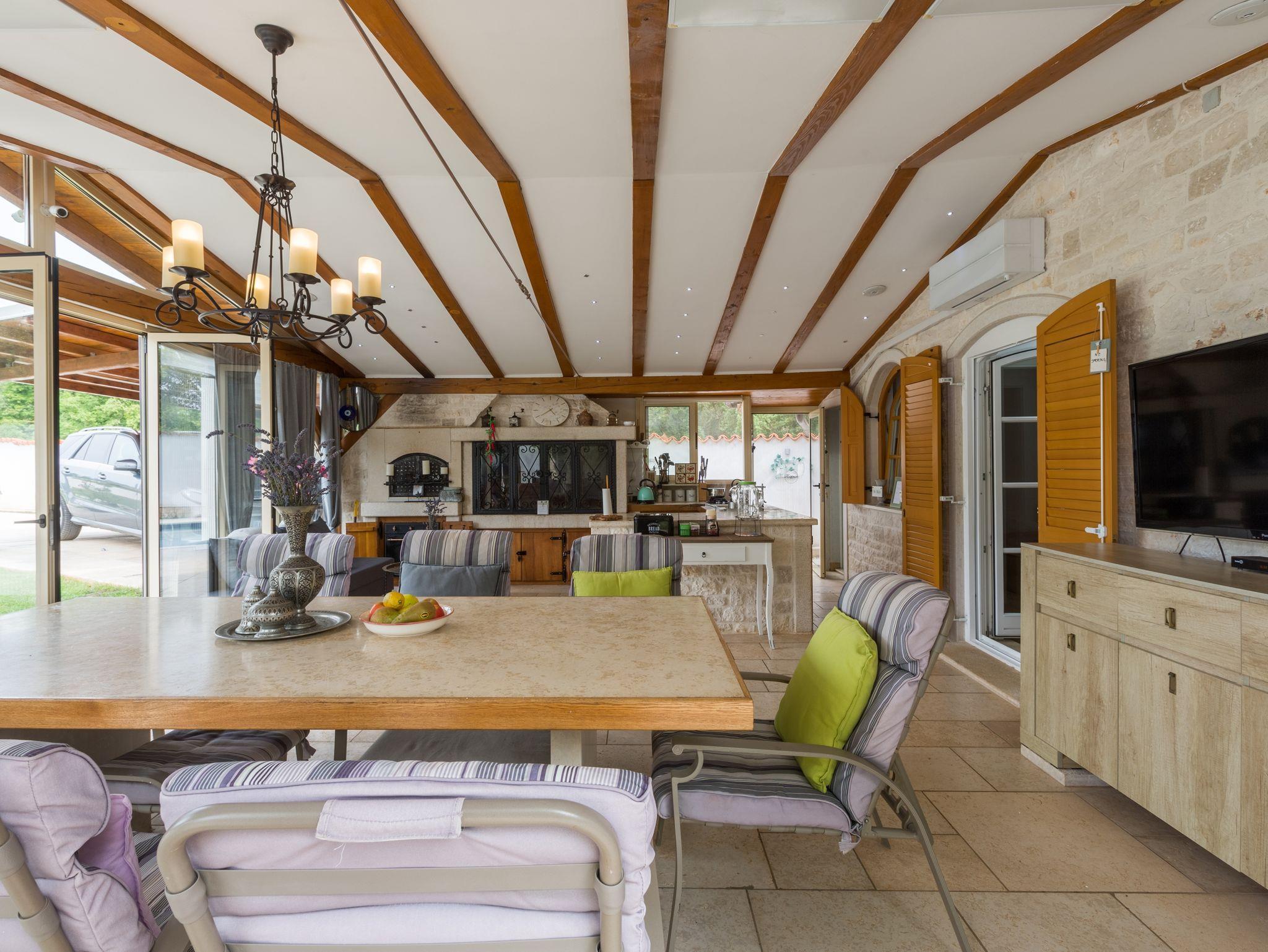 Haus bietet Platz für 6 Gäste. Die Betten sind in Schlafzimmern, die es 2 gibt, und in Wohnzimmer, innerhalb einer Gesamtfläche von 75m2, angeordnet. Für vollen Genuss und Entspannung gibt es einen privaten Grill für Gäste dieser Unterkunft. Während ihres Aufenthalts können sich Gäste im privaten Schwimmbad entspannen. Die reservierte Unterkunftseinheit hat keinen Balkon und keine Terrasse. IM PREIS INBEGRIFFEN: Kurtaxe, Endreinigung, Klimatisierung, Zentralheizung, Pool, Parkplatz, Internet, Kinderbett, Bügeleisen, Bügelbrett, Föhn, Sonnenschirm, Liegestühle. VERBINDLICHE ZUSÄTZLICHE KOSTEN: Aufzahlung für Kurzaufenthalte (prozentualer Zuschlag pro Nächtigungsanzahl: 30% - 1, 20% - 2, 10% - 3). Die Verfügbarkeit zusätzlicher Dienstleistungen in Ihrem reservierten Termin und die Preise derselben (falls nicht aufgeführt) müssen im Voraus überprüft werden. Zusätzliche Dienstleistungen die in der Zahlungsaufforderung nicht aufgeführt sind werden direkt beim Vermieter bezahlt, angenommen der Gast nutzt auch diese.