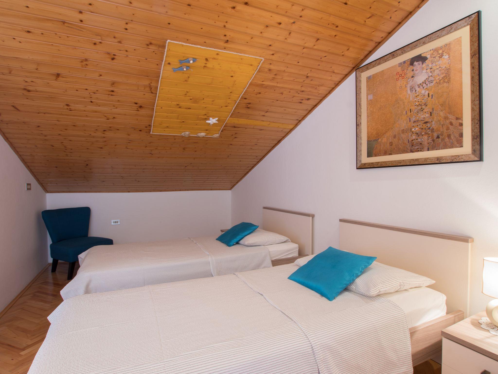 Ferienwohnung bietet Platz für 4 Gäste. Die Betten sind in Schlafzimmern, die es 2 gibt, innerhalb einer Gesamtfläche von 63m2, angeordnet. Die Gäste haben einen eigenen Balkon zur Verfügung, auf der sie in warmen Sommernächten genießen können. Das Apartment bietet Meerblick. Es ist erlaubt, Speisen auf dem Gemeinschafts-Grill vorzubereiten. In der Unterkunftseinheit besteht die Möglichkeit des Mitbringens von Haustieren gegen Aufpreis. IM PREIS INBEGRIFFEN: Kurtaxe, Endreinigung, Klimatisierung, Parkplatz, Internet, Kinderbett, Föhn, tragbarer Grill. VERBINDLICHE ZUSÄTZLICHE KOSTEN: Aufzahlung für Kurzaufenthalte (prozentualer Zuschlag pro Nächtigungsanzahl: 30% - 1, 20% - 2, 10% - 3). UNVERBINDLICHE ZUSÄTZLICHE KOSTEN: Wäschewaschen (10,00 € Waschen), Haustiere (7,00 € pro Nacht). Die Verfügbarkeit zusätzlicher Dienstleistungen in Ihrem reservierten Termin und die Preise derselben (falls nicht aufgeführt) müssen im Voraus überprüft werden. Zusätzliche Dienstleistungen die in der Zahlungsaufforderung nicht aufgeführt sind werden direkt beim Vermieter bezahlt, angenommen der Gast nutzt auch diese. Ermäßigung auf den Grundpreis: Gratistag 14=13 (bei einem Aufenthalt von 14 Tagen oder mehr erhalten Sie einen Gratistag für den Aufenthalt bis 31.12.26).