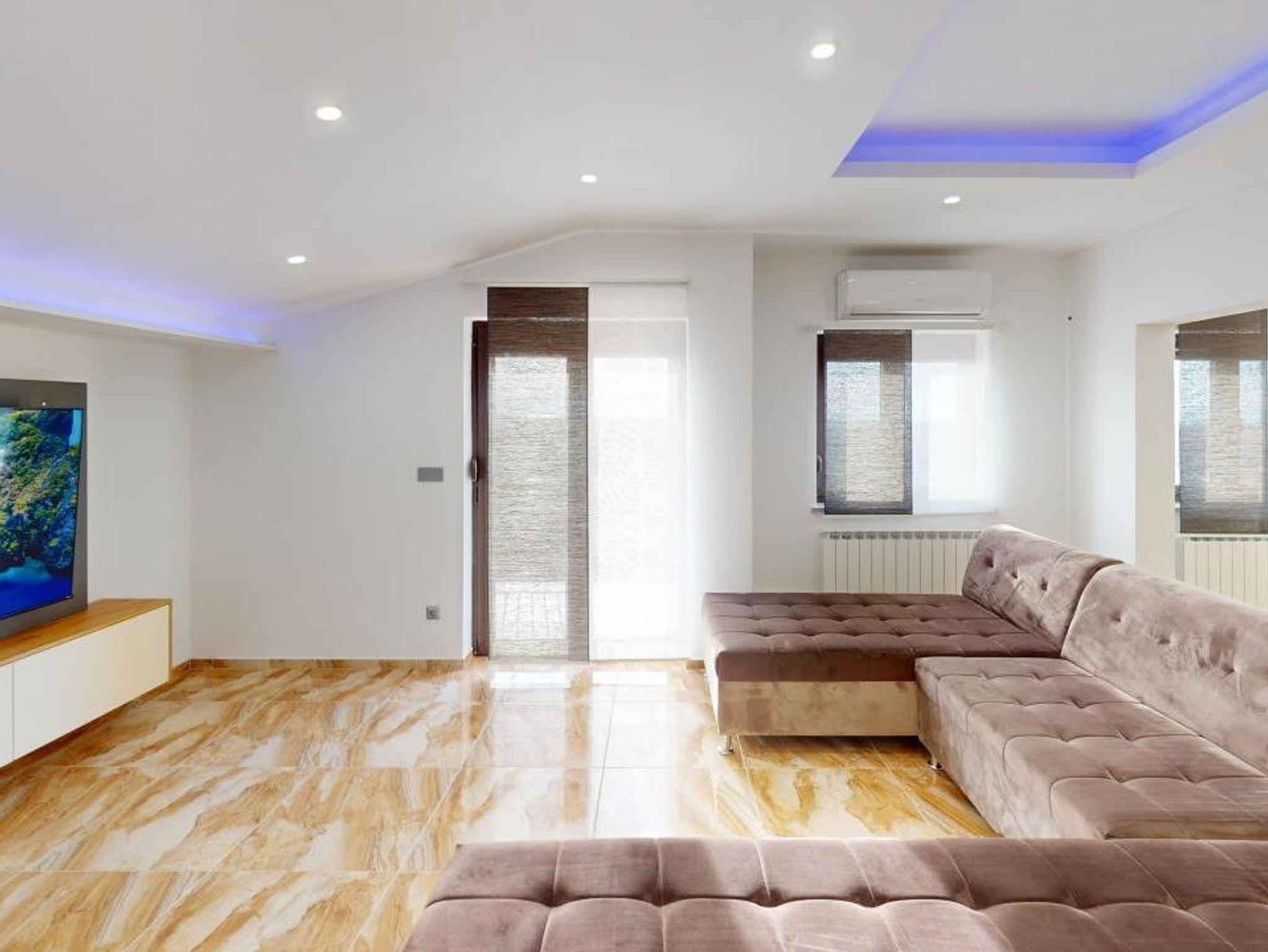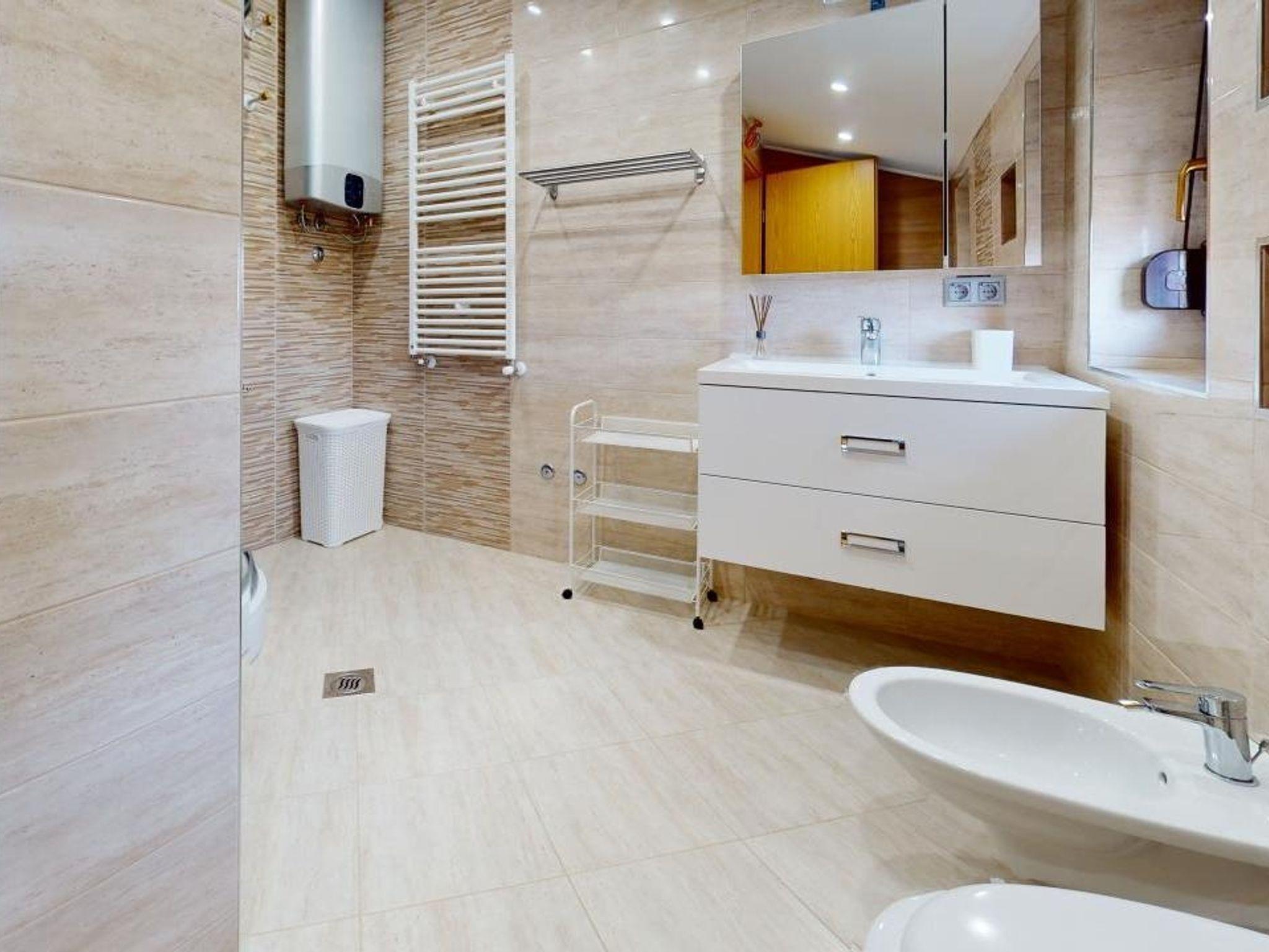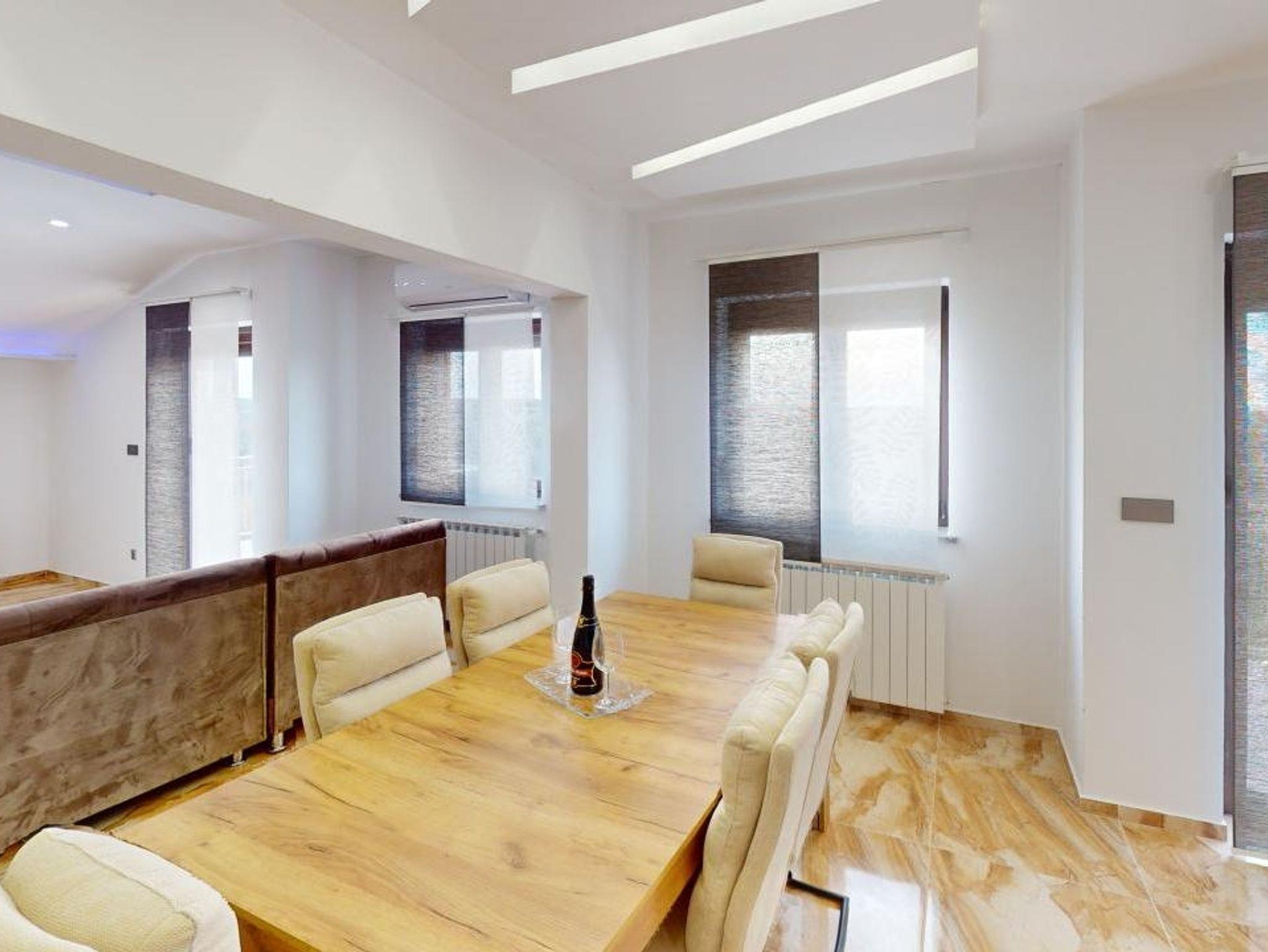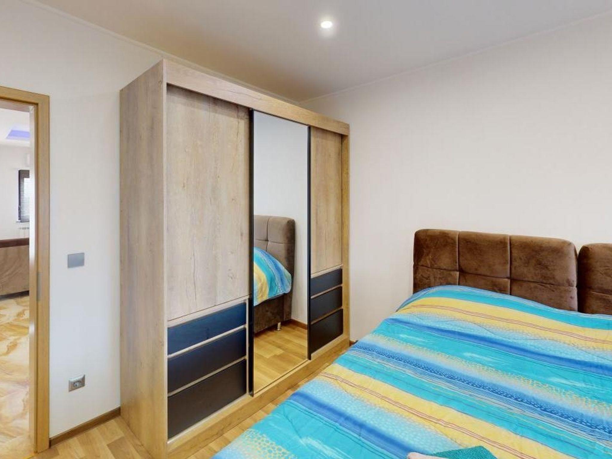 Ferienwohnung bietet Platz für 6 Gäste. Die Betten sind in Schlafzimmern, die es 2 gibt, und in Wohnzimmer, innerhalb einer Gesamtfläche von 96m2, angeordnet. Die Gäste haben eine eigene Terrasse zur Verfügung, auf der sie in warmen Sommernächten genießen können. Das Apartment bietet Meerblick. Es ist erlaubt, Speisen auf dem Gemeinschafts-Grill vorzubereiten. IM PREIS INBEGRIFFEN: Kurtaxe, Endreinigung, Klimatisierung, Zentralheizung, Parkplatz, Internet, Bügeleisen, Föhn. Die Verfügbarkeit zusätzlicher Dienstleistungen in Ihrem reservierten Termin und die Preise derselben (falls nicht aufgeführt) müssen im Voraus überprüft werden. Zusätzliche Dienstleistungen die in der Zahlungsaufforderung nicht aufgeführt sind werden direkt beim Vermieter bezahlt, angenommen der Gast nutzt auch diese. Ermäßigung auf den Grundpreis: Gratistag 14=13 (bei einem Aufenthalt von 14 Tagen oder mehr erhalten Sie einen Gratistag für den Aufenthalt bis 31.12.26).