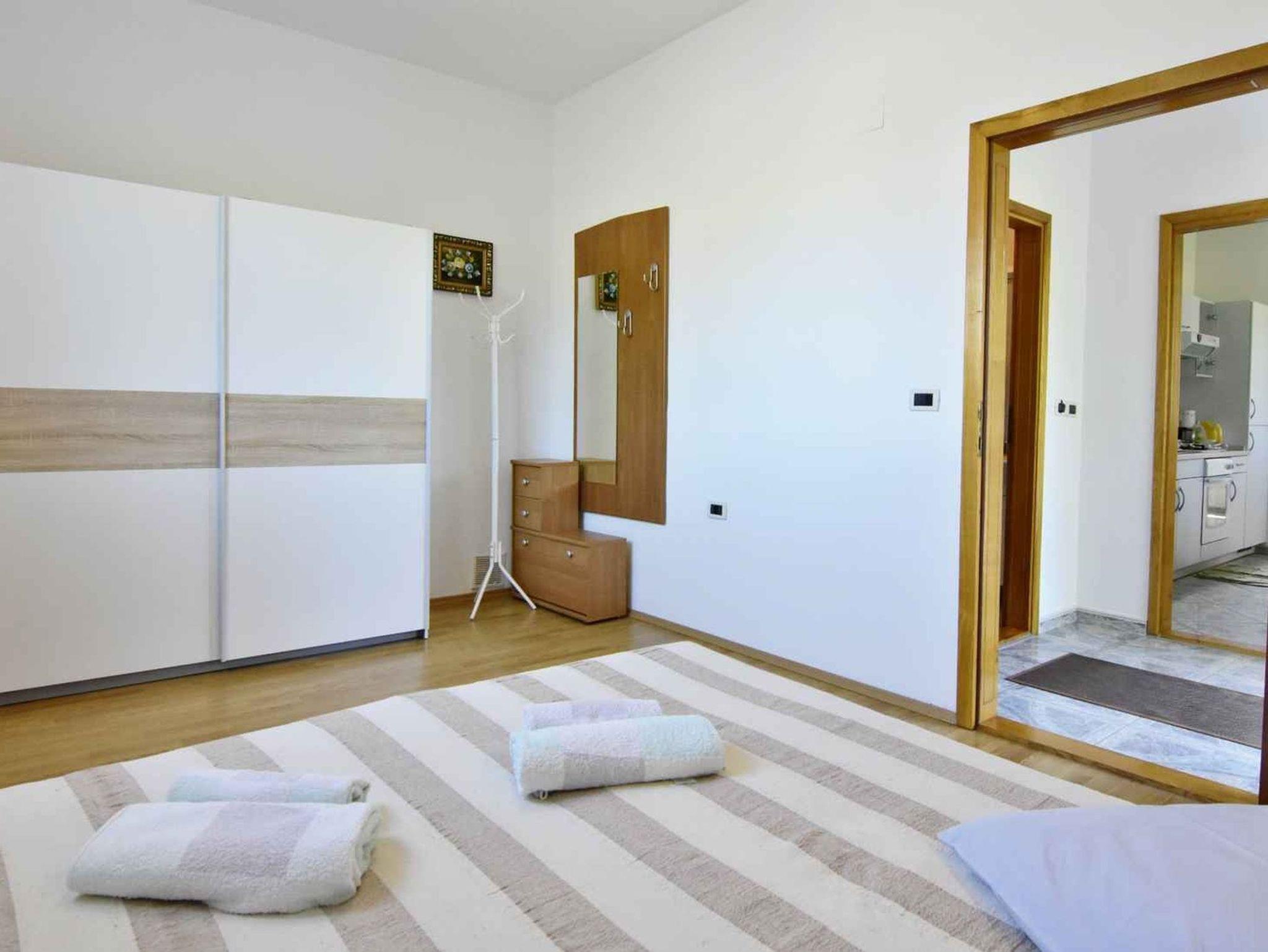 Ferienwohnung bietet Platz für 5 Gäste. Die Betten sind in Schlafzimmern, die es 2 gibt, und in Wohnzimmer, innerhalb einer Gesamtfläche von 51m2, angeordnet. Die Gäste haben eine eigene Terrasse zur Verfügung, auf der sie in warmen Sommernächten genießen können. Es ist erlaubt, Speisen auf dem Gemeinschafts-Grill vorzubereiten. IM PREIS INBEGRIFFEN: Kurtaxe, Endreinigung, Klimatisierung, Parkplatz, Internet, Föhn. Die Verfügbarkeit zusätzlicher Dienstleistungen in Ihrem reservierten Termin und die Preise derselben (falls nicht aufgeführt) müssen im Voraus überprüft werden. Zusätzliche Dienstleistungen die in der Zahlungsaufforderung nicht aufgeführt sind werden direkt beim Vermieter bezahlt, angenommen der Gast nutzt auch diese.