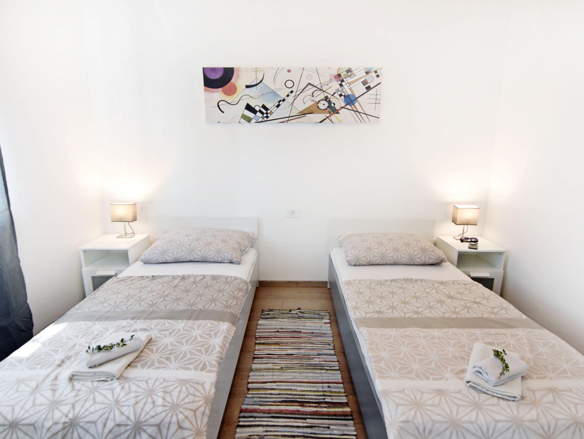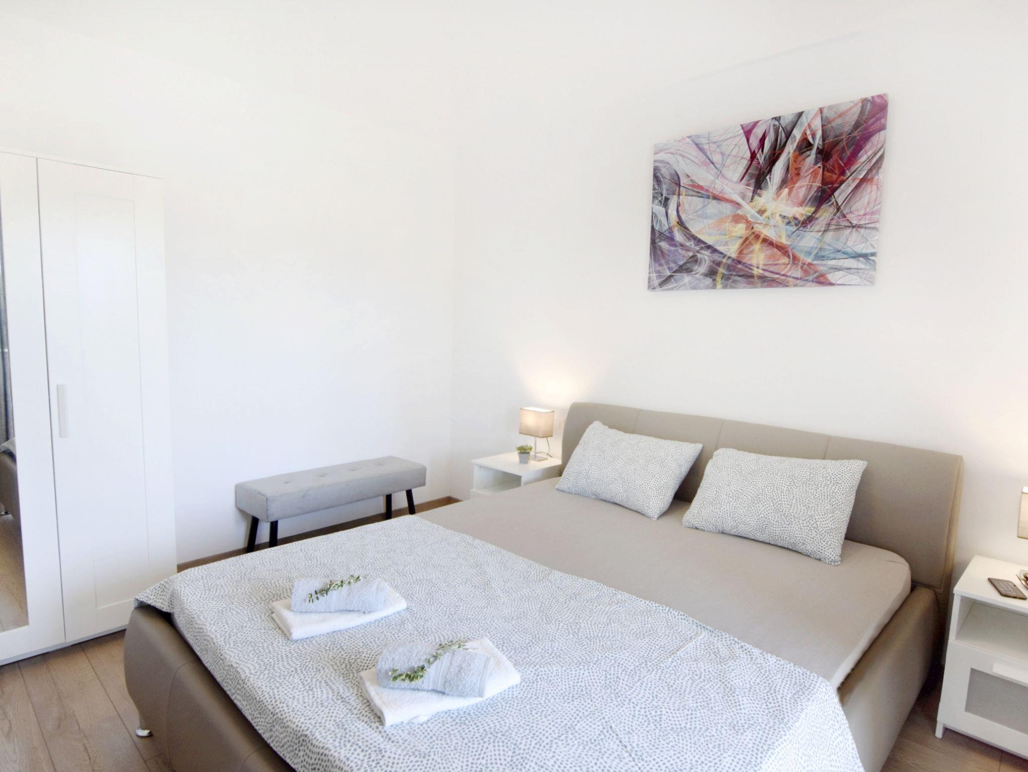 Ferienwohnung bietet Platz für 5 Gäste. Die Betten sind in Schlafzimmern, die es 2 gibt, und in Wohnzimmer, innerhalb einer Gesamtfläche von 52m2, angeordnet. Die Gäste haben eine eigene Terrasse zur Verfügung, auf der sie in warmen Sommernächten genießen können. Es ist erlaubt, Speisen auf dem Gemeinschafts-Grill vorzubereiten. Während ihres Aufenthalts können Gäste das gemeinsam zur Nutzung stehende Schwimmbad benutzen. IM PREIS INBEGRIFFEN: Kurtaxe, Endreinigung, Klimatisierung, Pool, Parkplatz, Internet, Föhn. Die Verfügbarkeit zusätzlicher Dienstleistungen in Ihrem reservierten Termin und die Preise derselben (falls nicht aufgeführt) müssen im Voraus überprüft werden. Zusätzliche Dienstleistungen die in der Zahlungsaufforderung nicht aufgeführt sind werden direkt beim Vermieter bezahlt, angenommen der Gast nutzt auch diese.