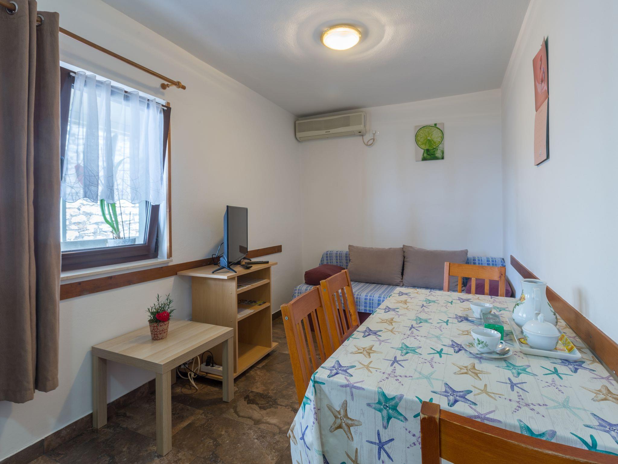 Ferienwohnung bietet Platz für 3 Gäste. Die Betten sind in Schlafzimmern, die es 1 gibt, innerhalb einer Gesamtfläche von 31m2, angeordnet. Die Gäste haben eine eigene Terrasse zur Verfügung, auf der sie in warmen Sommernächten genießen können. Das Apartment bietet Meerblick. Es ist erlaubt, Speisen auf dem Gemeinschafts-Grill vorzubereiten. In der Unterkunftseinheit besteht die Möglichkeit des Mitbringens von Haustieren, und die Dienstleistung ist im Preis der Unterkunft enthalten. IM PREIS INBEGRIFFEN: Kurtaxe, Endreinigung, Klimatisierung, Zentralheizung, Parkplatz, Internet, Haustiere, Kinderbett, Bügeleisen, Föhn, tragbarer Grill. VERBINDLICHE ZUSÄTZLICHE KOSTEN: Aufzahlung für Kurzaufenthalte (prozentualer Zuschlag pro Nächtigungsanzahl: 30% - 1, 20% - 2, 10% - 3). Die Verfügbarkeit zusätzlicher Dienstleistungen in Ihrem reservierten Termin und die Preise derselben (falls nicht aufgeführt) müssen im Voraus überprüft werden. Zusätzliche Dienstleistungen die in der Zahlungsaufforderung nicht aufgeführt sind werden direkt beim Vermieter bezahlt, angenommen der Gast nutzt auch diese. Ermäßigung auf den Grundpreis: Gratistag 14=13 (bei einem Aufenthalt von 14 Tagen oder mehr erhalten Sie einen Gratistag für den Aufenthalt bis 31.12.26).