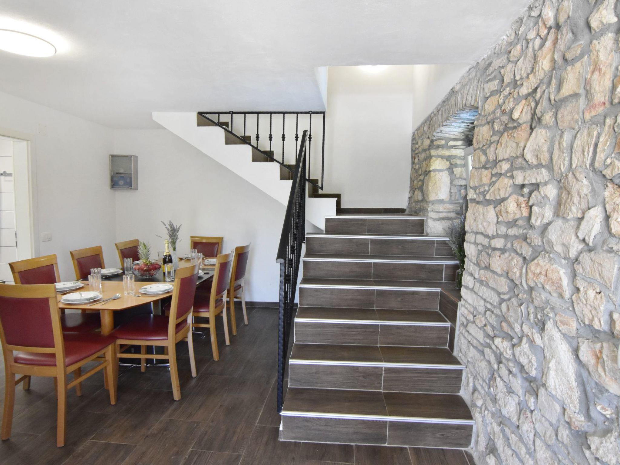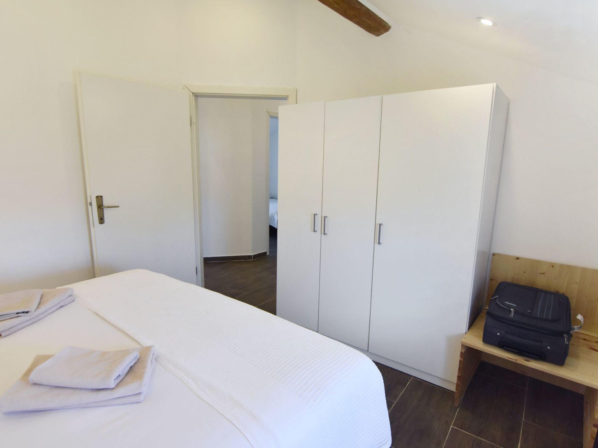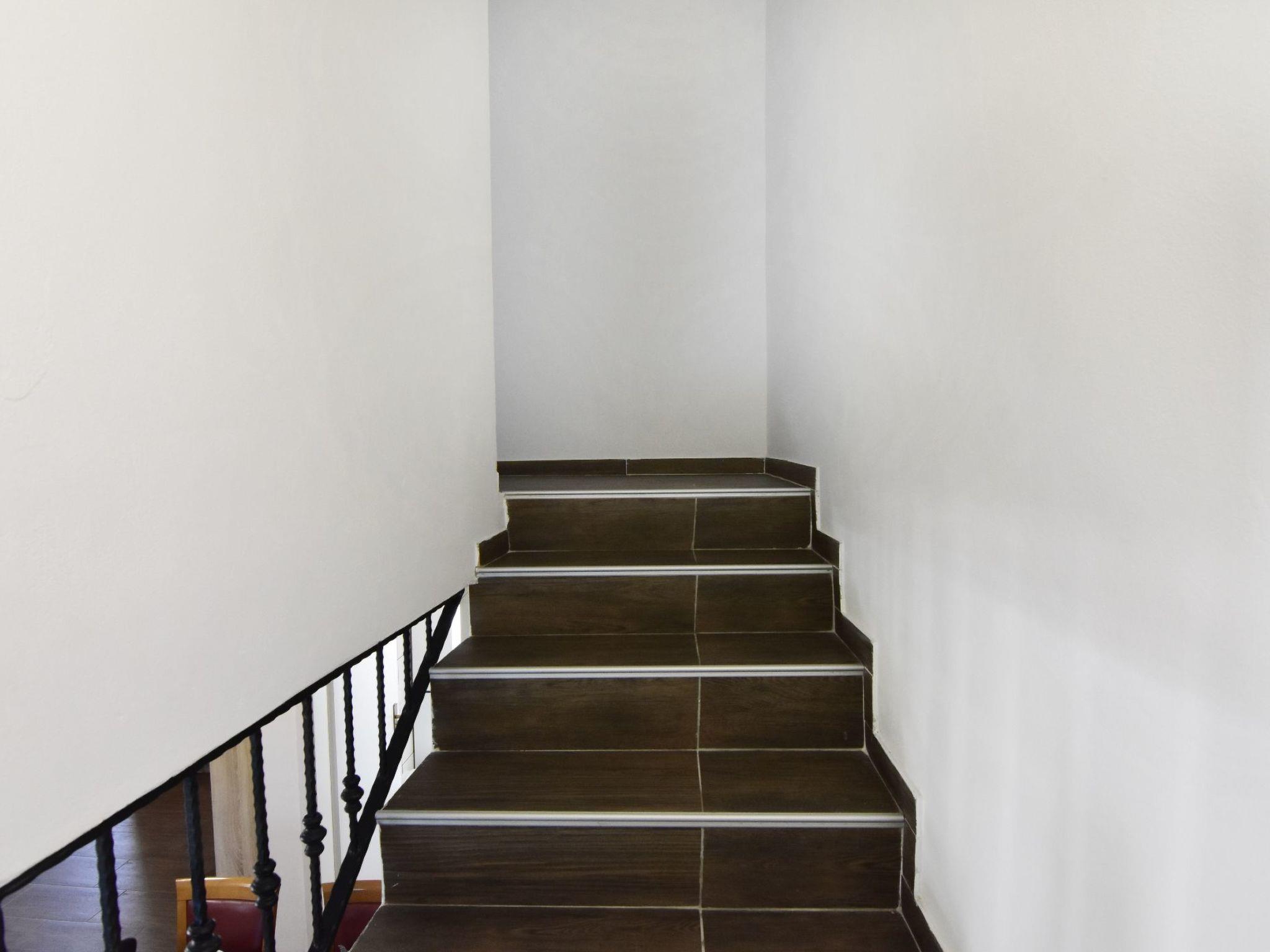 Next to the internal stairs there is a dining table with chairs, which creates a welcoming place for shared meals and spending time in company, next to it there is also the first bathroom equipped with shower, sink, toilet and washing machine. If you go up the stairs, you will reach the upper floor where there are three bedrooms, each with a comfortable double bed and a spacious wardrobe. There is also a bathroom with shower, sink and toilet.