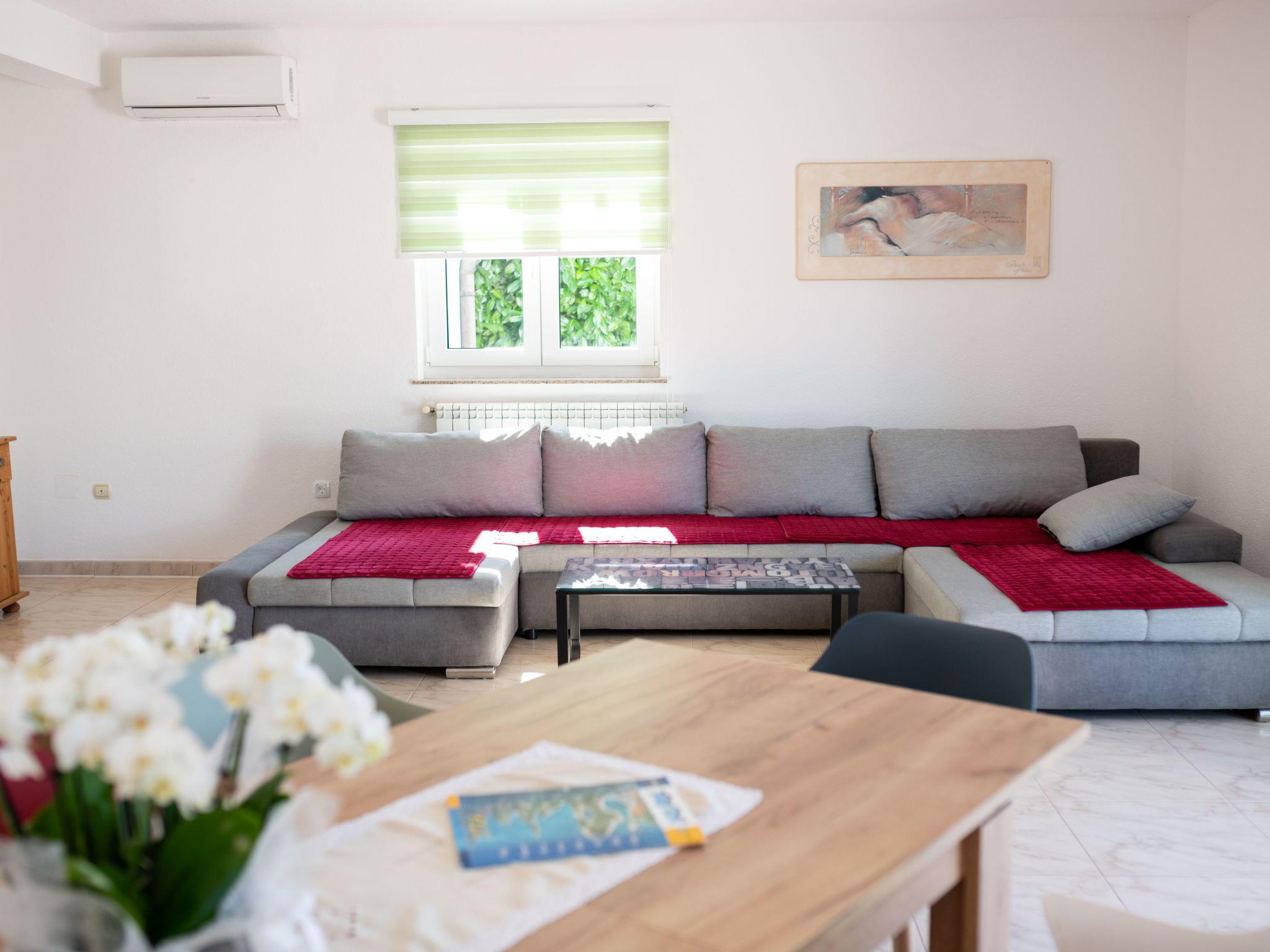 Inside, Villa Tara boasts a spacious interior with air-conditioning available throughout the property for your comfort during those warm Istrian days. The house comes equipped with 4 cozy bedrooms, ensuring a restful night's sleep for all guests. The 2 bathrooms, including a bath tub, cater to your preparation and relaxation needs. For your entertainment and convenience, a flat-screen TV is provided along with a washing machine for sole use. The kitchen is fully equipped, featuring a dishwasher, coffee machine, and an electric kettle, making meal preparation a breeze.