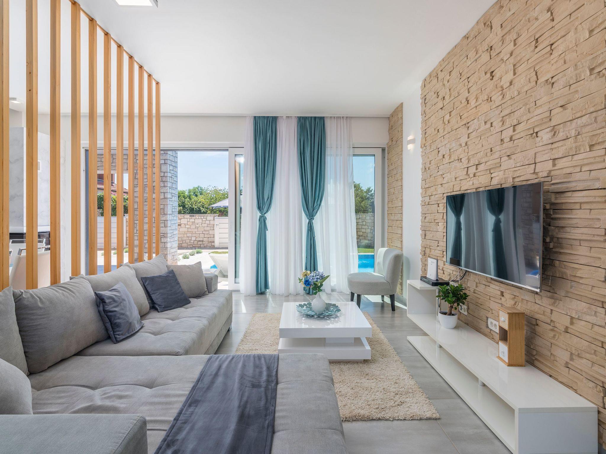 Staying in a modern luxury resort in the midst of a beautiful and peaceful Istrian landscape near the sea, dominated by vineyards and olive groves, is the guarantee of a holiday worth investing in. The villa itself imposes a modern appearance inside and out, and from every detail the enviable dose of luxury exudes. The combination of traditional and modern materials (stone, wood and glass) makes for the necessary warm and intimate atmosphere, and details such as the fireplace and summer kitchen with pool only add to the impression. The villa has a large, bright living room thanks to its large windows, two bedrooms, each with a television, and three bathrooms. All the rooms have air conditioning and underfloor heating that will ensure a pleasant stay whatever the weather, and it should be noted that there is a WI-FI signal and video surveillance in the property for added security.