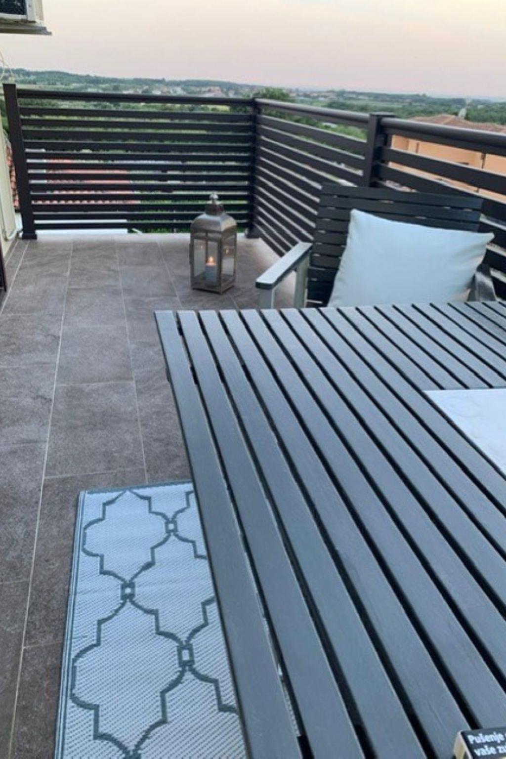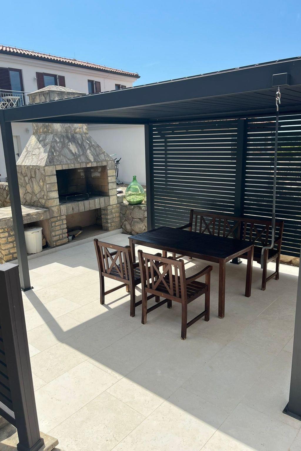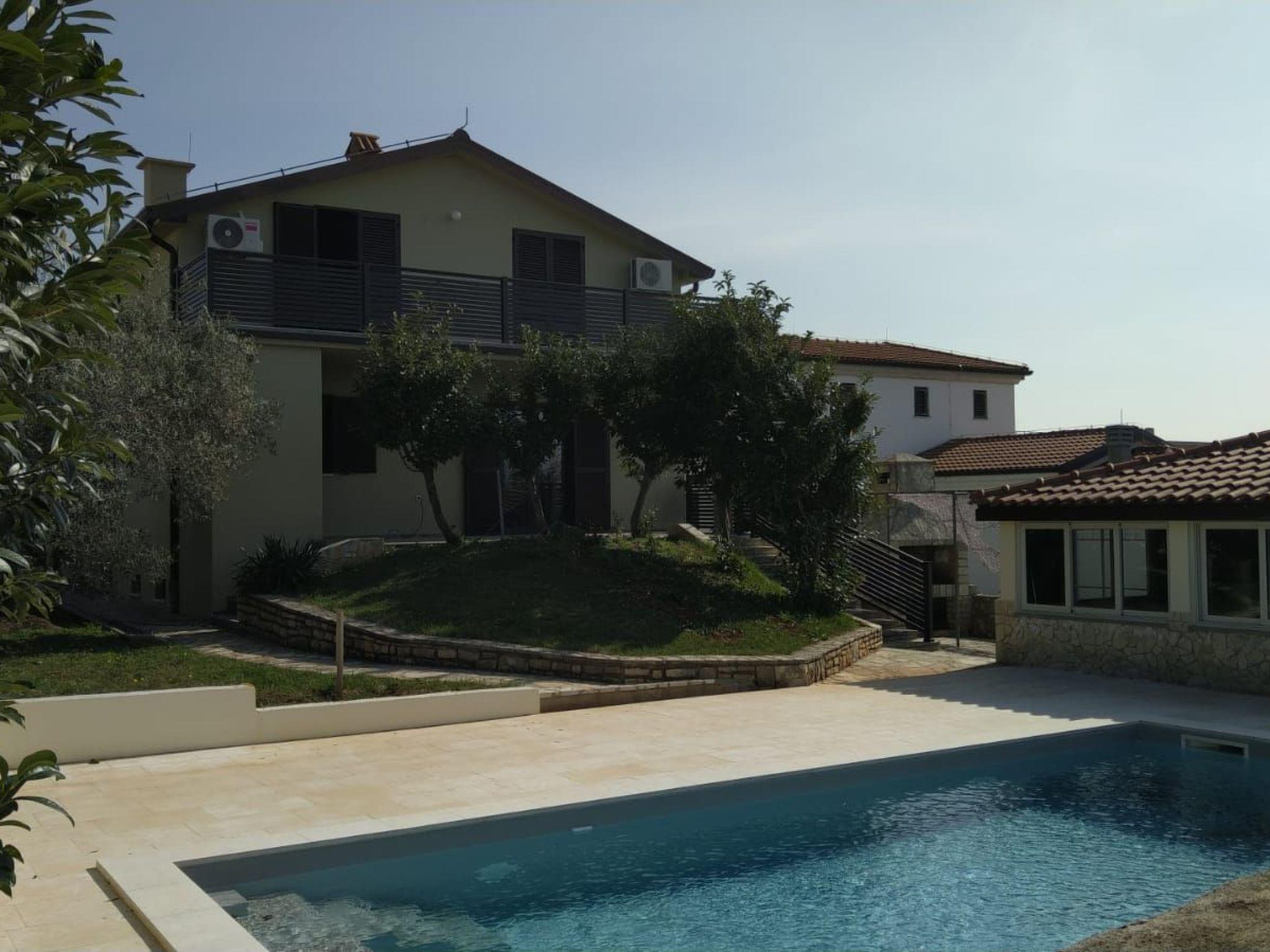 On the large terrace (which is accessible from the ground floor) you can sunbathe and sip a drink on the two garden loungers and two small tables. The upper floor also has a slightly smaller terrace with a wooden table and two chairs. This terrace is accessible from the living area and a bedroom. For cosy hours there is a barbecue with garden furniture in the garden, the associated fully equipped summer kitchen which is equipped with electric cooker, oven and dishwasher can be used. If it rains, you don't have to do without the barbecue, because you can sit together in the summer kitchen, which is furnished with beautiful rattan furniture. The property is completely fenced, from the street you can drive to the 3 parking spaces which are right in front of the main entrance. There is also a closed garage. As there is very little traffic on the road, the house is also ideal for children and dogs. The property is not suitable for wheelchair users as there are steps on one side of the house and from the terrace to the garden seating area. If required, a travel cot, cot, high chair or paddling pool can be set up for younger guests. The distance to the beach of the Stella Maris holiday complex is approx. 5 km and to the sandy beach of Zambratija 7 km. The latter is easily accessible by car. The car can be parked approx. 200 m from the beach. Various paved or stony paths lead there. For smaller errands you will find a small corner shop in Petrovija, which is 2 km away from Vilanija. There are various supermarkets and restaurants in the centre of Umag and in the surrounding area. Vilanija is a small suburb about 4 kilometres from Umag.