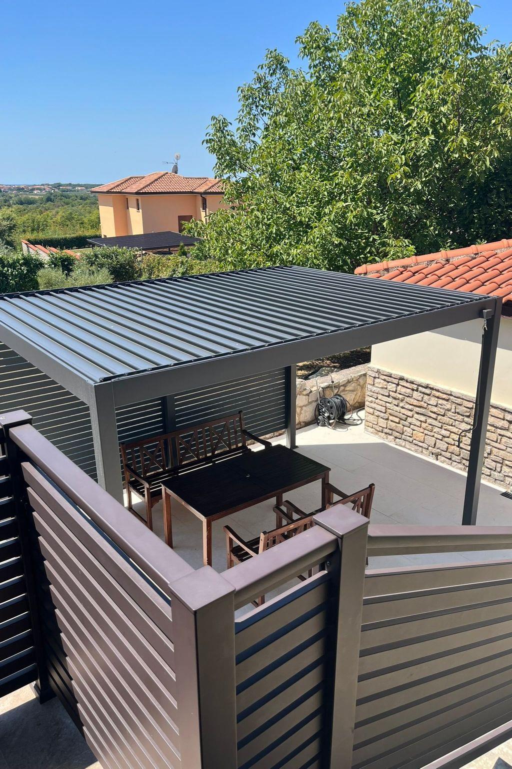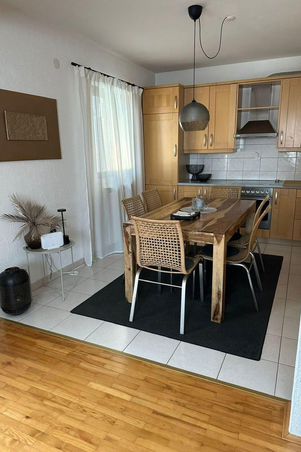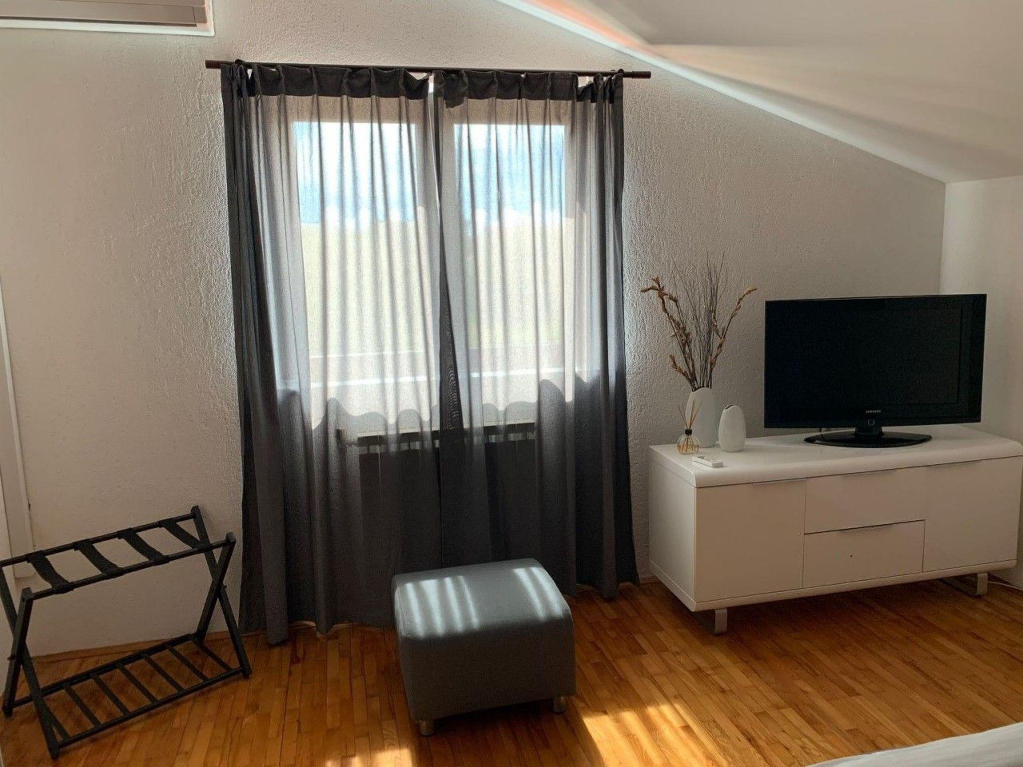 On the large terrace (which is accessible from the ground floor) you can sunbathe and sip a drink on the two garden loungers and two small tables. The upper floor also has a slightly smaller terrace with a wooden table and two chairs. This terrace is accessible from the living area and a bedroom. For cosy hours there is a barbecue with garden furniture in the garden, the associated fully equipped summer kitchen which is equipped with electric cooker, oven and dishwasher can be used. If it rains, you don't have to do without the barbecue, because you can sit together in the summer kitchen, which is furnished with beautiful rattan furniture. The property is completely fenced, from the street you can drive to the 3 parking spaces which are right in front of the main entrance. There is also a closed garage. As there is very little traffic on the road, the house is also ideal for children and dogs. The property is not suitable for wheelchair users as there are steps on one side of the house and from the terrace to the garden seating area. If required, a travel cot, cot, high chair or paddling pool can be set up for younger guests. The distance to the beach of the Stella Maris holiday complex is approx. 5 km and to the sandy beach of Zambratija 7 km. The latter is easily accessible by car. The car can be parked approx. 200 m from the beach. Various paved or stony paths lead there. For smaller errands you will find a small corner shop in Petrovija, which is 2 km away from Vilanija. There are various supermarkets and restaurants in the centre of Umag and in the surrounding area. Vilanija is a small suburb about 4 kilometres from Umag.