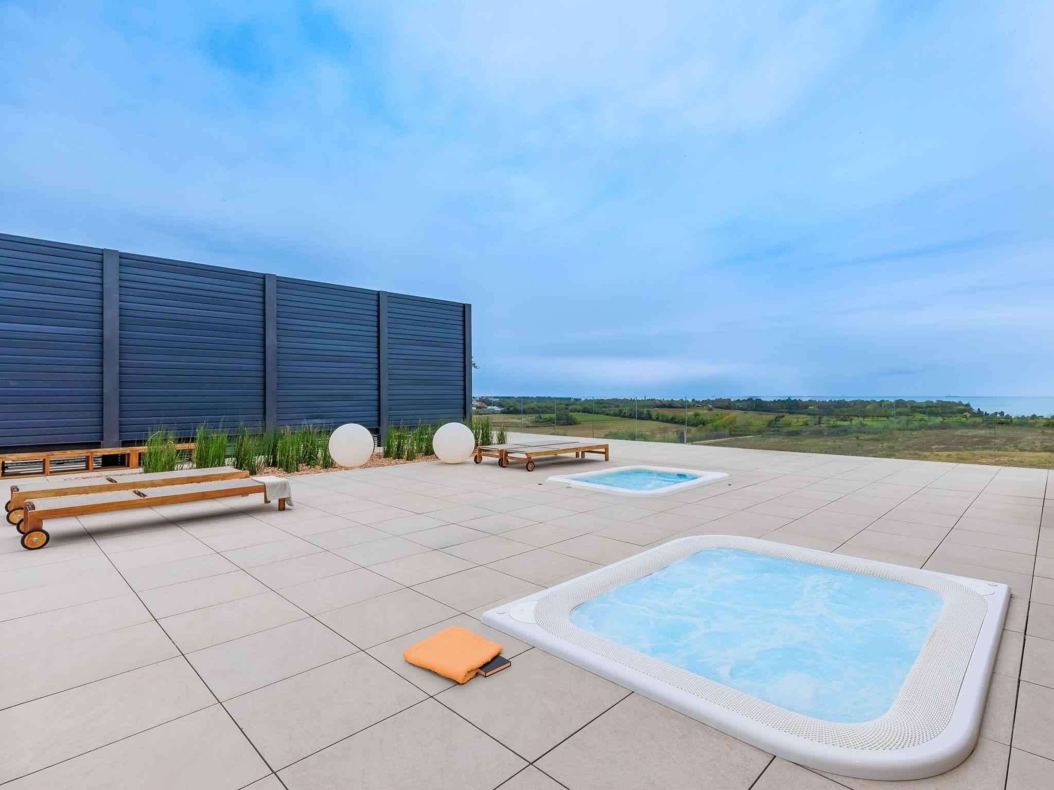 Semi-detached house "Semi-detached Villas Crveni vrh", built in 2023. 1.5 km from the centre of Savudrija, 10 km from the centre of Umag, in a quiet position on a slope, residential area (villas), 500 m from the sea. For shared use: property with lawn, 2 swimming pools, indoor pool (105 m diameter, depth 50 - 140 cm, seasonal availability: 01.Jan. - 31.Dec.) with internal staircase. Unconventional pool shape. Shower/WC in the pool area, children's pool, tennis (extra), children's playground. Private: property (fenced). In the complex: reception, restaurant, bar, bistro, internet access, sauna, fitness room, massage (extra). Hot tub, relaxation room, spa area, playroom, shopping facilities, lift, sun terrace. Parking at the house on the premises. Shop 1 km, supermarket 10 km, bus stop 8 km, railway station 33 km, sandy beach 5 km pebble beach 2 km, rocky beach 500 m. Golf course (18 hole) 2 km, tennis 500 m, walking paths from the house 100 m. Please note: 24hr guard. The photograph shows a typical example. Neighbourhood highly sensitive to noise. Quietness and good behaviour expected.