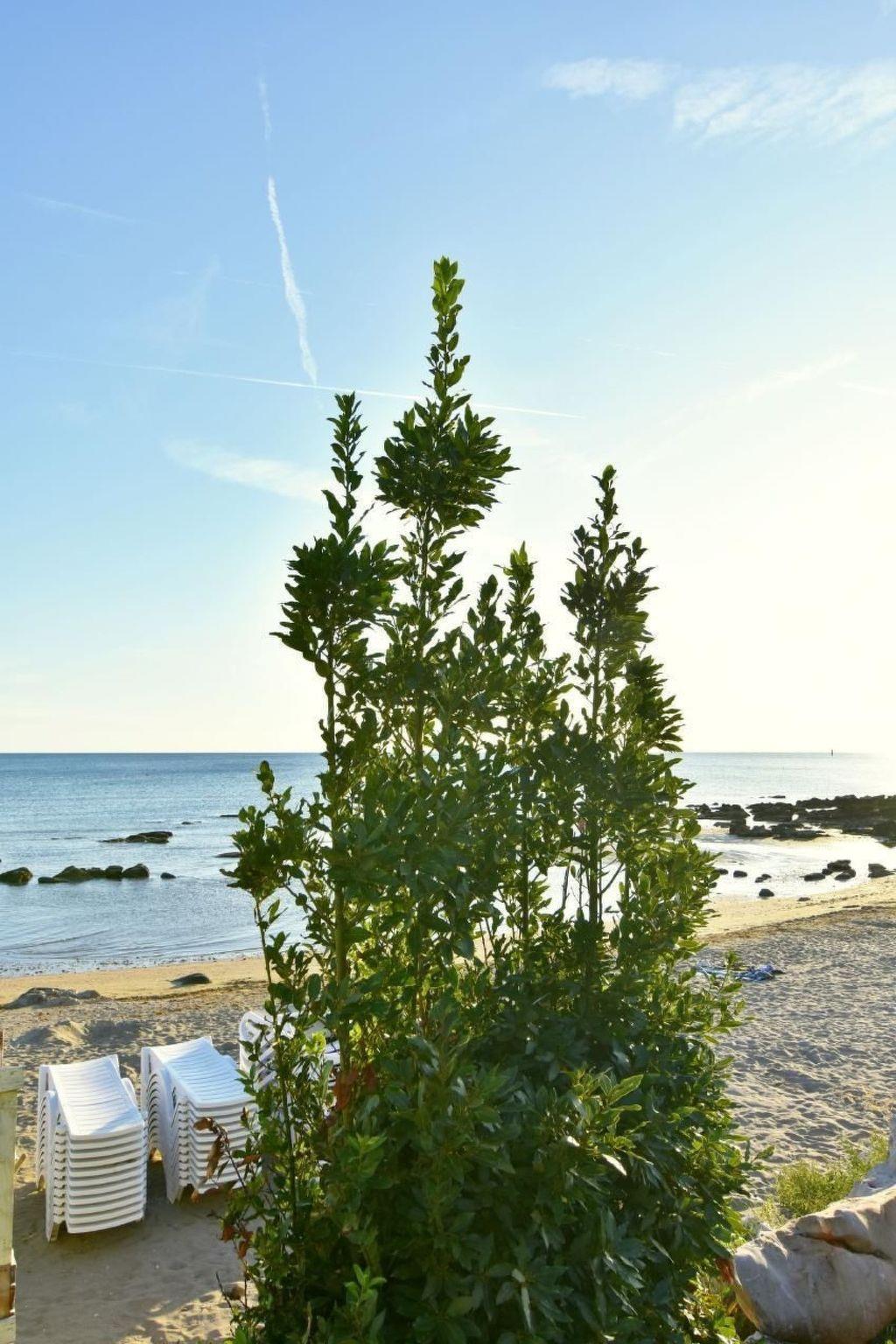 The outside area of the flat is characterised by a covered balcony with an enchanting view of the park and partial sea view. Here guests can enjoy a fragrant morning coffee or a glass of wine at sunset while taking in the tranquil surroundings and gentle sea breeze.