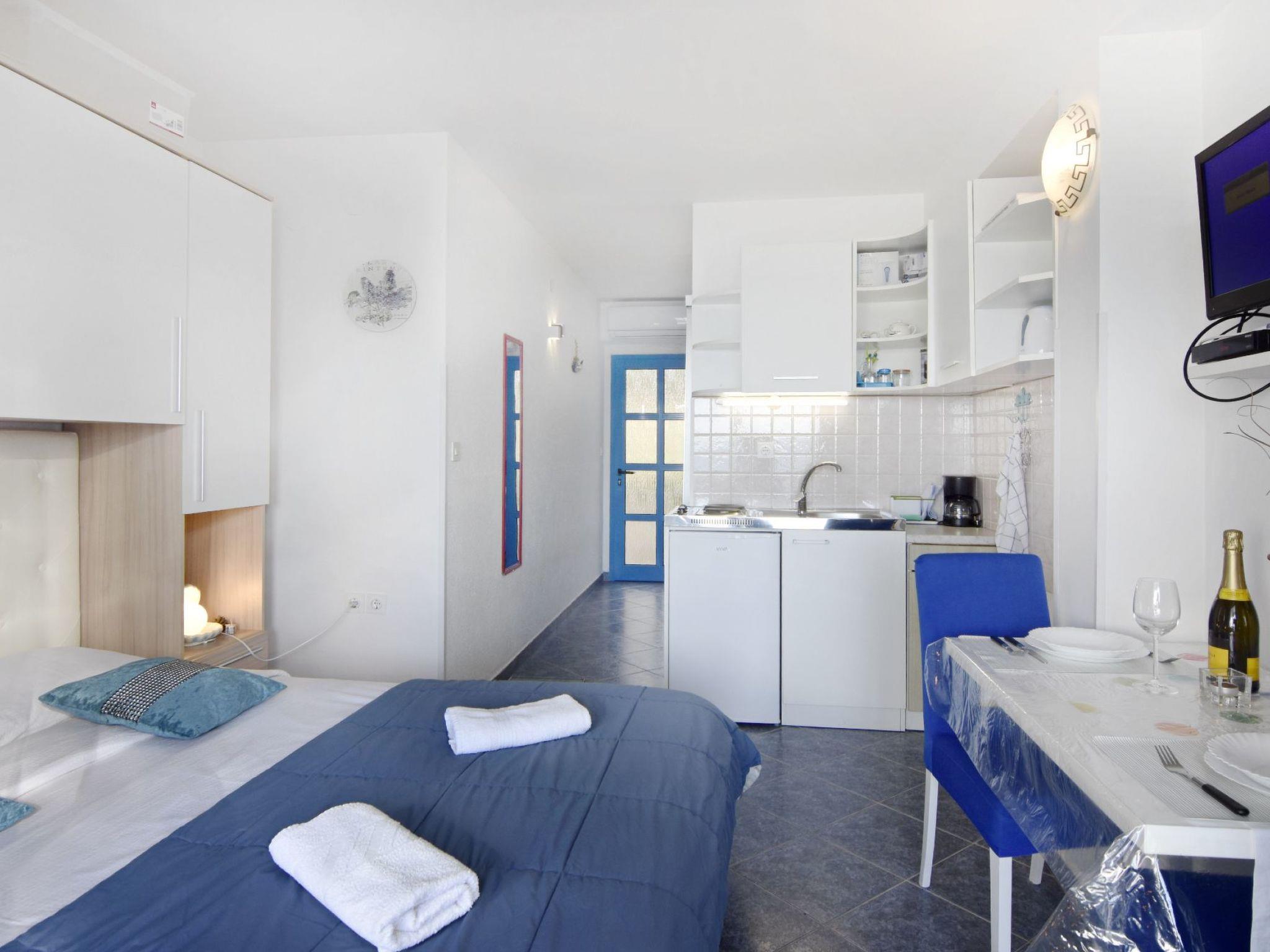 The interior of our studio is functional and lovingly designed to offer you maximum comfort. At the heart of the flat is a room equipped with a kitchenette, a comfortable double bed and a dining area for two people. The modern bathroom with shower, air conditioning, free internet access and satellite TV complete the facilities and make your stay as pleasant as possible.