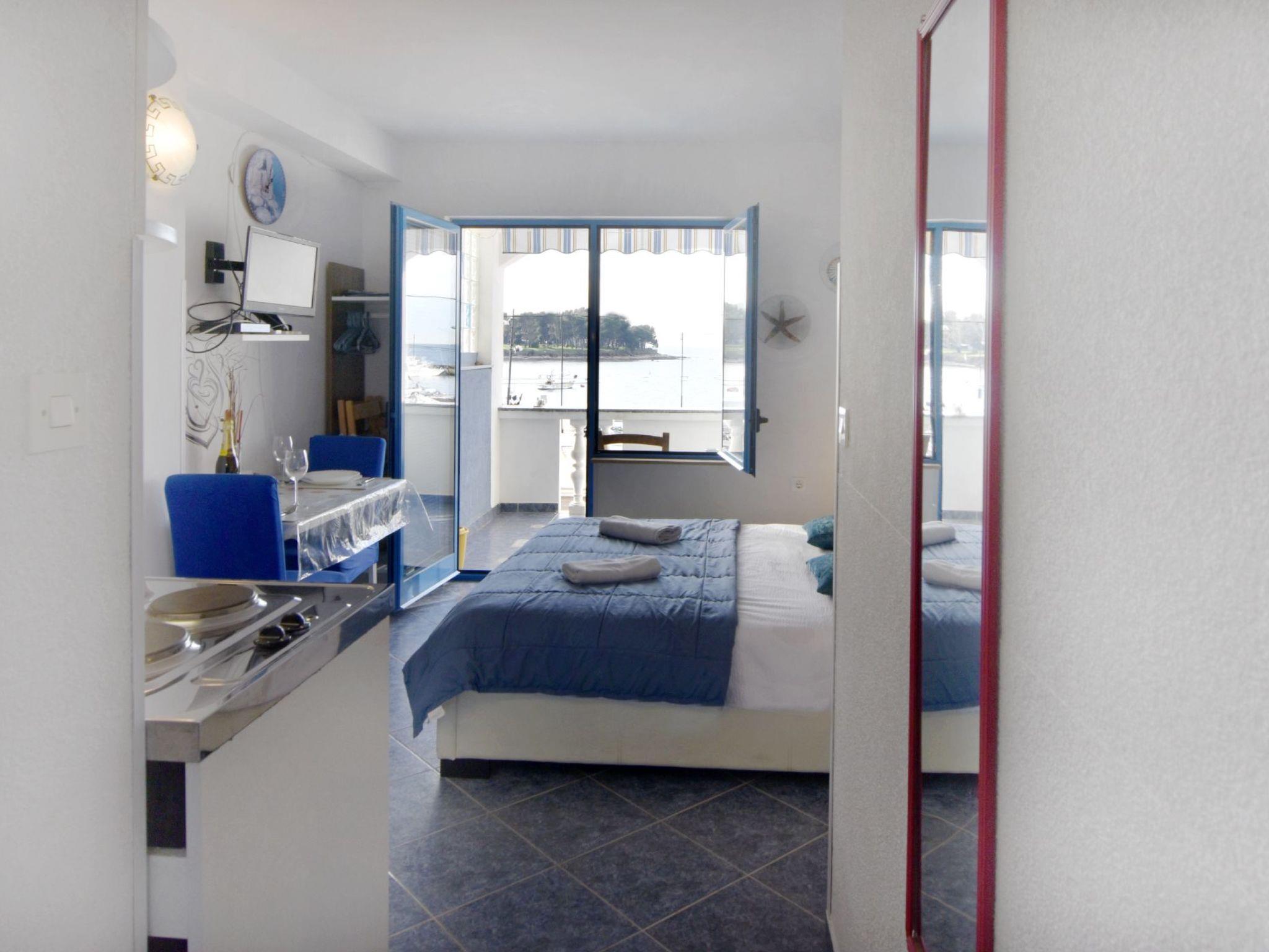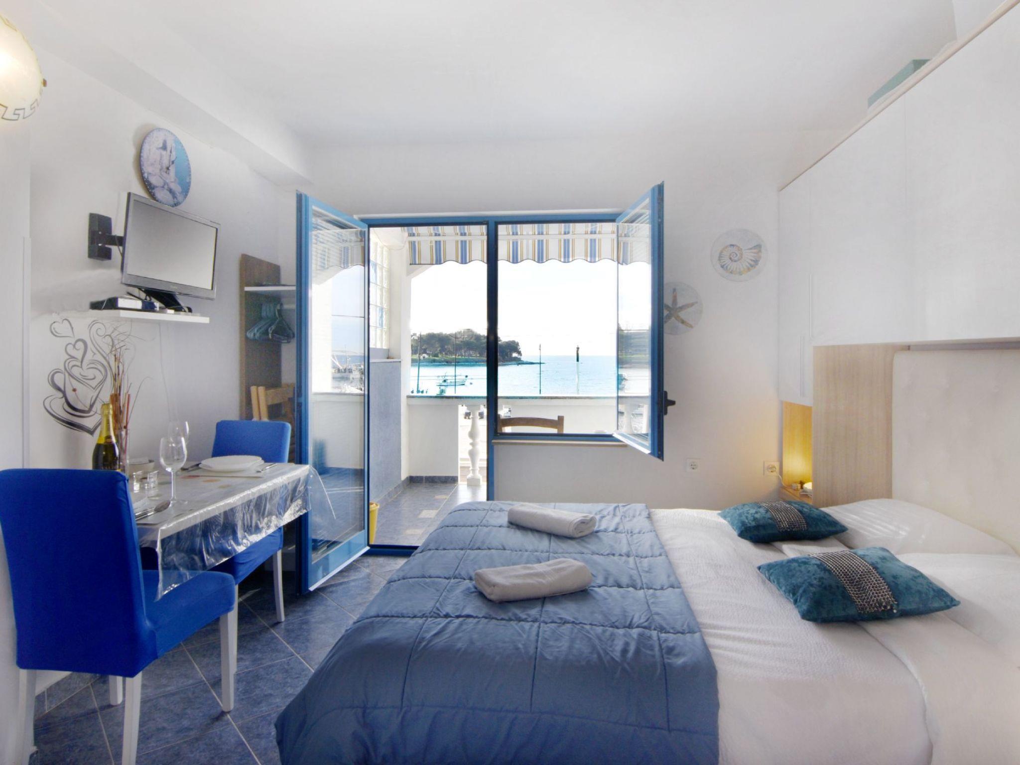Discover our charming studio flat, your personal gem for a romantic holiday for two. Situated in the picturesque harbour of Savudrija, where the boats of the local fishermen gently rock on the glittering sea, our flat with balcony and impressive sea view offers the ideal setting for unforgettable sunsets. Escape the chaos of everyday life and enjoy the bright and relaxing atmosphere that our little nest has to offer.