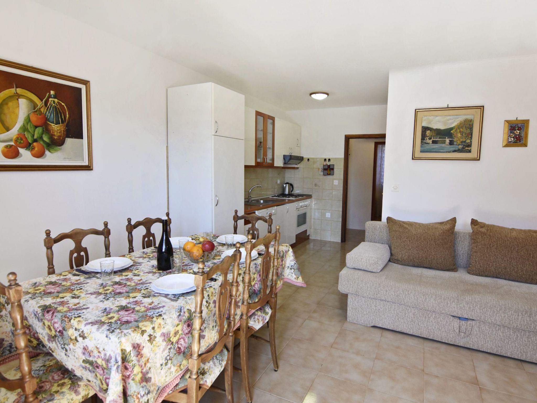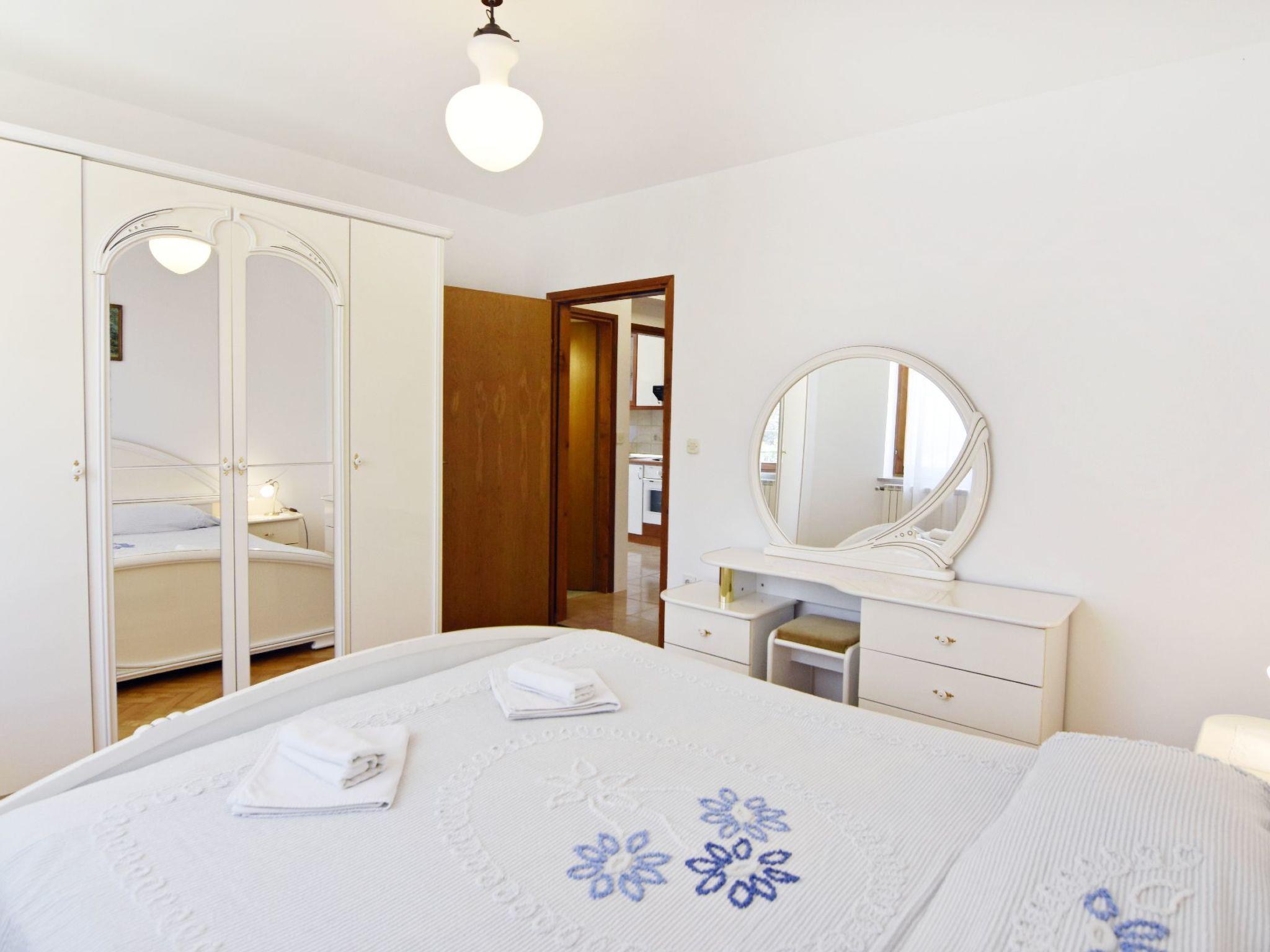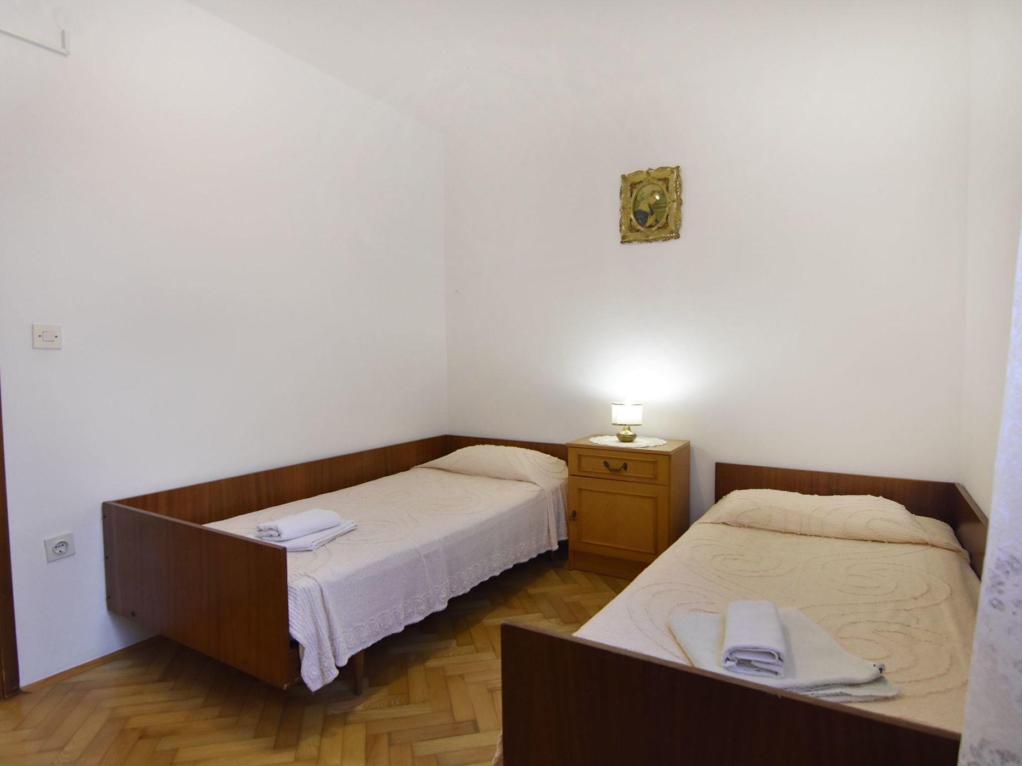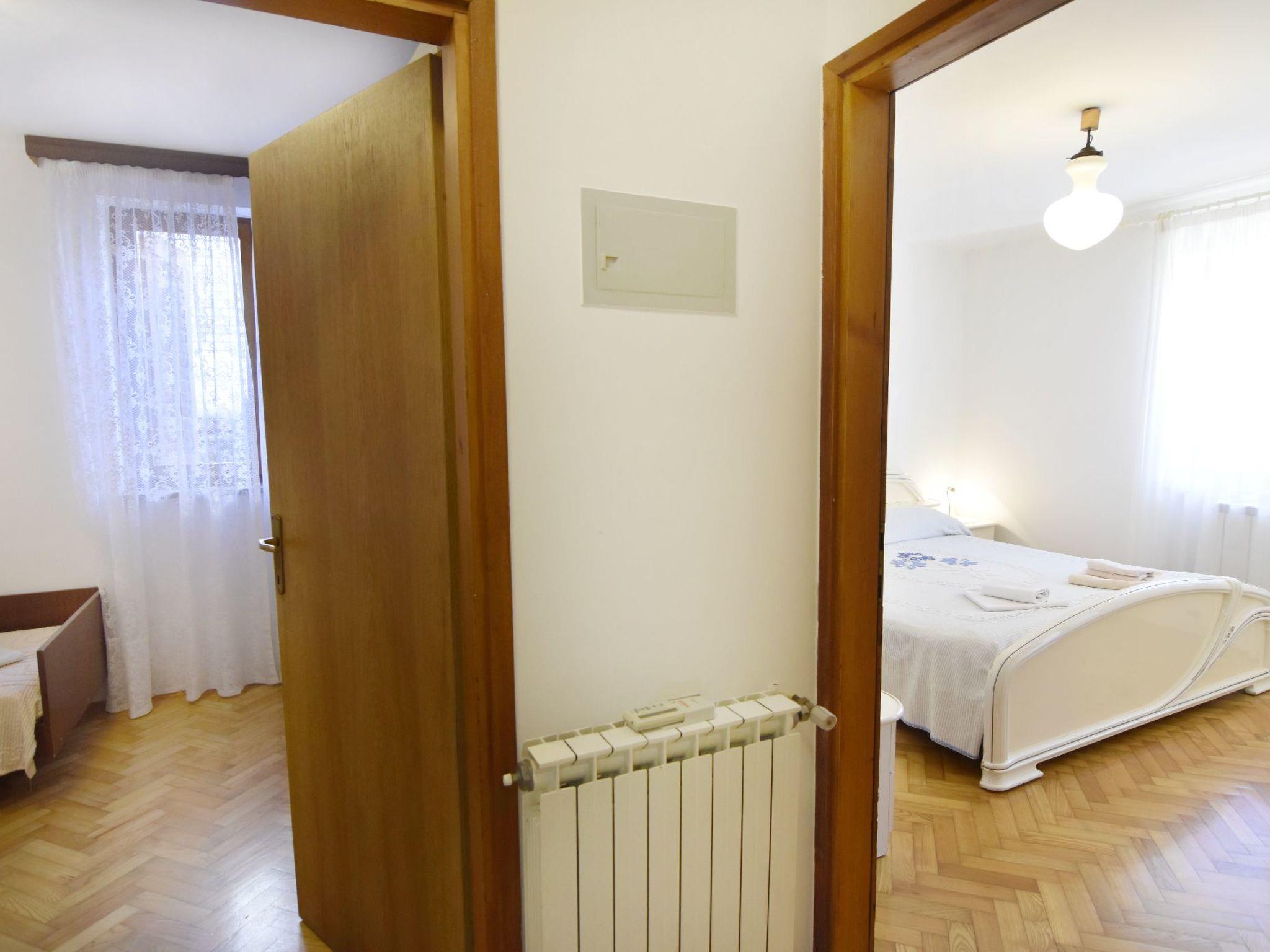 The apartment has a bedroom with a double bed 160x200, two bedside tables with night lamps, cabinet with mirror, wardrobe, the second bedroom with two single beds 80x200, wardrobe, bedside table with lamp, bed linen is provided (changed weekly) , the bathroom with bathtub, bidet, washing machine, sink with cabinet and mirror, two bath towels per person are provided (changed weekly). The living area with equipped kitchenette, refrigerator with freezer area, coffee machine, kettle, dishwasher, oven, stove with three gas burners and an electric hob, extractor hood, kitchen utensils. The dining corner with dining table and 5 chairs, the living corner with sofa bed, kitchen cabinet, flat-screen satellite TV, free Wi-fi internet connection, air conditioner, exit to the terrace. The terrace furnished with table and chairs, portable barbecue for shared use available. Free private parking near the house.