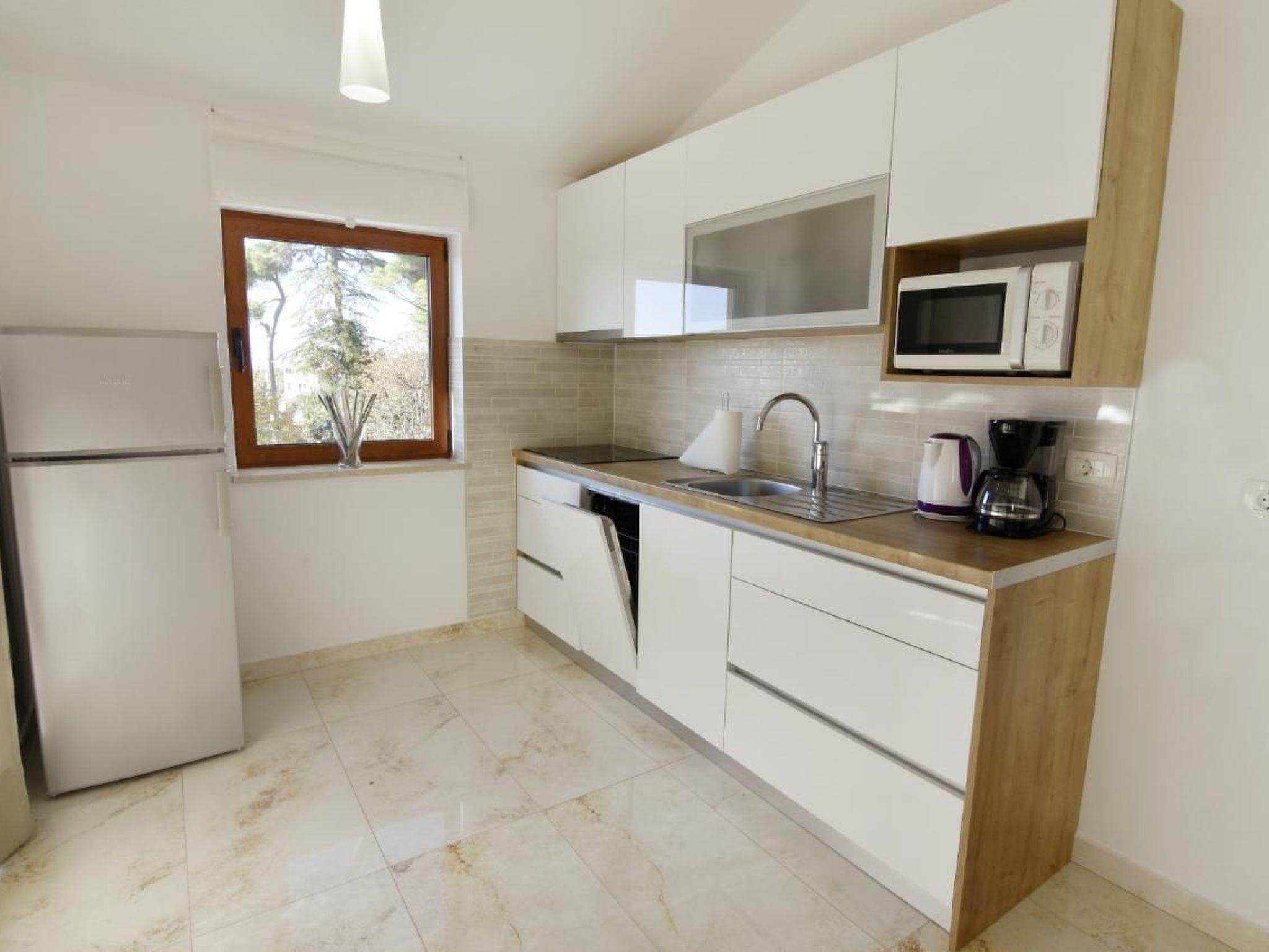 The newly built flat (50 m²) (2017), furnished with care and love in a modern style, offers everything you need for a holiday in complete comfort. The flat is located in a holiday home with 6 similar flats for rent. The house is located in a quiet location in the village of Volparia, which is part of the Salvore-Umag area. The area has been known to tourists for centuries for its healing air, thanks to the pine forests of the area, nature and tranquillity. The pride of the area is the oldest lighthouse in the Adriatic, the Savudrija Lighthouse, built in 1818. The beach is about 900 metres away and can be easily reached on foot in 10 minutes. Excellent accommodation with everything you need to spend an unforgettable holiday. Children welcome.The flat is located on the second floor of the house and has a bedroom with double bed (160x200), wardrobe, safe, a bedroom with bunk bed (2x 80x200), wardrobe, in the living room the sofa bed (150x200), bed linen provided (weekly change), flat screen satellite TV, coffee table, bathroom with shower, sink, washing machine, hairdryer, Towels provided two per person for the bathroom (weekly change), eat-in kitchen with dishwasher, microwave, 4 electric ceramic hobs, fridge freezer, kettle, coffee maker, dining table and chairs, free wifi, air conditioning, from the kitchen you go out onto the balcony (7 m 2) which is furnished with table and chairs and offers a magnificent view over the countryside. Ideal for enjoying coffee in the morning and admiring the surrounding nature, the house offers for common use: the fenced garden and car park, the outdoor pool and the outdoor shower (7x3 m rectangular 24 sqm, depth 140 cm with stairs (from 30/03. The nearby beaches are of different types, sandy, pebbly, cemented, rocky, for all tastes. The area is one of the few where the coast changes its shape and type every few hundred metres and is rich in vegetation near the sea, where you can shelter from the sun during the hottest hours.nearby for golf lovers the Adriatic Golf Club with 18 holes, the restaurant and petrol station only 200m. The nearest supermarket is 1000 metres away in the village of Bašanija. The location is ideal for a quiet stay, relaxing walks along the coast, cycling, water sports, horse riding, for golf lovers (the fields are nearby), tennis courts 1.5 km away, for life At night, just head to Bassania in the Bora Bora Bar, which is located by the sea near the famous Savudrija lighthouse. Possibility of interesting organised excursions or go on your own to explore the small medieval villages of the hinterland, interesting the village of artists Grožnjan, Livade known for the black and white truffle, Motovun for the film festival that takes place between the end of July and the beginning of August fun boat trips, the water park Istralandia only 27 km away and much more.* Registration per person only on the first day, to be paid on site upon arrival.* Guests are asked to use the equipment with caution.* Any damage caused will be charged on site.