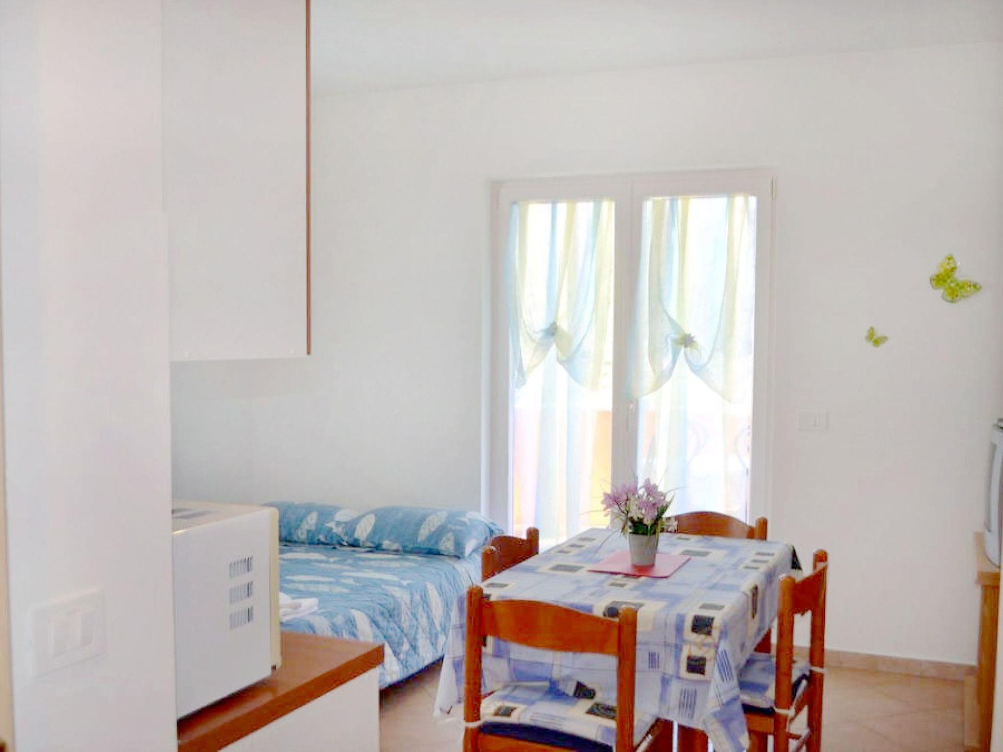 The flat on the first floor enchants with its bright, air-conditioned atmosphere and lovingly decorated interior. The bedroom, furnished with a cosy double bed and the finest bed linen, is an invitation to dream. The living area boasts a well-equipped kitchen (kettle, coffee machine, microwave, cooker), a comfortable sofa bed for additional guests, a flat-screen satellite TV and free WiFi. A highlight is the balcony with table and chairs, which offers a view of the sea in the distance. The bathroom, equipped with a shower, WC and hairdryer, adds to the comfort, with two bath towels provided for each guest.