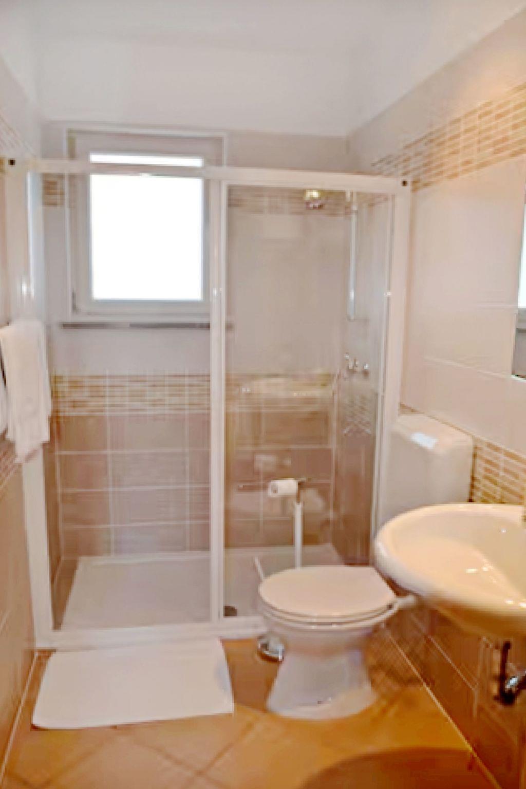 The bright, air-conditioned flat on the ground floor is lovingly furnished and offers a bedroom with a comfortable double bed (including weekly linen change) and a practical wardrobe. The fully equipped eat-in kitchen has all the necessary appliances, a sofa bed for two additional guests and a flat-screen satellite TV. Free Wi-Fi and access to the balcony with a view of the green garden round off the offer and ensure a cosy living ambience.