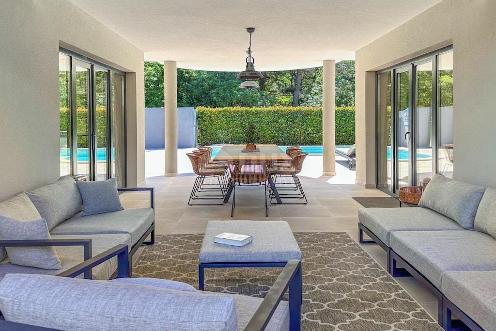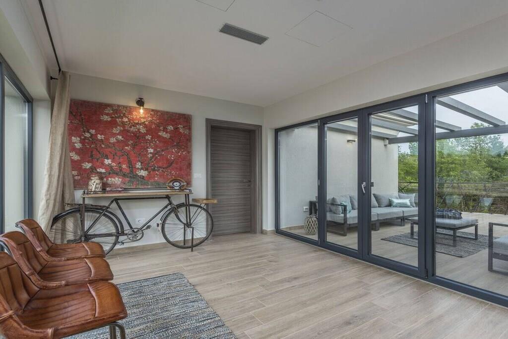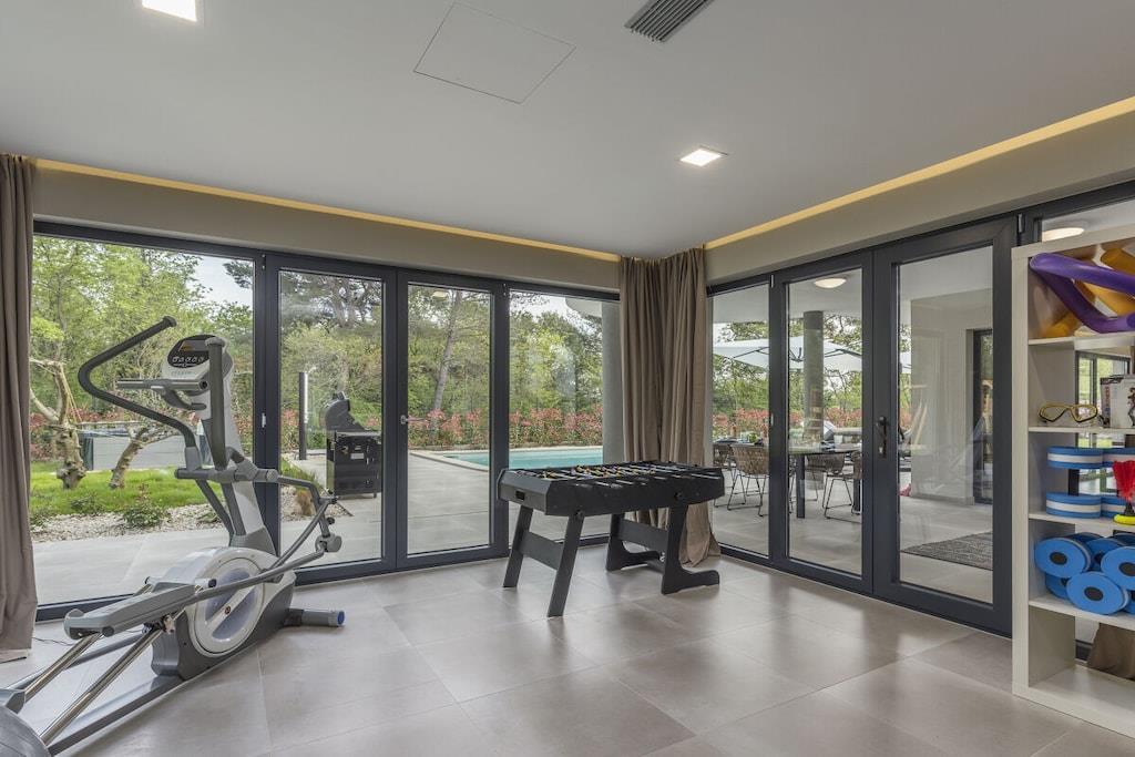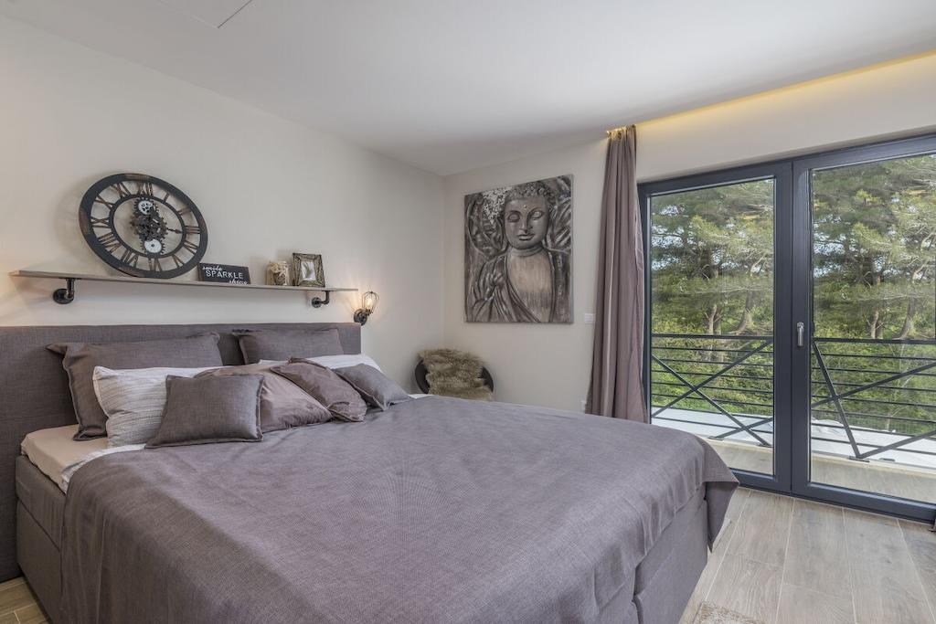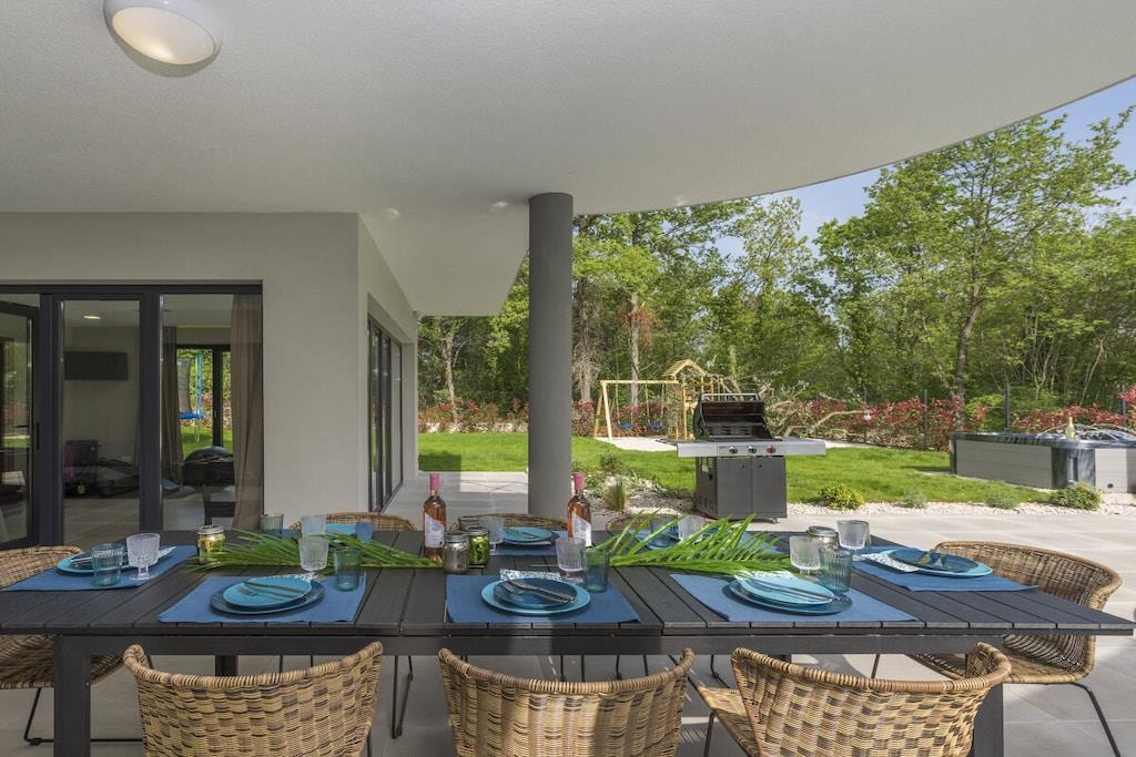 Belegung für 8 Gäste ( Babies / Kinder bis 2Jahre können als +2 dazu) 4 klimatisierte Schlafzimmer mit Bad en suite /WC / Dusche / Flach-TV / Boxspringbetten / Zugang zum Balkon / Wlan Sommerküche (Gasgrill/ Plancha)mit beschatteter Essgelegenheit Deutschsprachige Spiele und Bücher im Haus. Riesen-Trampolin und Kinderspielplatz (Rutsche, Schaukel, Klettergerüst) Großer beschatteter Parkplatz geschützt durch Motortor. Umzäuntes Anwesen, uneinsehbar und sehr ruhig gelegen. Ca. 500m bis zur Santa Marina in Vabriga (Meer) , Privatstrände in der Nähe (fussläufig) und nur 2km nach Lanterna. Hunde (Anzahl auf Absprache) erlaubt.