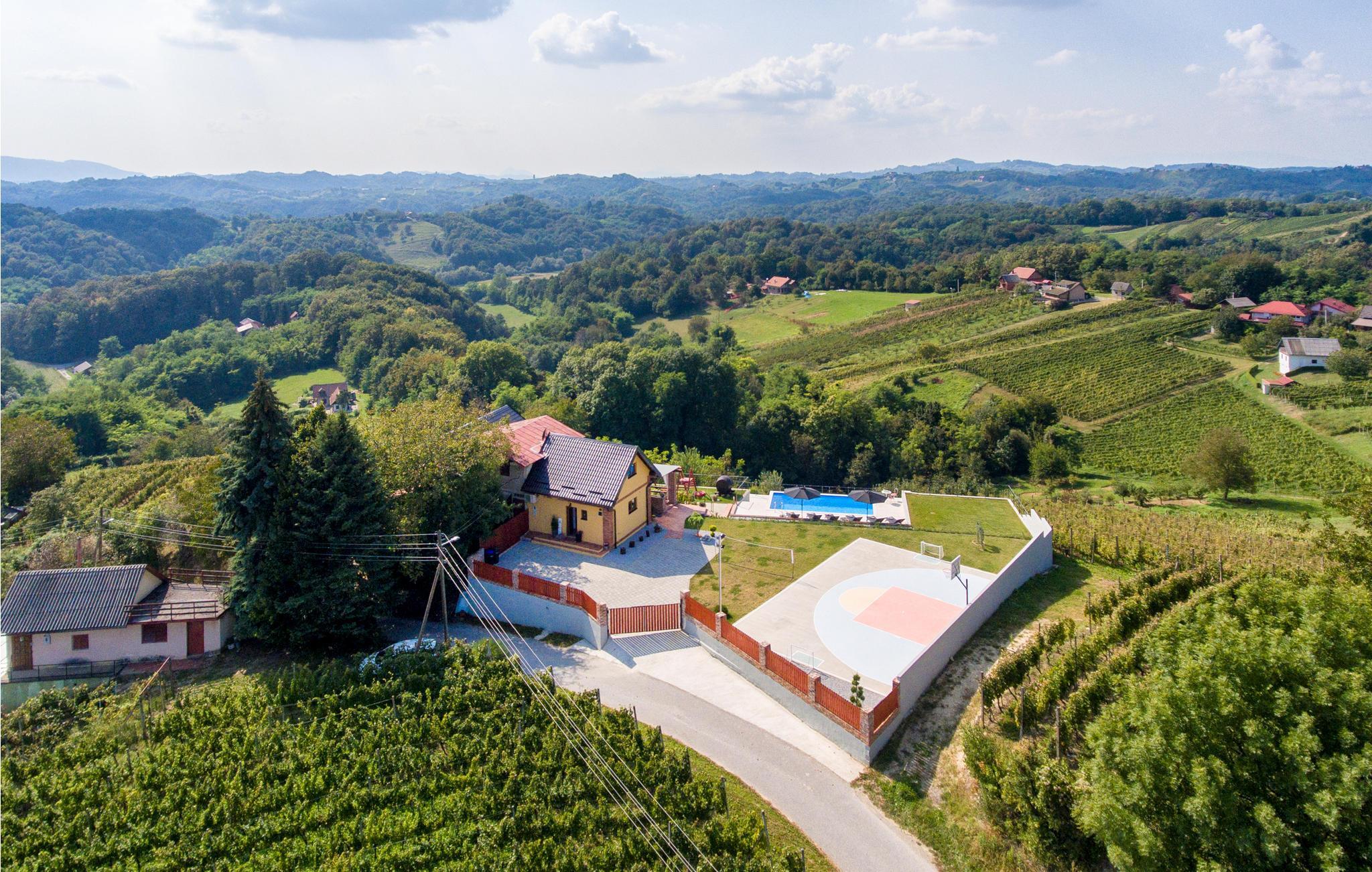Højtbeliggende på en bakkeskråning ligger dette dejlige feriehus med egen swimmingpool.