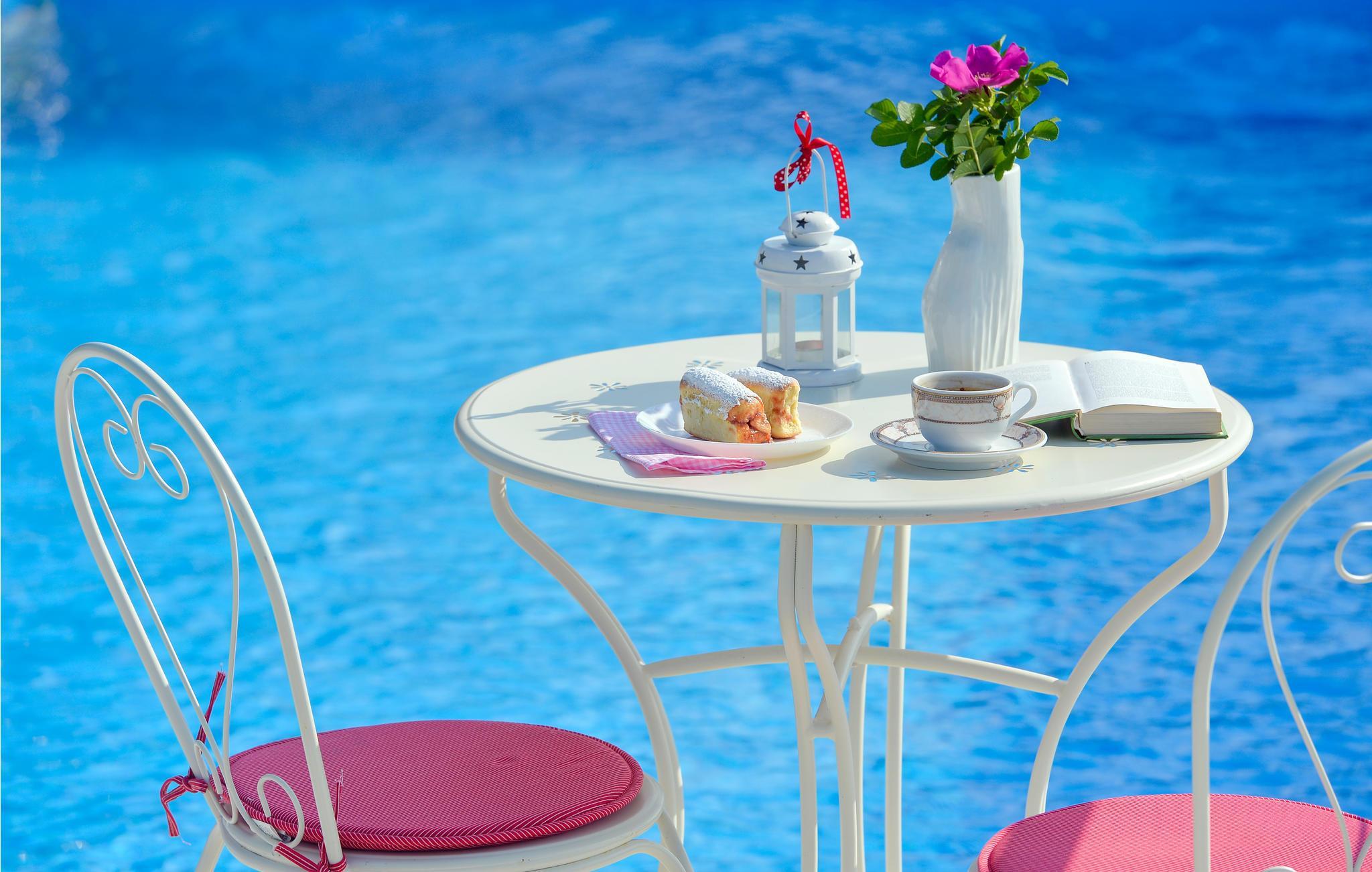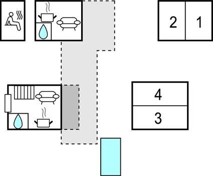 Foran huset ligger swimmingpoolen med tilhørende område med liggestole til solbadning. Terrasserne er i flere niveauer, og her findes ligeledes en multispillebane for alle aldre. Begge huse er indrettet i landhusstil, de er veludstyrede og helt perfekte til familie og venner, der ønsker at holde ferie sammen, og alligevel gerne vil have privatsfære. I begge huse findes 2 soveværelser i tagetagen, hvoraf det ene er et gennemgangsværelse.