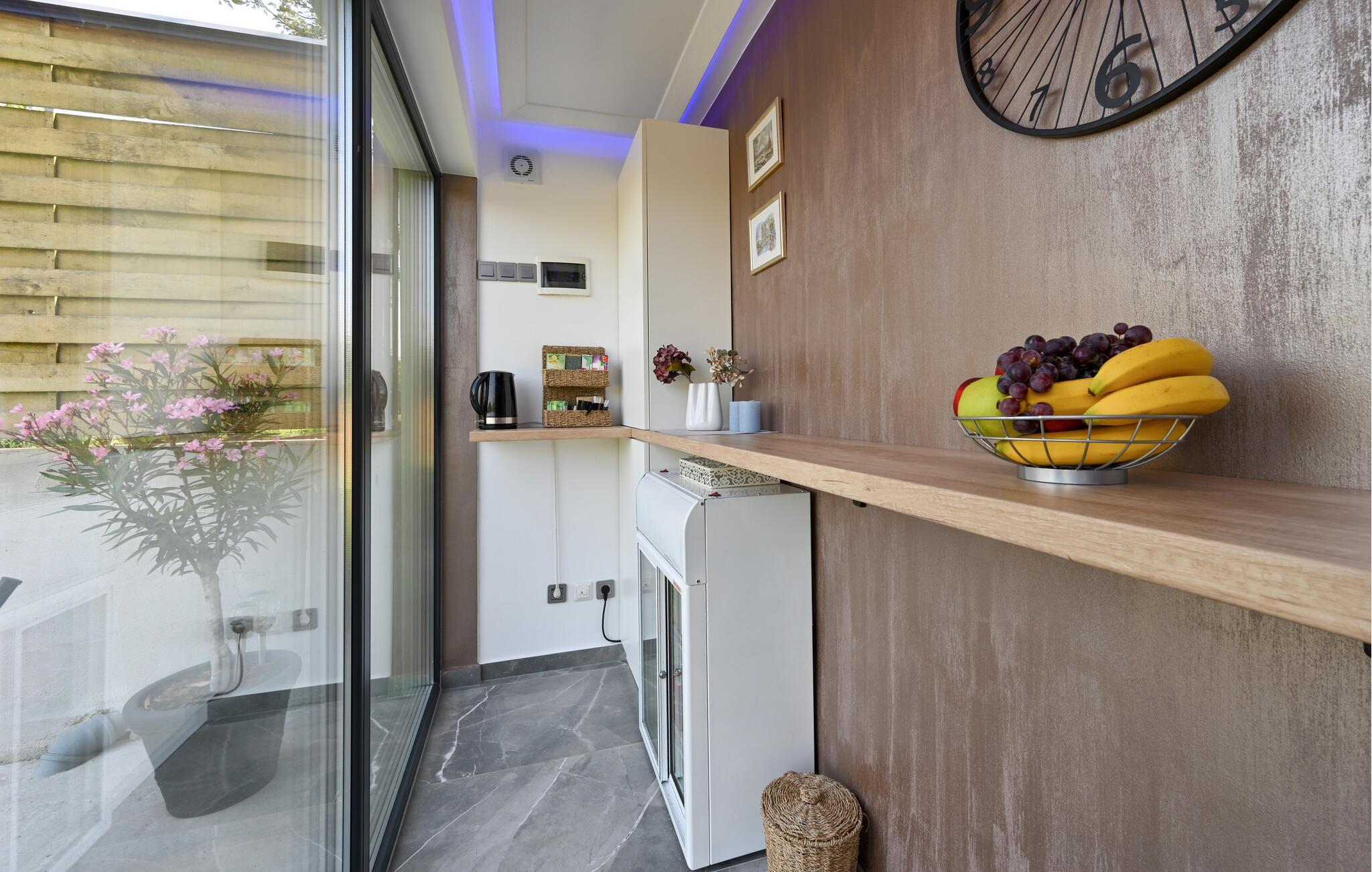 En stor del af jeres ferie kommer uden tvivl til at foregå ude ved poolen. Her kan I tilbringe timevis med at bade og sole jer. Når børnene trænger til et afbræk, kan de lege med udendørs legetøj, gynge, klatre på klatrestativ og rutsje. Hele familien kan også samles til et spil fodbold, volleyball eller badminton. Ved siden af ??huset ligger et udekøkken, hvor I kan tilberede lækre feriemåltider, som efterfølgende kan nydes i den friske luft på terrasserne. Til rendyrket ferieafslapning, hvad bedre end at sætte sig i udendørspaet til fire personer med en kølig forfriskning i hånden? Afslut en skøn feriedag med at streame en god film eller serie på Netflix i sofastuen.