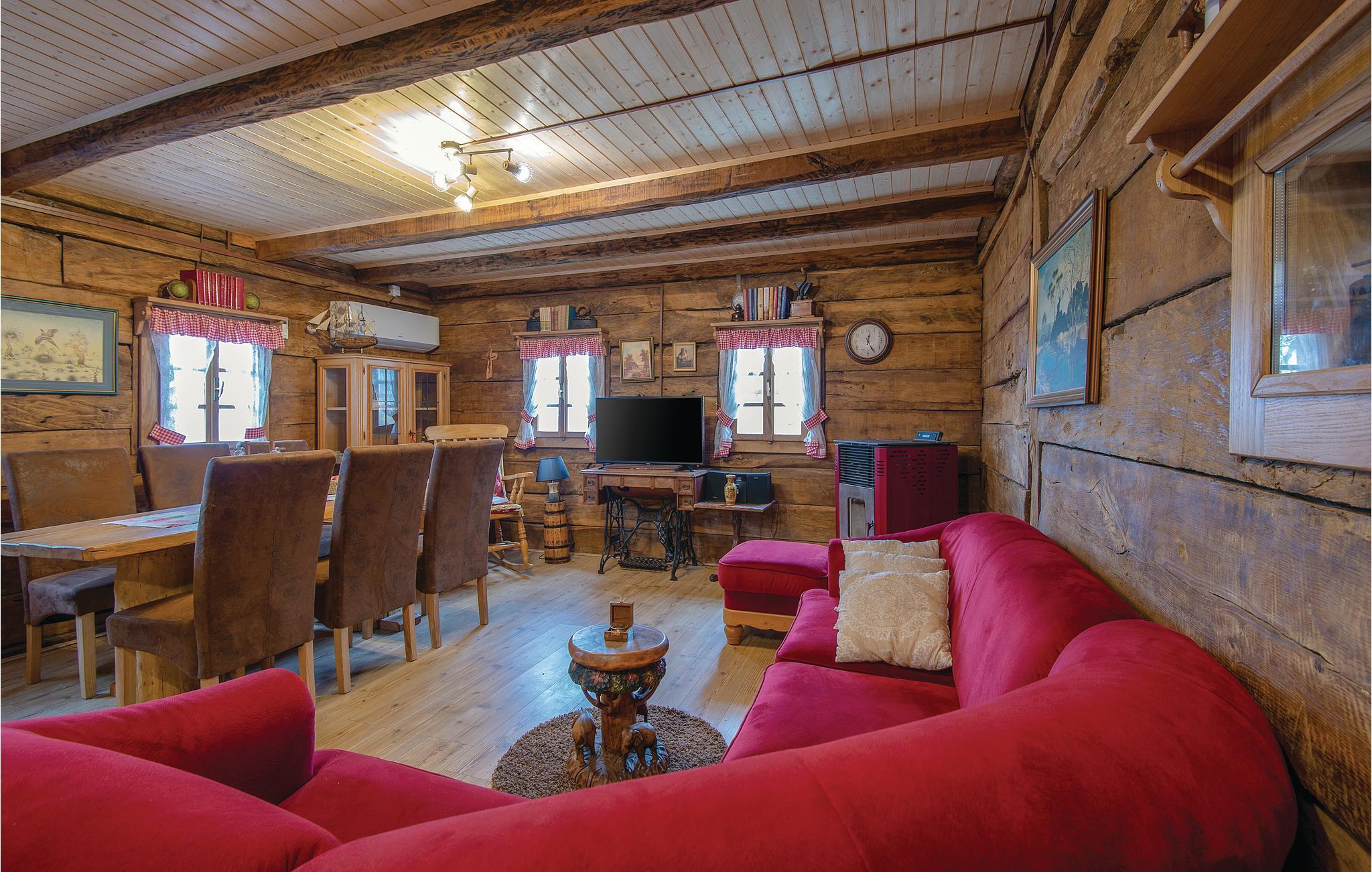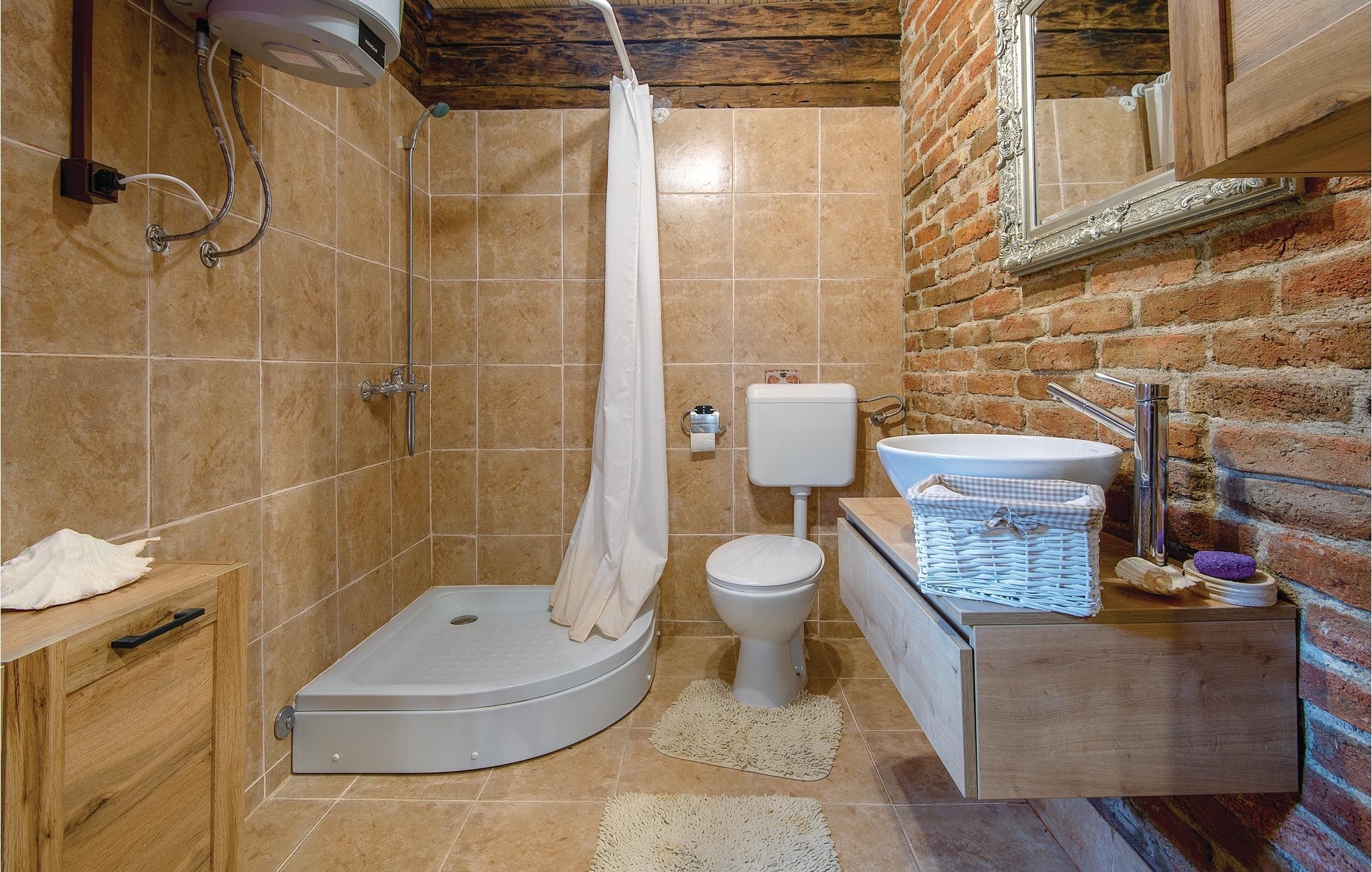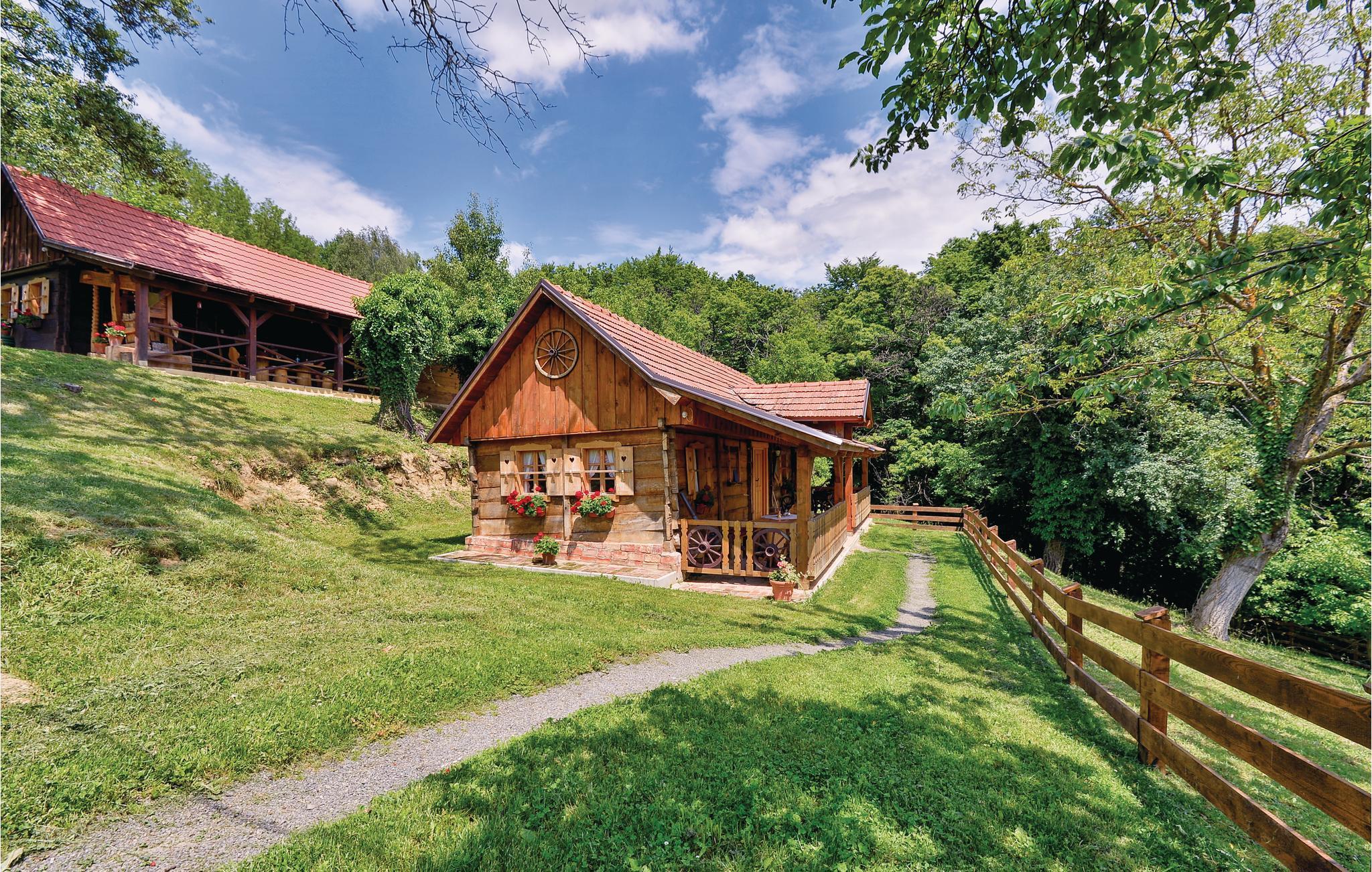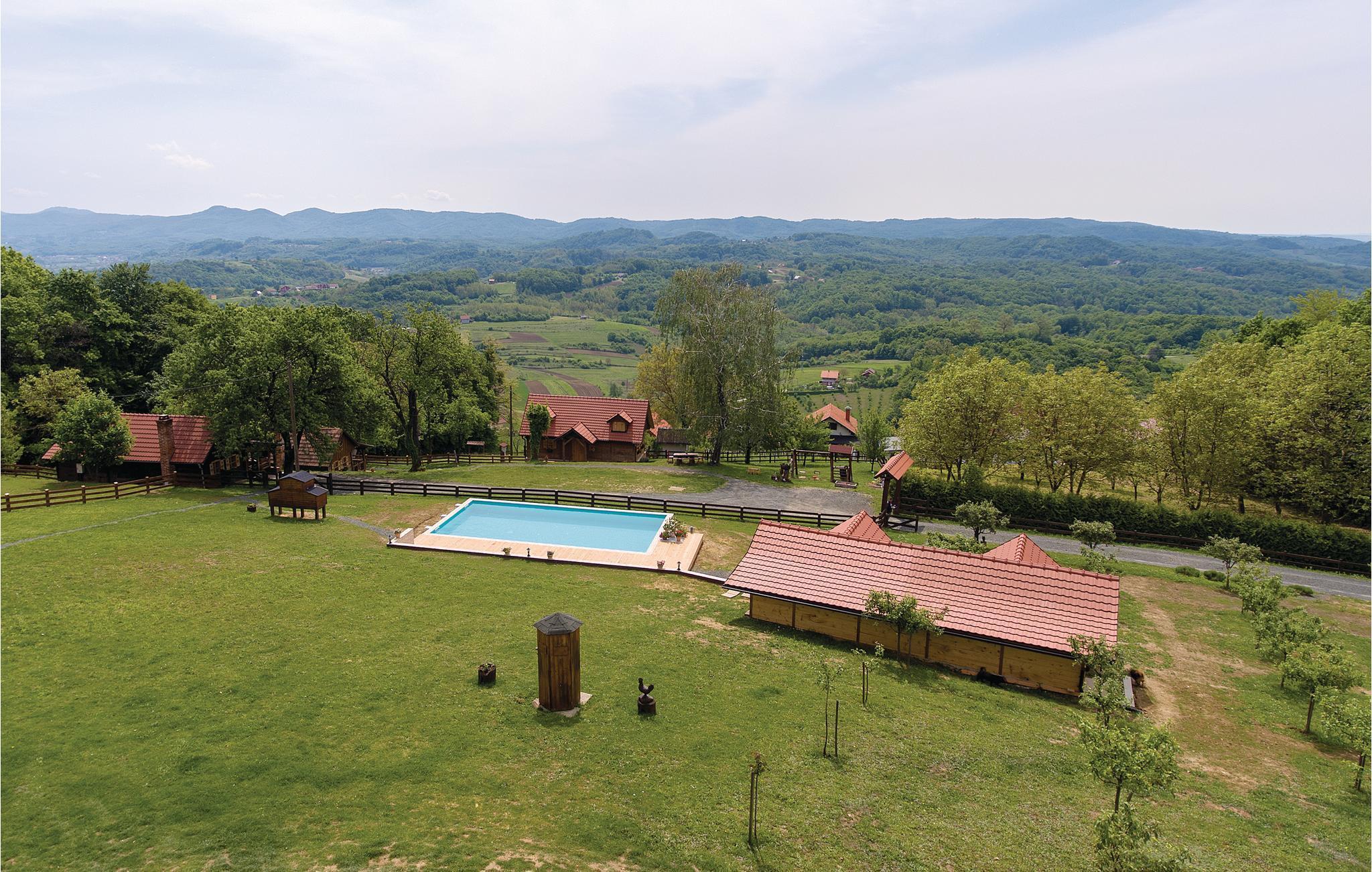 Denne skønne bolig vil gøre jer glade fra første minut af ferien. Et perfekt rejsemål til en idyllisk ferie med flere familier eller venner. På grunden er ligger der tre feriehuse med pool, der er både autentiske men også komfortable og moderne indrettet. På grunden er der hyggelige klappedyr som kaniner, får, geder, duer og en lille pony, der sikkert vil få små hjerter til at banke højt. I et af husene fører en stejl trappe til øverste etage med skrå vægge der går helt ned i siden. Til hvert hus hører en overdækket terrasse og der er et fælles udendørs køkken der ligger i den fjerde bygning. Her er også en skøn stor pool med udsigt over de smukke Zagorje bjerge og en legeplads omgivet af natur. I kan fiske i en nærliggende dam. Tag gerne jeres husdyr med. Kør ture i den omgivende region og prøv en afslappet spadseretur gennem Grebengrads gamle bydel. Der er ikke langt til Zagorje skønne borge og byen Varaždin. Der er 400 m grusvej til ferieboligen.