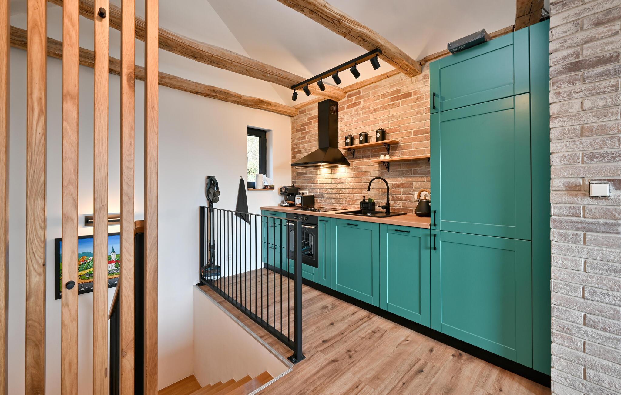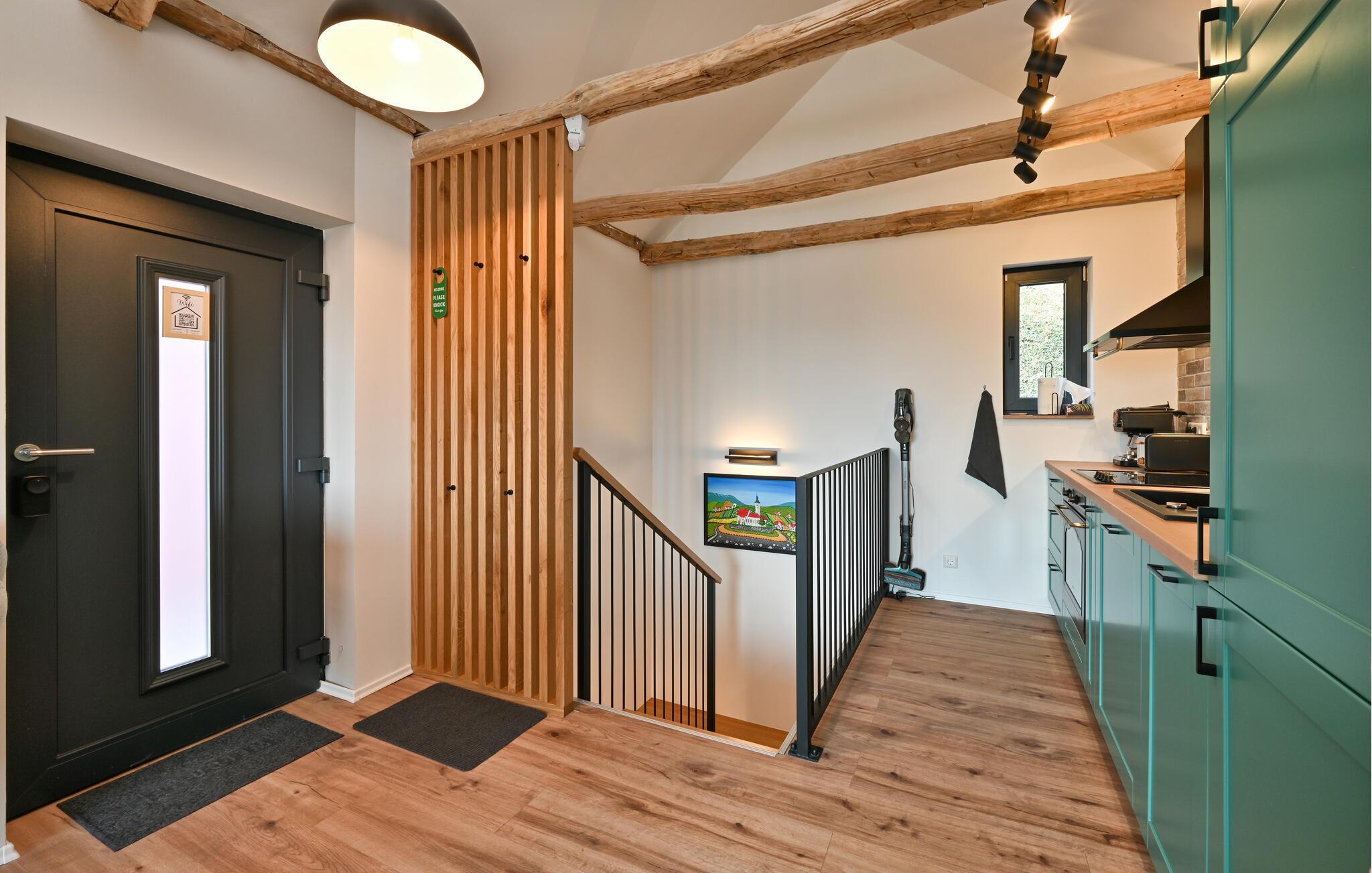 Oplev hyggen med varme trægulve, smagfulde møbler og velplejede murstensvægge i jeres feriehus. Glæd jer til fælles madlavningsaftener i det farverige køkken, og hyg jer på den komfortable sofa med spil eller en spændende serie. De rustikke loftsbjælker og stilfulde belysning skaber en særlig hyggelig atmosfære.