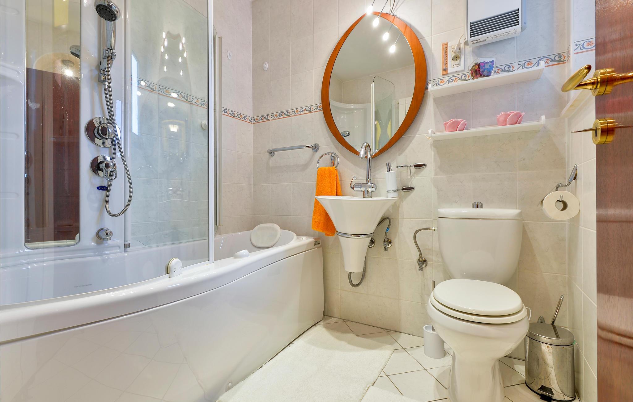 Badeværelse 6m2 (nr. 1) - WC. Varmt og koldt vand. Bruser og badekar