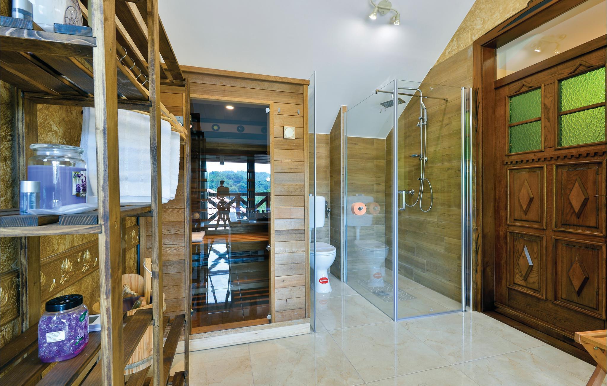 Dette traditionelt møblerede feriehus ligger på en bakke omgivet af vinmarker, frugtplantager og skove. Hele huset er indrettet med stor opmærksomhed for lækre detaljer. Placeringen er perfekt til naturelskere og aktive feriegæster. I stueetagen er der et spisekøkken med opholdsstue, mens øverste etage har boblebad, sauna og to soveværelser. Slap af i jeres eget spa-område med udsigt over de smukke omgivelser og det bølgende landskab. I gården er der en grillterrasse med behagelige havemøbler. I nærheden ligger en dam, hvor der kan fiskes. Dermed er der her grundlag for en skøn, alsidig ferie.