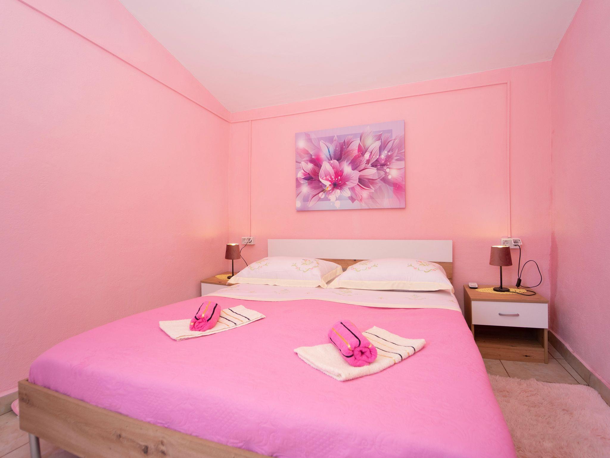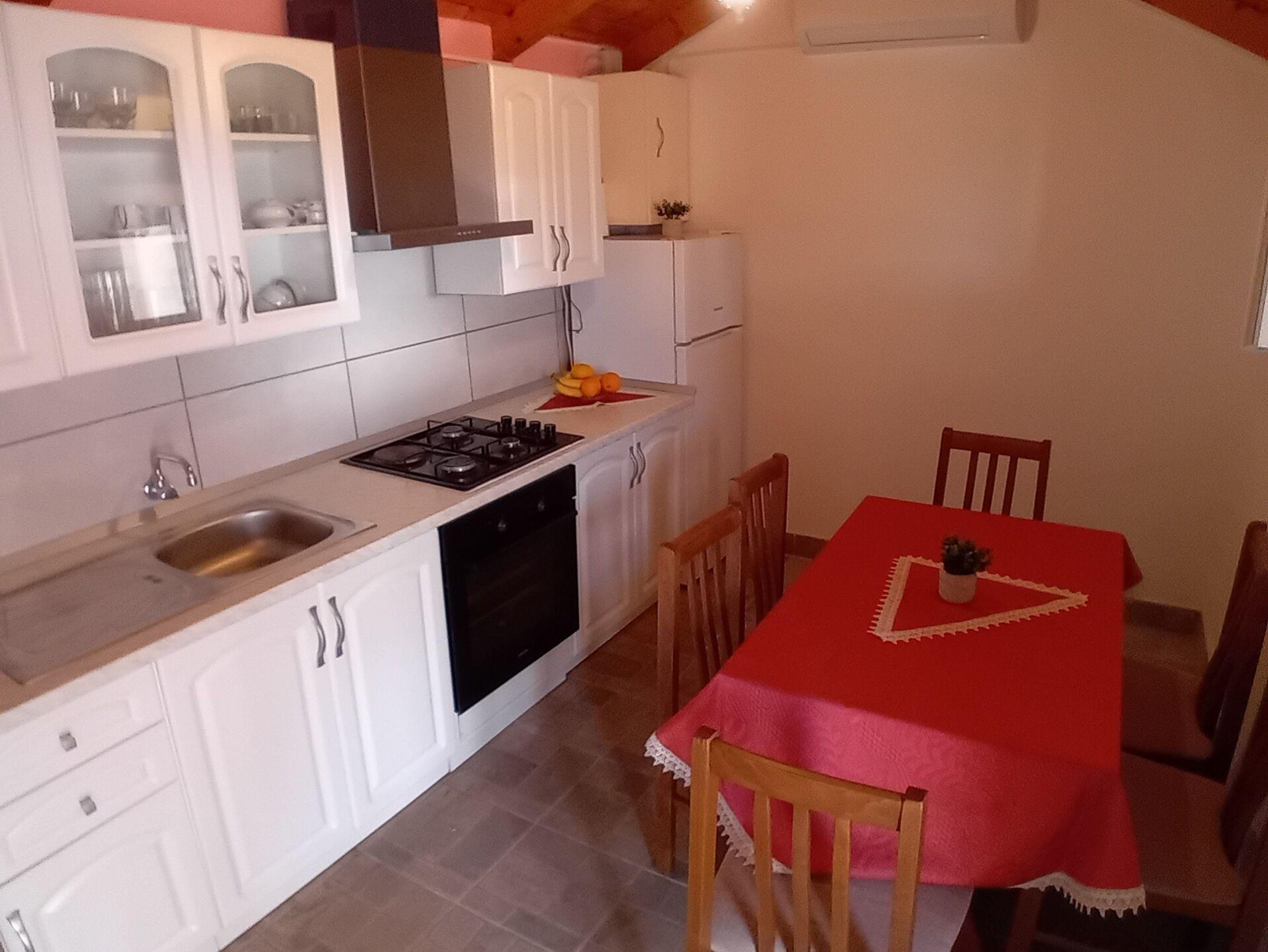 Haus bietet Platz für 4 Gäste. Die Betten sind in Schlafzimmern, die es 2 gibt, innerhalb einer Gesamtfläche von 42m2, angeordnet. Die Gäste haben eine eigene Terrasse zur Verfügung, auf der sie in warmen Sommernächten genießen können. Für vollen Genuss und Entspannung gibt es einen privaten Grill für Gäste dieser Unterkunft. Räume der gebuchten Unterkunftseinheit werden nicht in eine Ganze verbunden. IM PREIS INBEGRIFFEN: Kurtaxe, Endreinigung, Klimatisierung, Parkplatz, Internet, Bügeleisen, Bügelbrett, Föhn. VERBINDLICHE ZUSÄTZLICHE KOSTEN: Aufzahlung für Kurzaufenthalte (prozentualer Zuschlag pro Nächtigungsanzahl: 30% - 1, 20% - 2, 10% - 3). Die Verfügbarkeit zusätzlicher Dienstleistungen in Ihrem reservierten Termin und die Preise derselben (falls nicht aufgeführt) müssen im Voraus überprüft werden. Zusätzliche Dienstleistungen die in der Zahlungsaufforderung nicht aufgeführt sind werden direkt beim Vermieter bezahlt, angenommen der Gast nutzt auch diese. Ermäßigung auf den Grundpreis: Gratistag 14=13 (bei einem Aufenthalt von 14 Tagen oder mehr erhalten Sie einen Gratistag für den Aufenthalt bis 31.12.26).