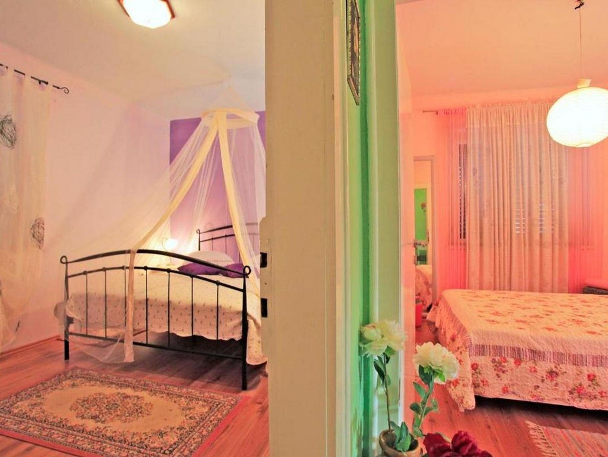 Haus bietet Platz für 5 Gäste. Die Betten sind in Schlafzimmern, die es 2 gibt, und in Wohnzimmer, innerhalb einer Gesamtfläche von 97m2, angeordnet. Die Gäste haben eine eigene Terrasse zur Verfügung, auf der sie in warmen Sommernächten genießen können. Für vollen Genuss und Entspannung gibt es einen privaten Grill für Gäste dieser Unterkunft. In der Unterkunftseinheit besteht die Möglichkeit des Mitbringens von Haustieren gegen Aufpreis. IM PREIS INBEGRIFFEN: Kurtaxe, Endreinigung, Klimatisierung, Parkplatz, Internet, Kinderbett, Bügeleisen, Bügelbrett, Föhn. UNVERBINDLICHE ZUSÄTZLICHE KOSTEN: Haustiere (5,00 € pro Nacht). Die Verfügbarkeit zusätzlicher Dienstleistungen in Ihrem reservierten Termin und die Preise derselben (falls nicht aufgeführt) müssen im Voraus überprüft werden. Zusätzliche Dienstleistungen die in der Zahlungsaufforderung nicht aufgeführt sind werden direkt beim Vermieter bezahlt, angenommen der Gast nutzt auch diese.