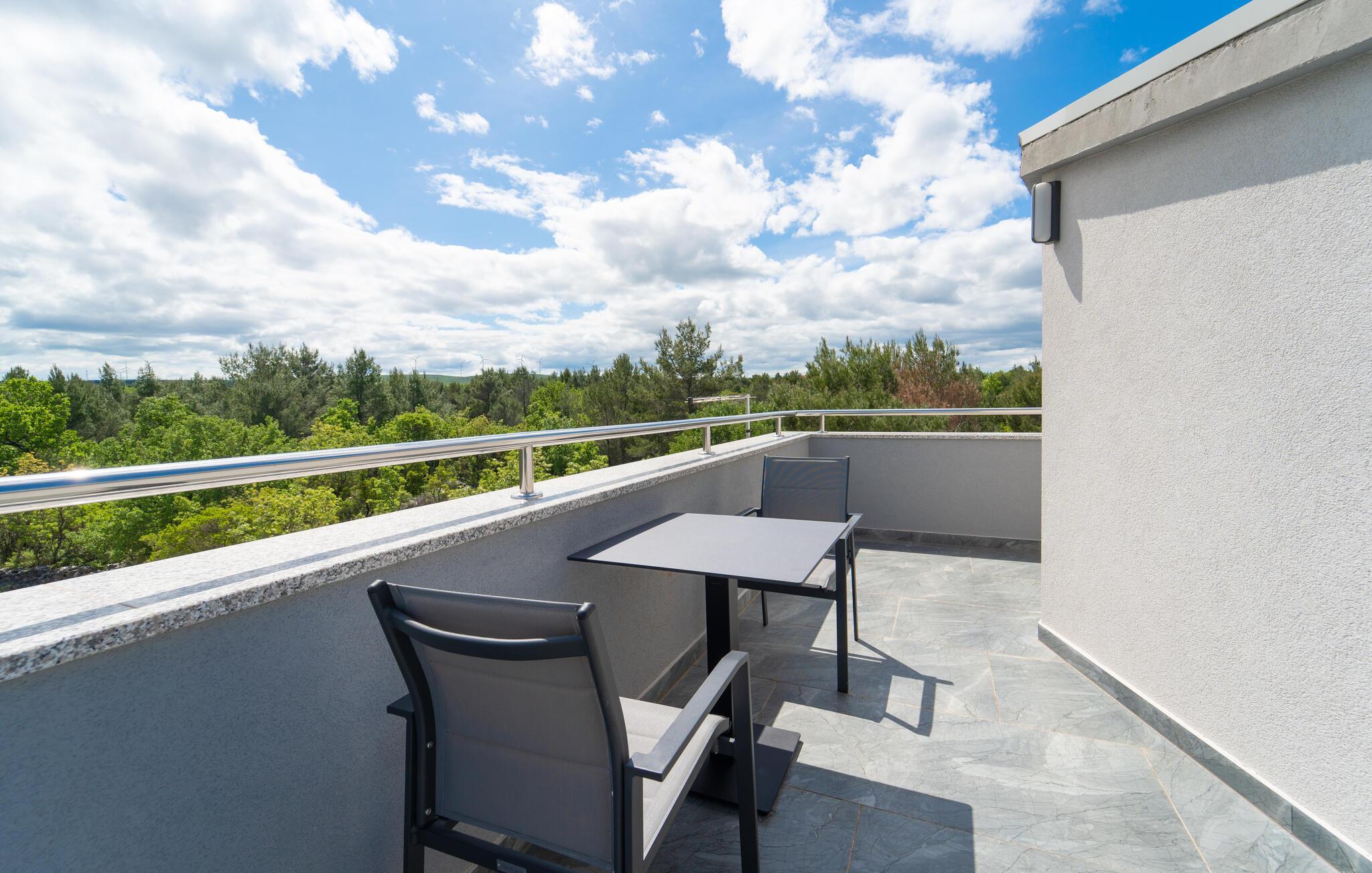 Nyd den herlige havudsigt fra terrassen i denne ferielejlighed.