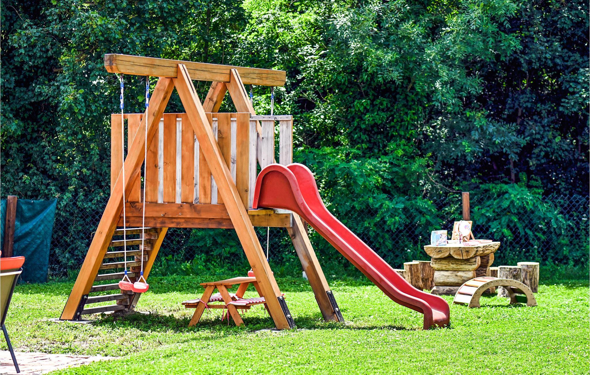 Det rustikke træhus vil imponere jer med sine romantiske og moderne møbler. Hele familien vil finde de perfekte rammer her til at tilbringe tid sammen. Den åbne stue og spisestue byder på masser af plads til, at jeres børn kan lege indenfor, hvis vejret ikke er så godt. Den fantastiske have er til rådighed til sommerdagene. Børnenes legeplads vil holde dem beskæftiget, mens I forbereder aftensmaden og dækker bordet ved siden af på grillen. En pool tilbyder jer også badesjov og afkøling på varme dage.