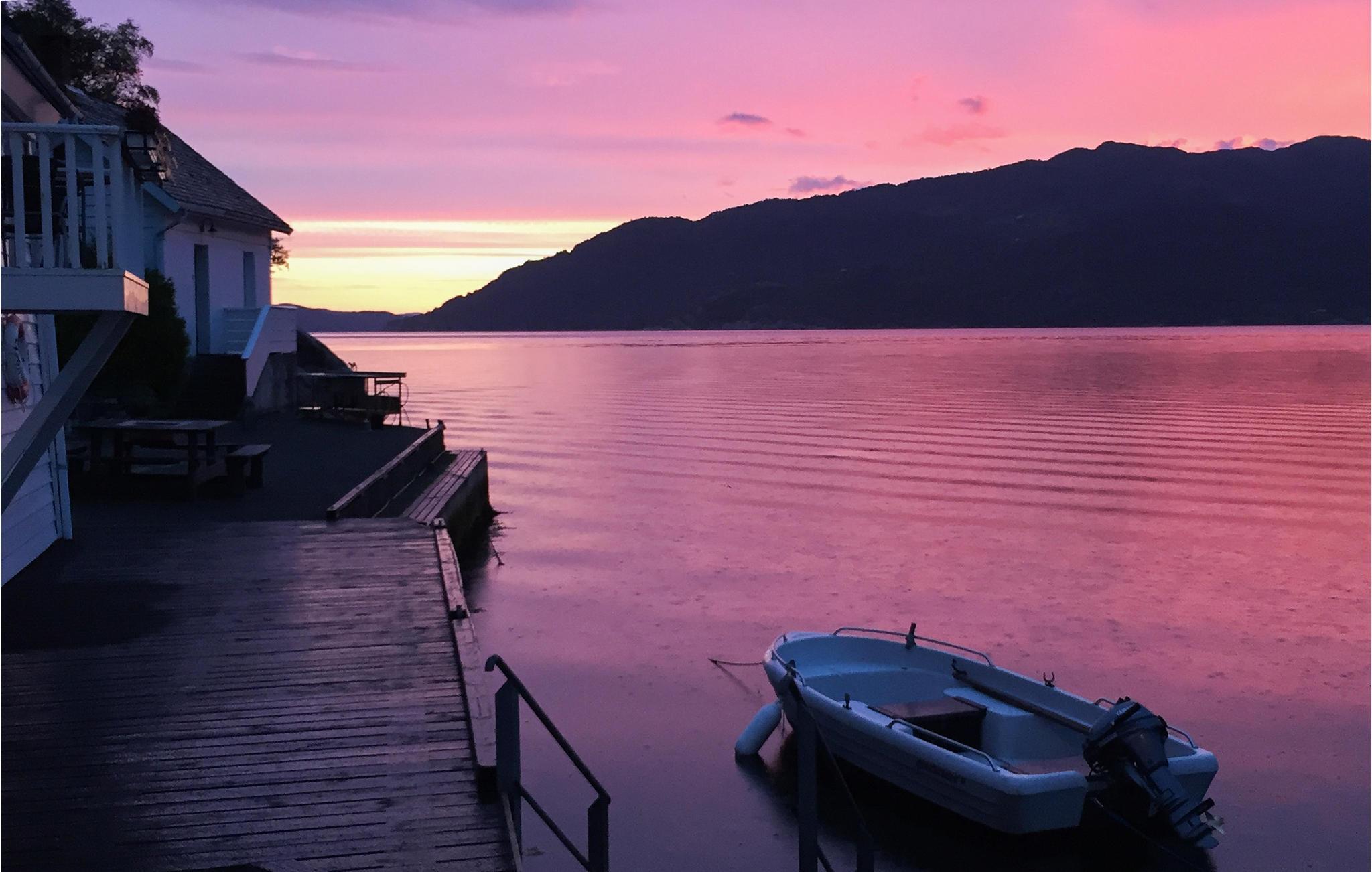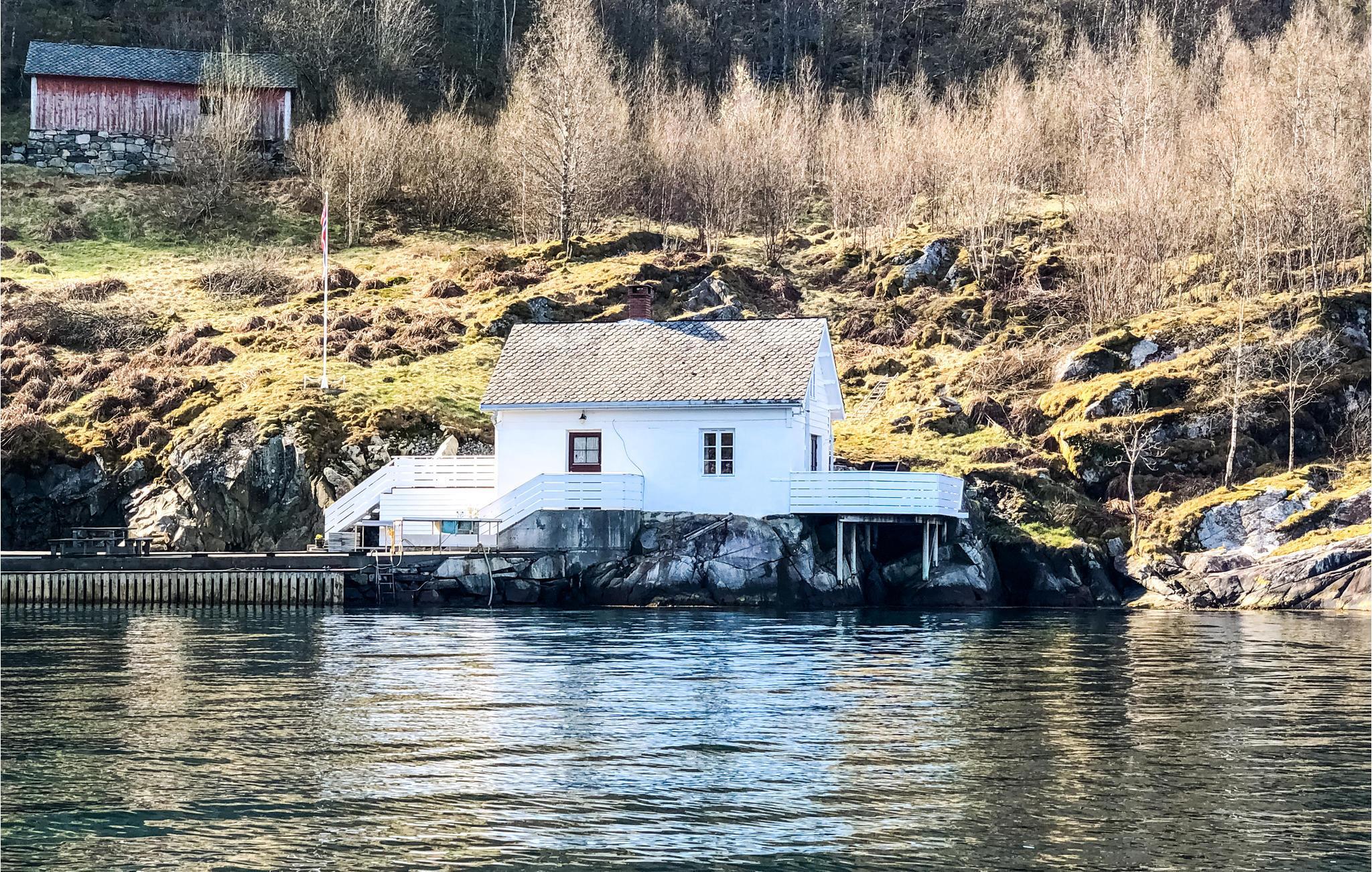 Huset ligger i fredelige ugenerte omgivelser midt i Åkrafjorden, med en betagende udsigt både inde fra huset og fra terrassen. En bedre måde at nyde Norge på, skal man lede længe efter.