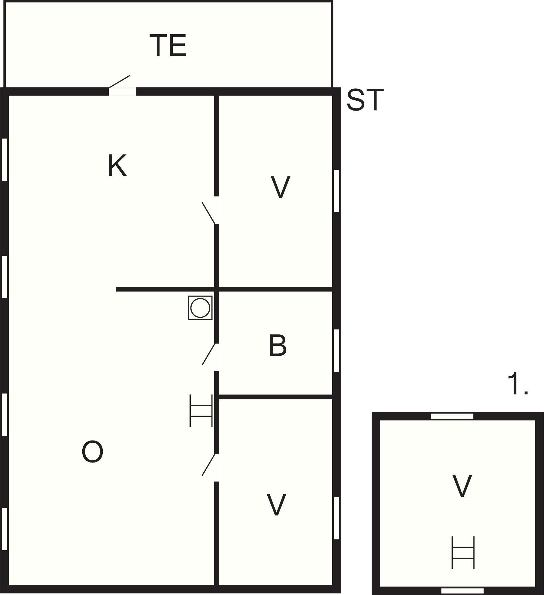 1 Opholdsstue: 21 m2, (1O), brændeovn, radio, Apple TV, Netflix, tv