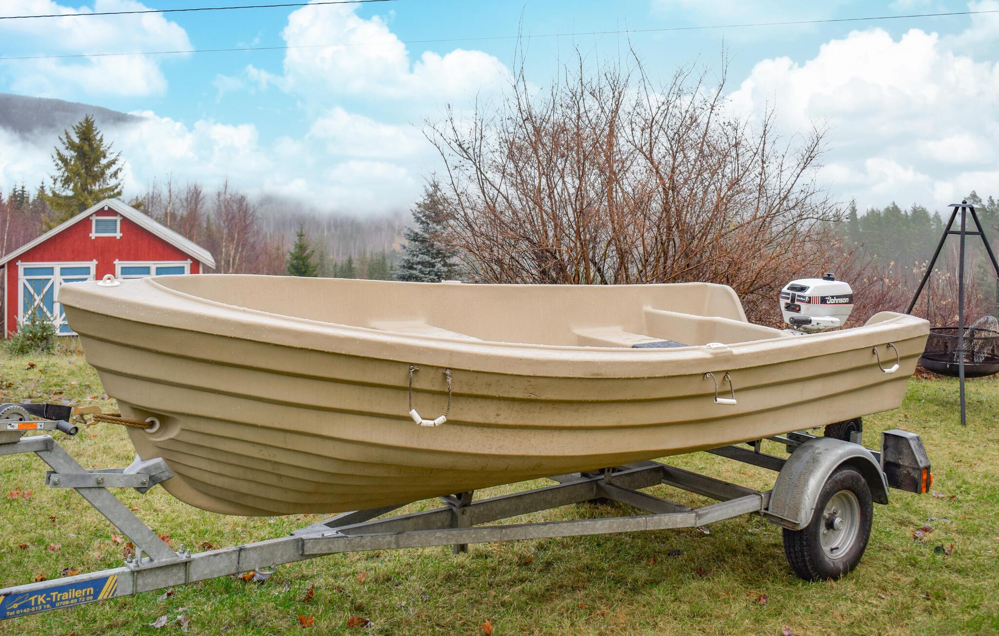 Båd og motor kan lejes14 fod, 4 hk
