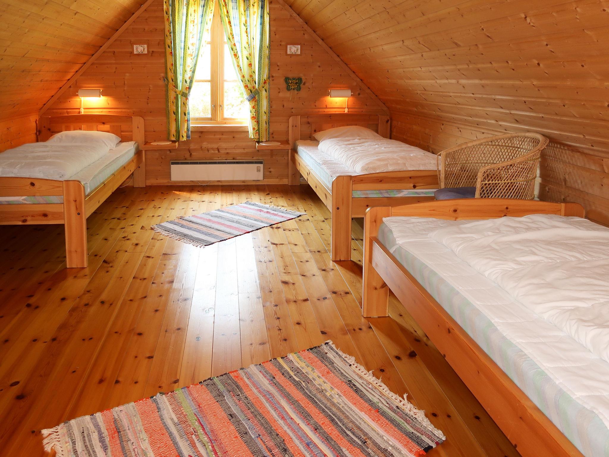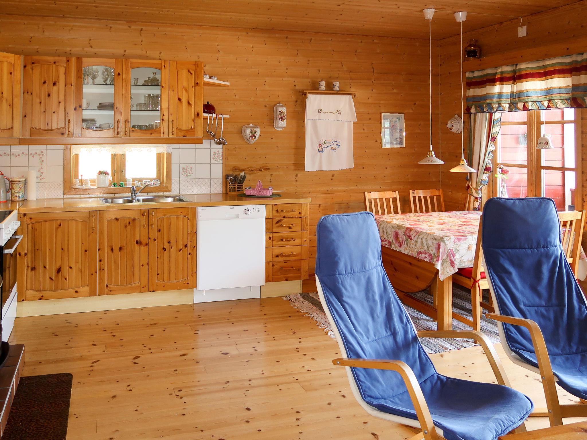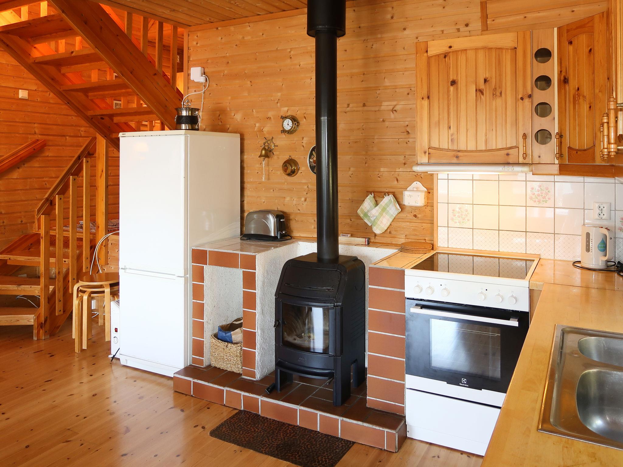 "Krokeggi", 4-room house 90 m2 on 2 levels. Cosy furnishings: living/dining room with Scandinavian wood stove, dining table, satellite TV and international TV channels. Exit to the terrace. 1 room with 1 double bed (160 cm, length 200 cm). Open kitchen (oven, dishwasher, 4 ceramic glass hob hotplates, toaster, kettle, microwave, freezer, electric coffee machine). Shower/WC. Upper floor: 1 room with 1 double bed (160 cm, length 200 cm). 1 room with 3 beds (90 cm, length 200 cm). Electric heating. Wooden floors. Beautiful view of the sea, the mountains and fjord. Facilities: washing machine. Internet (WiFi, free). Please note: non-smoking house. Smoke alarm, fire extinguisher. 924531169