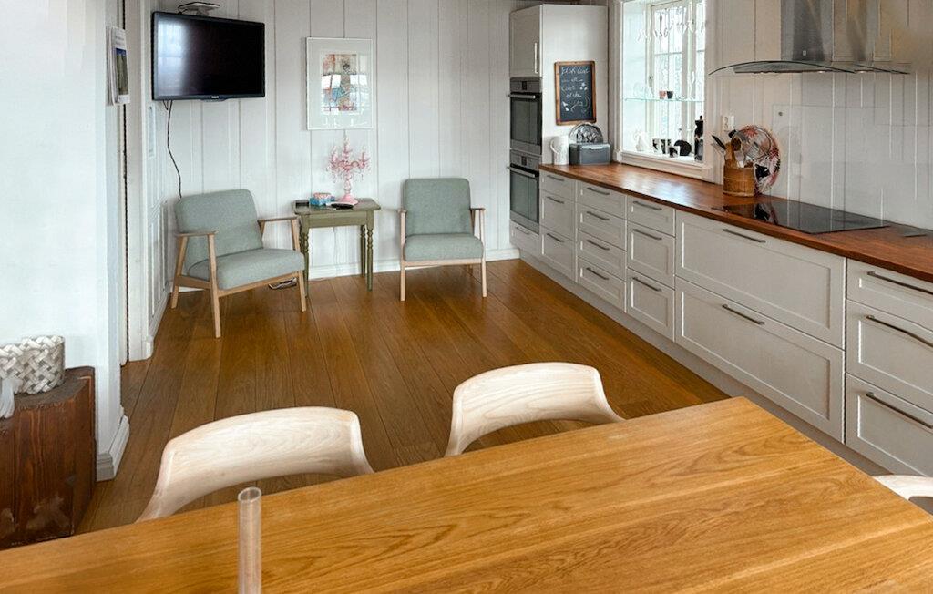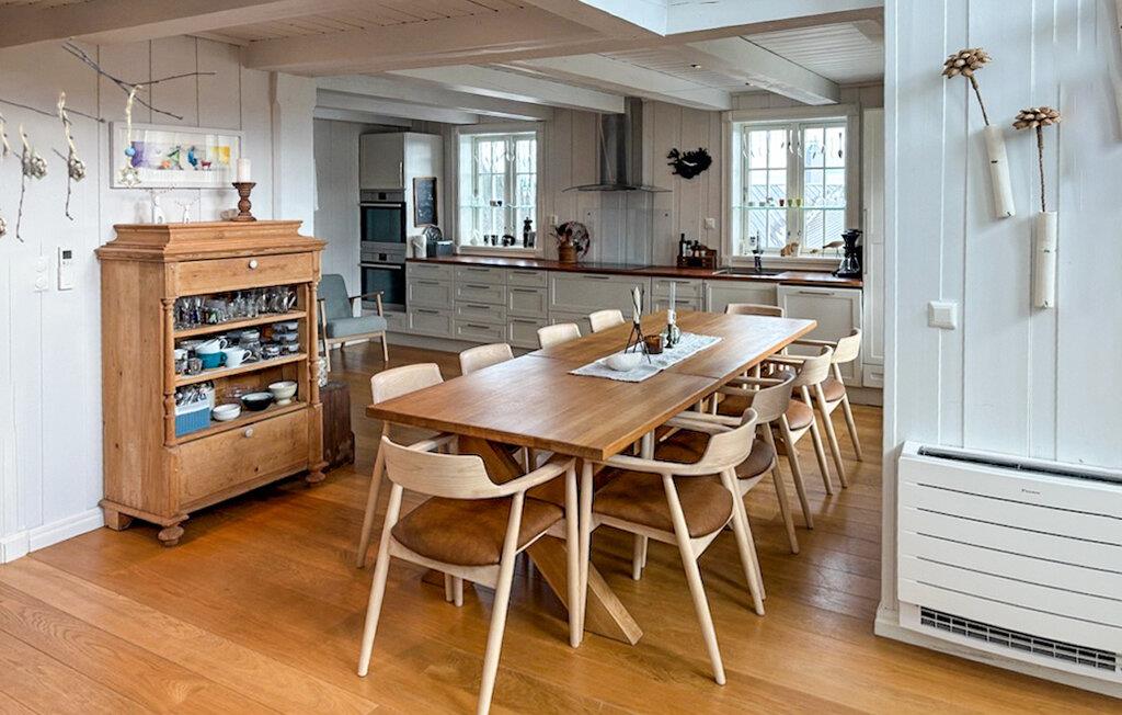 Dette rummelige feriehus vil forkæle jer med en lys og hyggelig atmosfære, komfortable møbler og masser af plads til længe ventede familiesammenkomster eller en hyggelig ferie med vennerne. Skab kulinariske lækkerier i det rummelige køkken, snak om svundne tider, slap af foran pejsen efter en lang vandretur eller forkæl jer selv med nogle forkælende øjeblikke i saunaen.