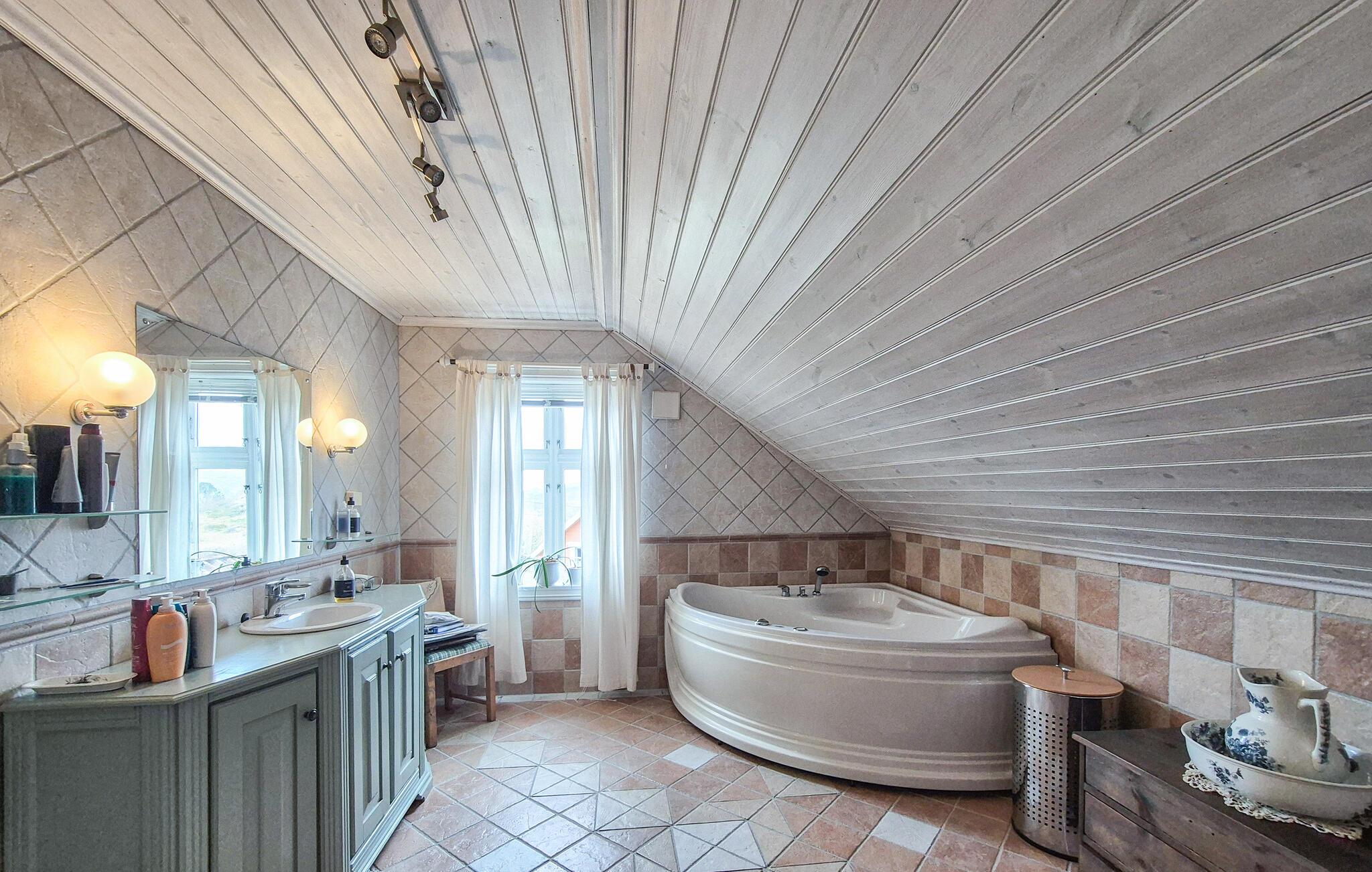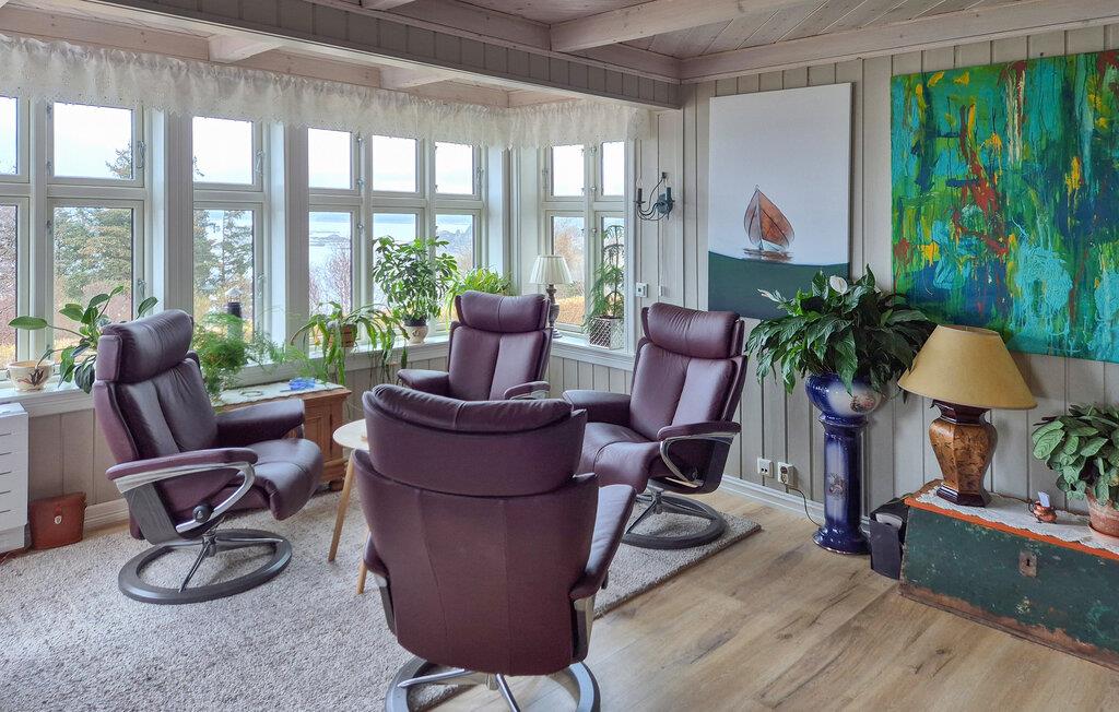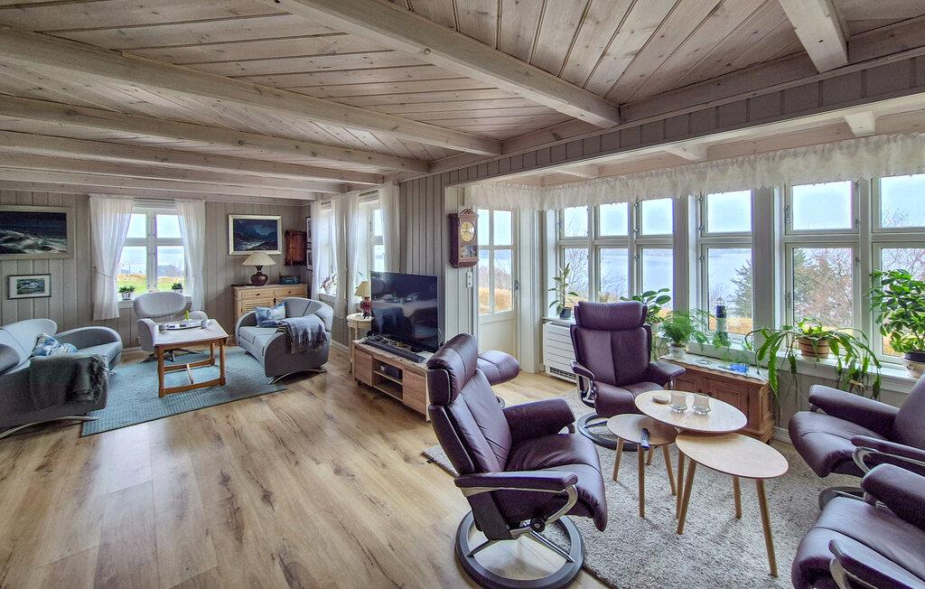 Dette komfortable og smagfulde feriehus vil forkæle jer med masser af plads og en fantastisk panoramaudsigt, som I aldrig vil glemme. Glæd jer til hyggelige madlavningsaftener i det rummelige køkken og hyggelige måltider ved det indbydende spisebord. Efter en lang dag i den friske havluft kan I lægge fødderne op i læsestolen, streame en film eller lytte til den hyggelige knitren fra brændeovnen, mens I har en god samtale.